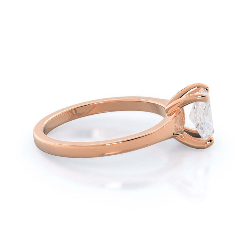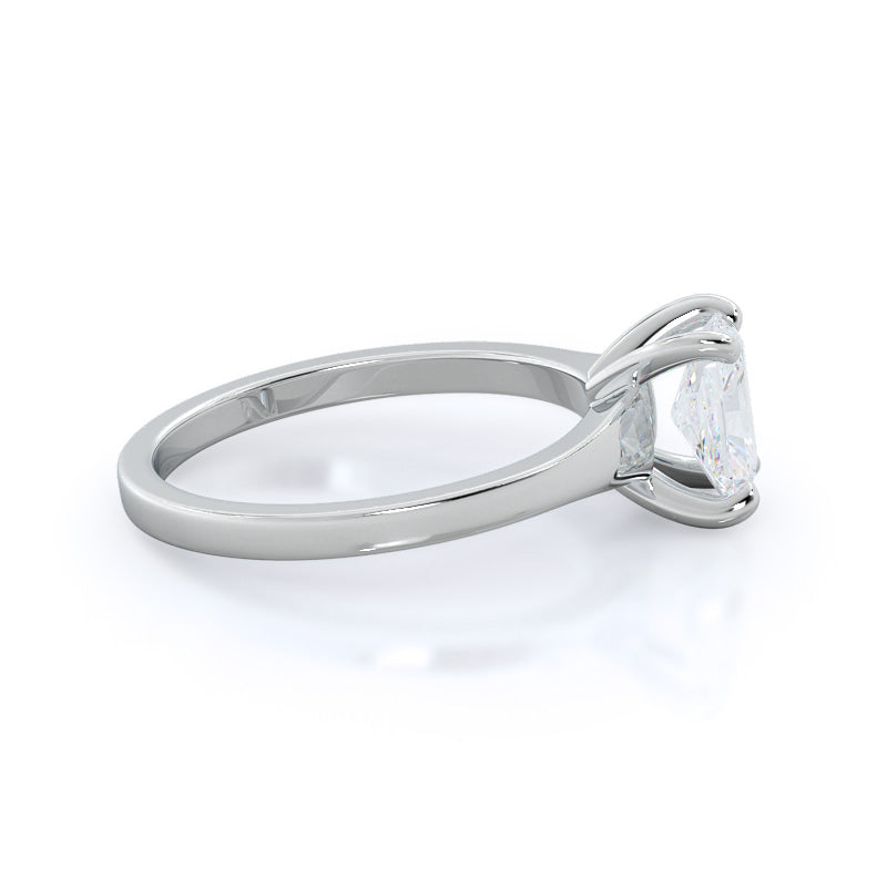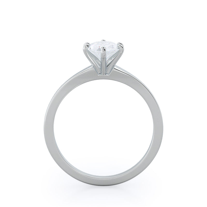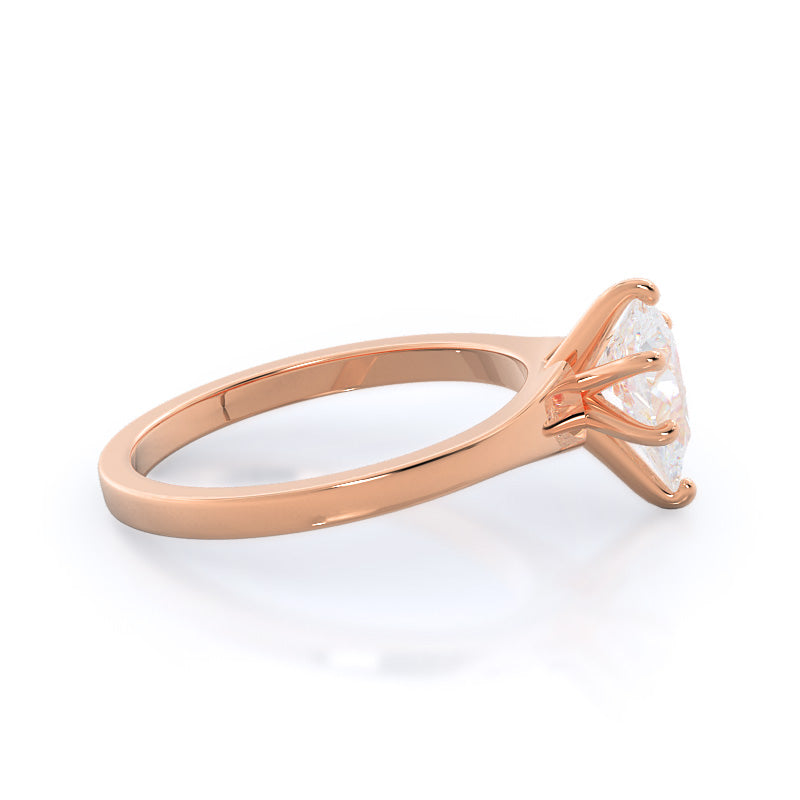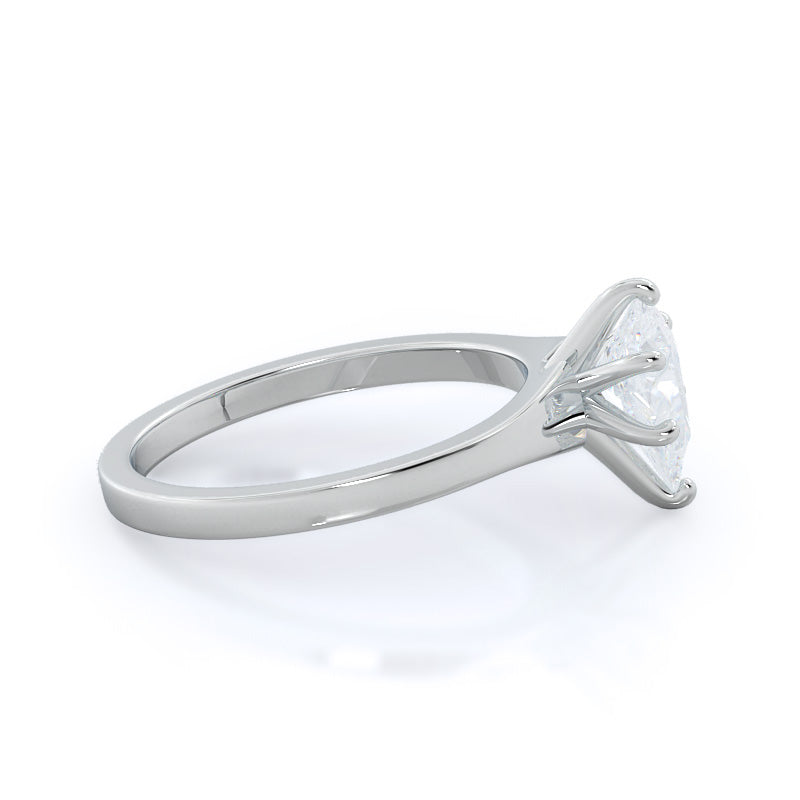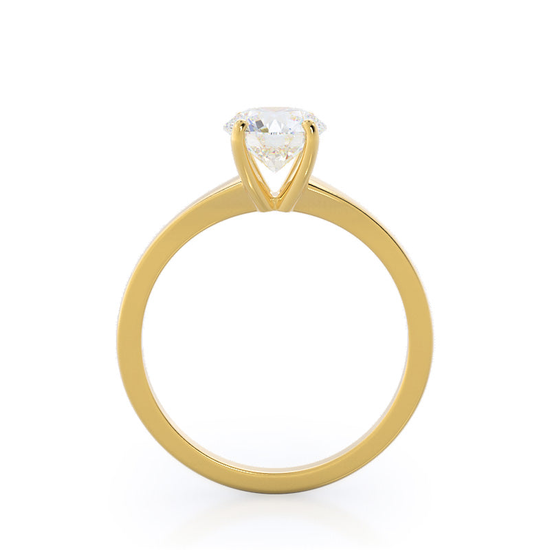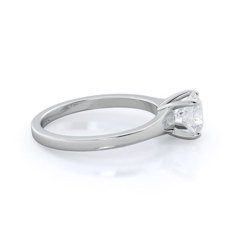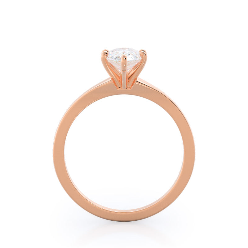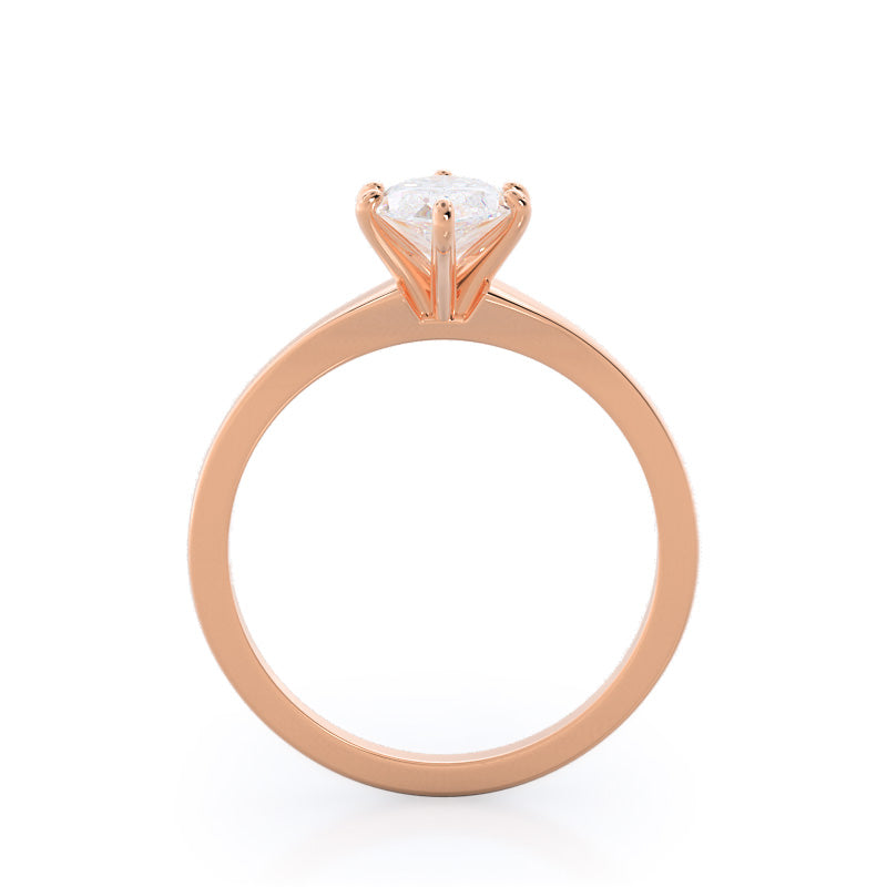 A classic solitaire style with a sleek and polished band. The band widens closer to the center diamond for a sophisticated look.