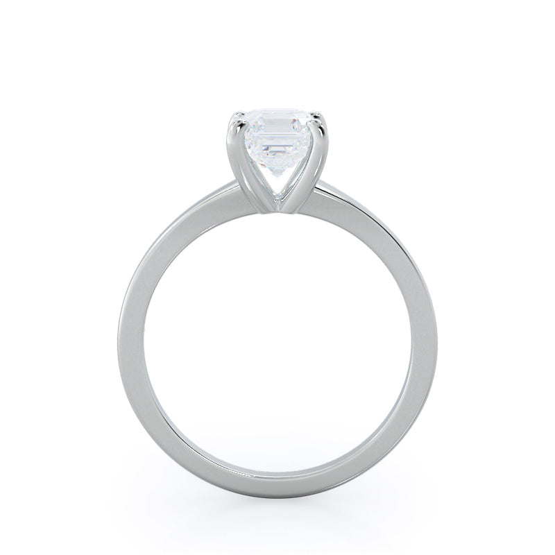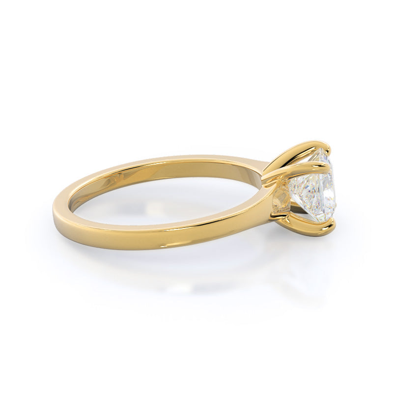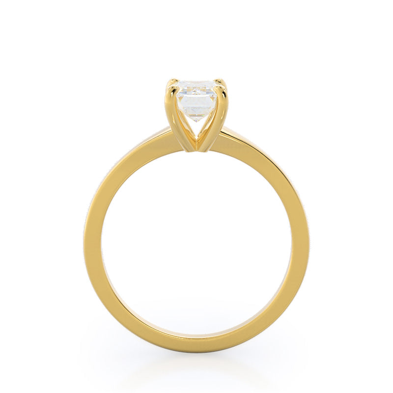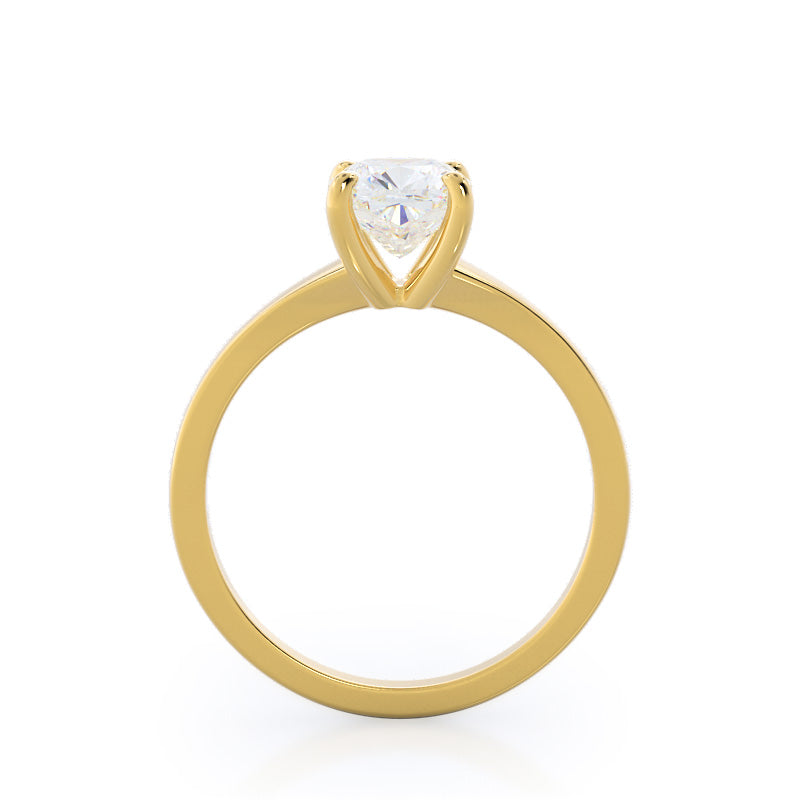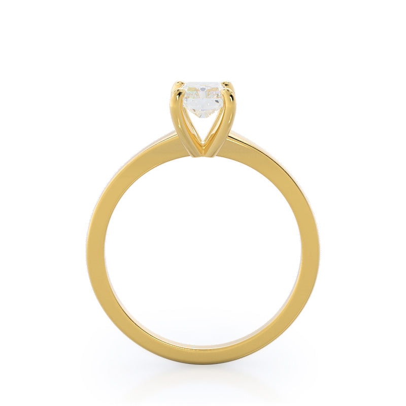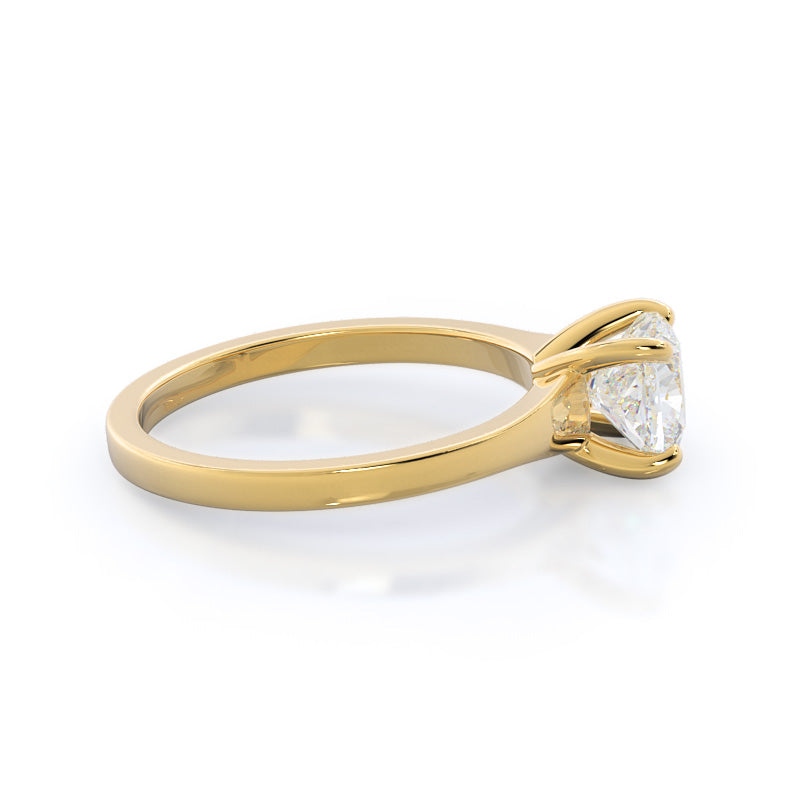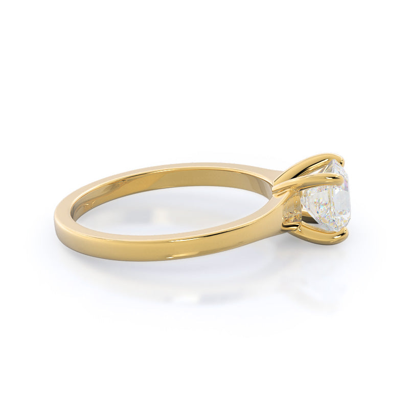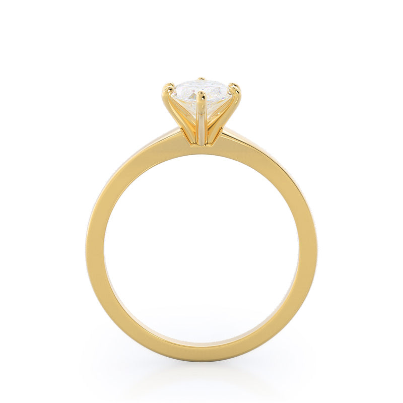 A classic solitaire style with a sleek and polished band. The band widens closer to the center diamond for a sophisticated look.