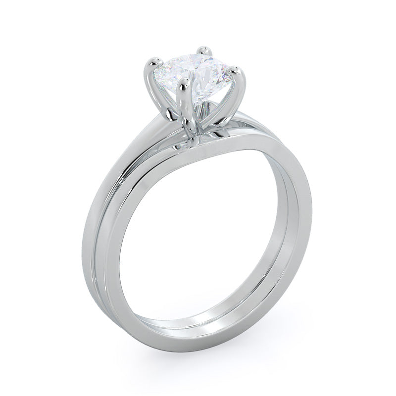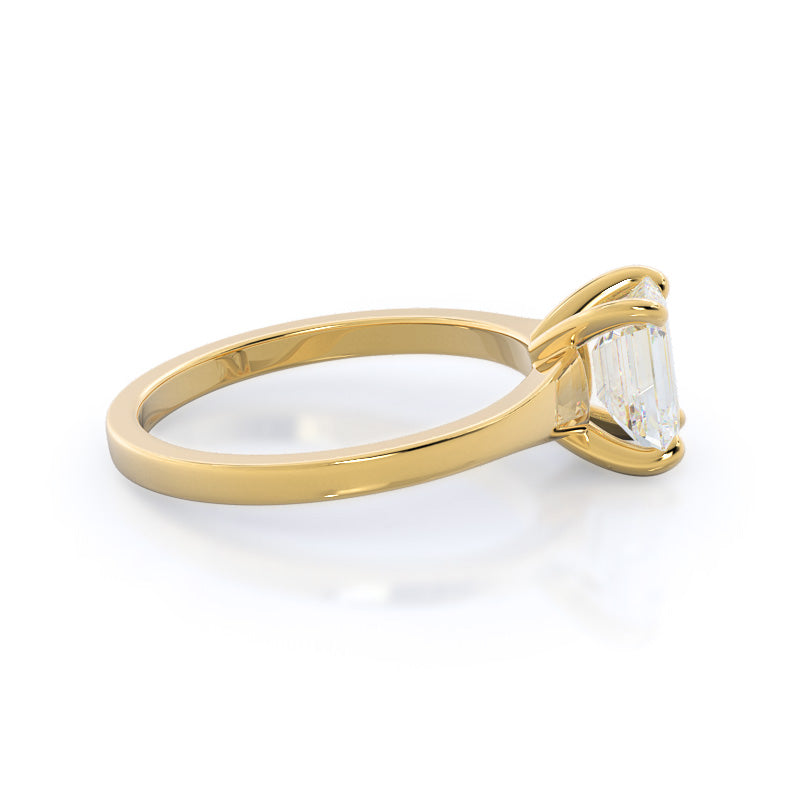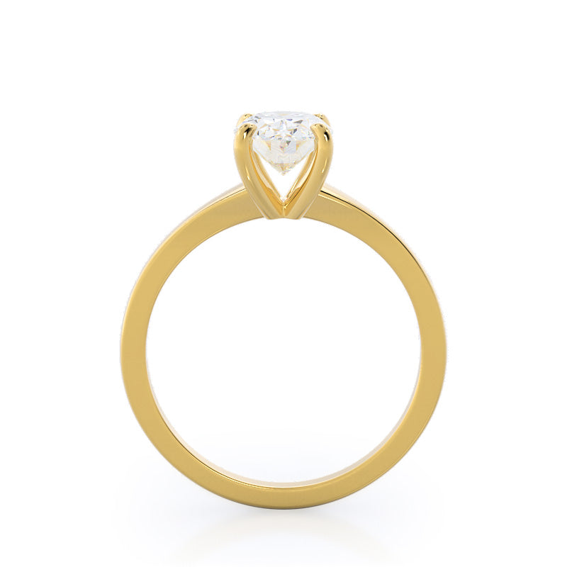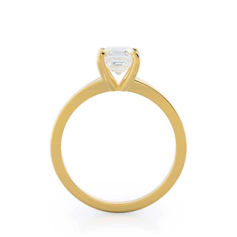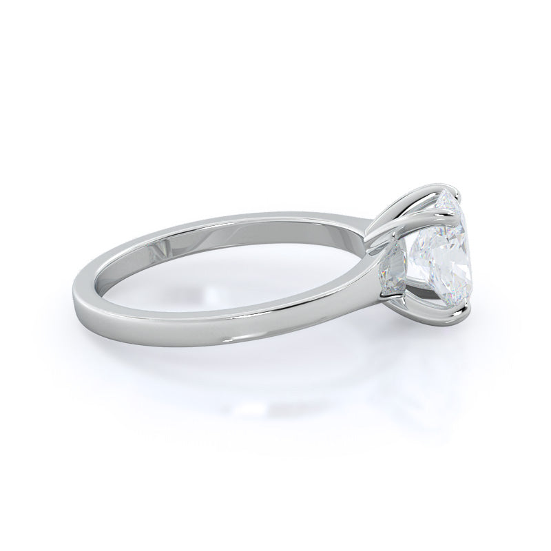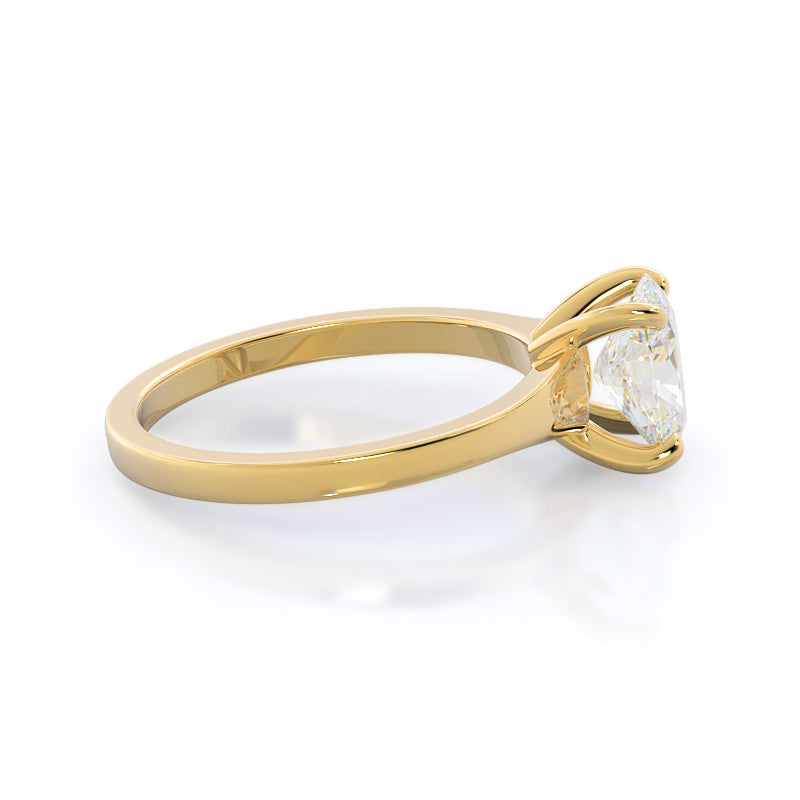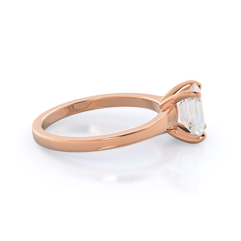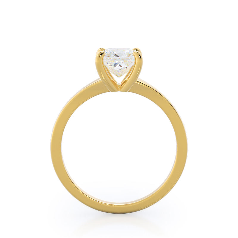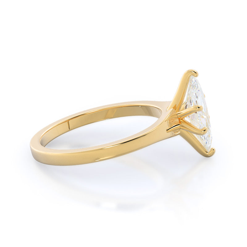 A classic solitaire style with a sleek and polished band. The band widens closer to the center diamond for a sophisticated look.
