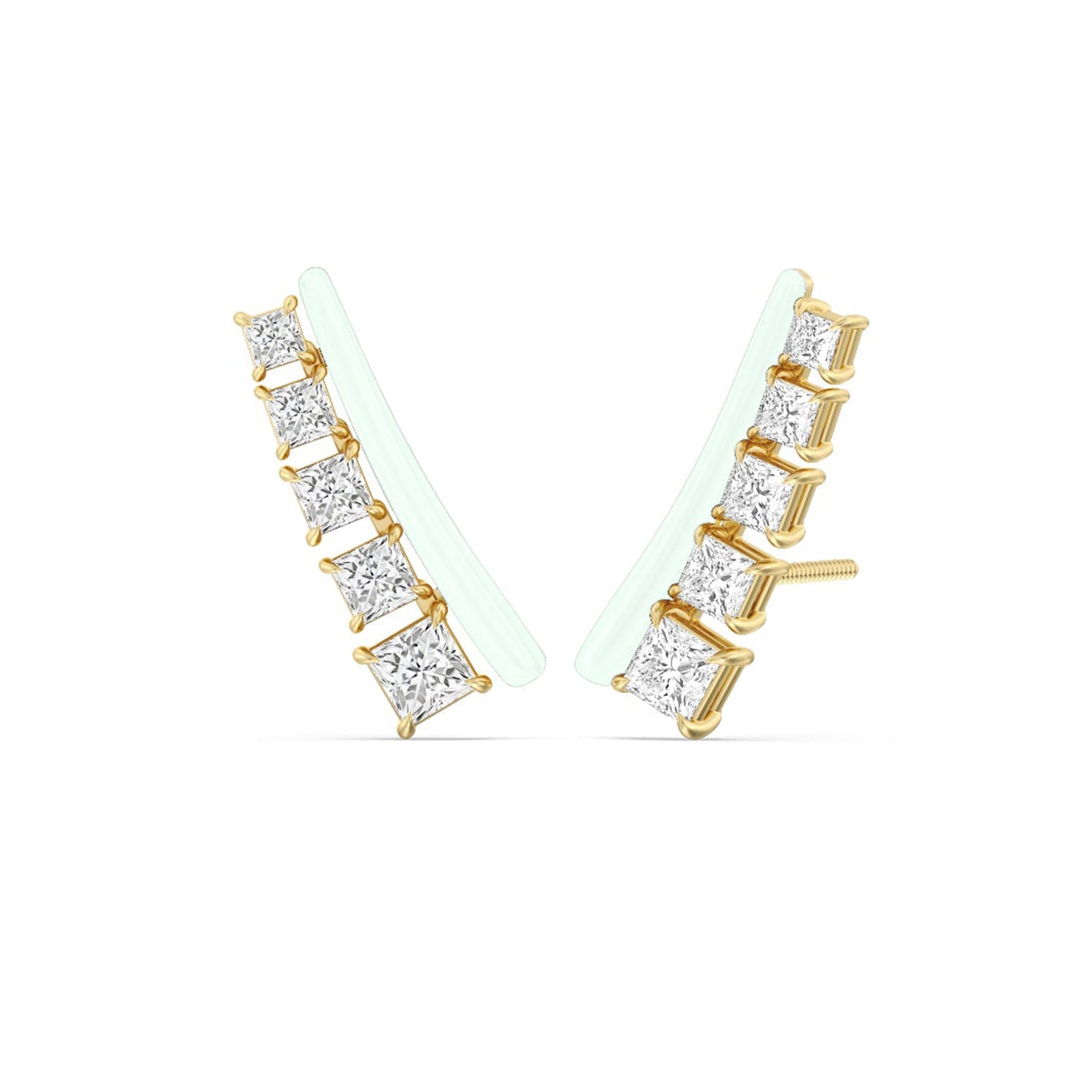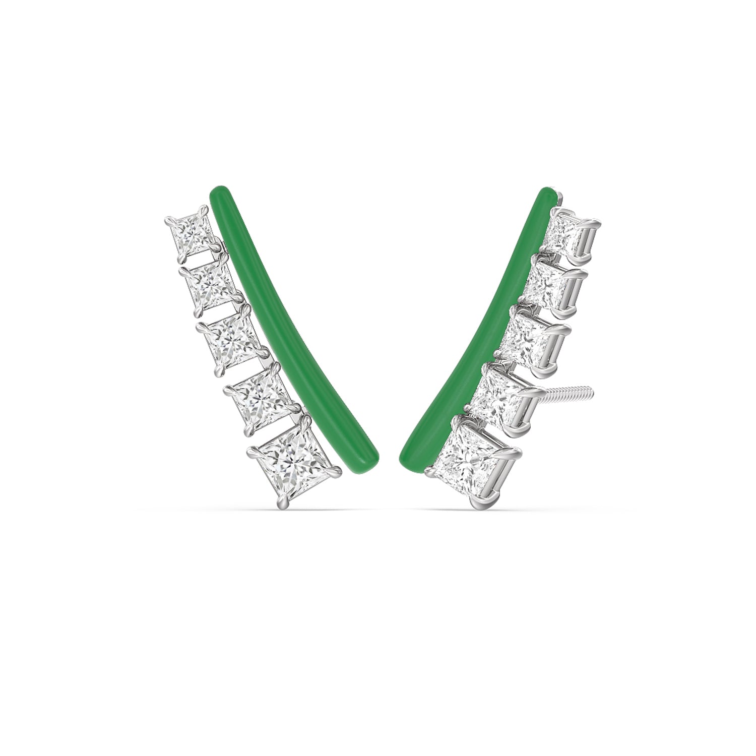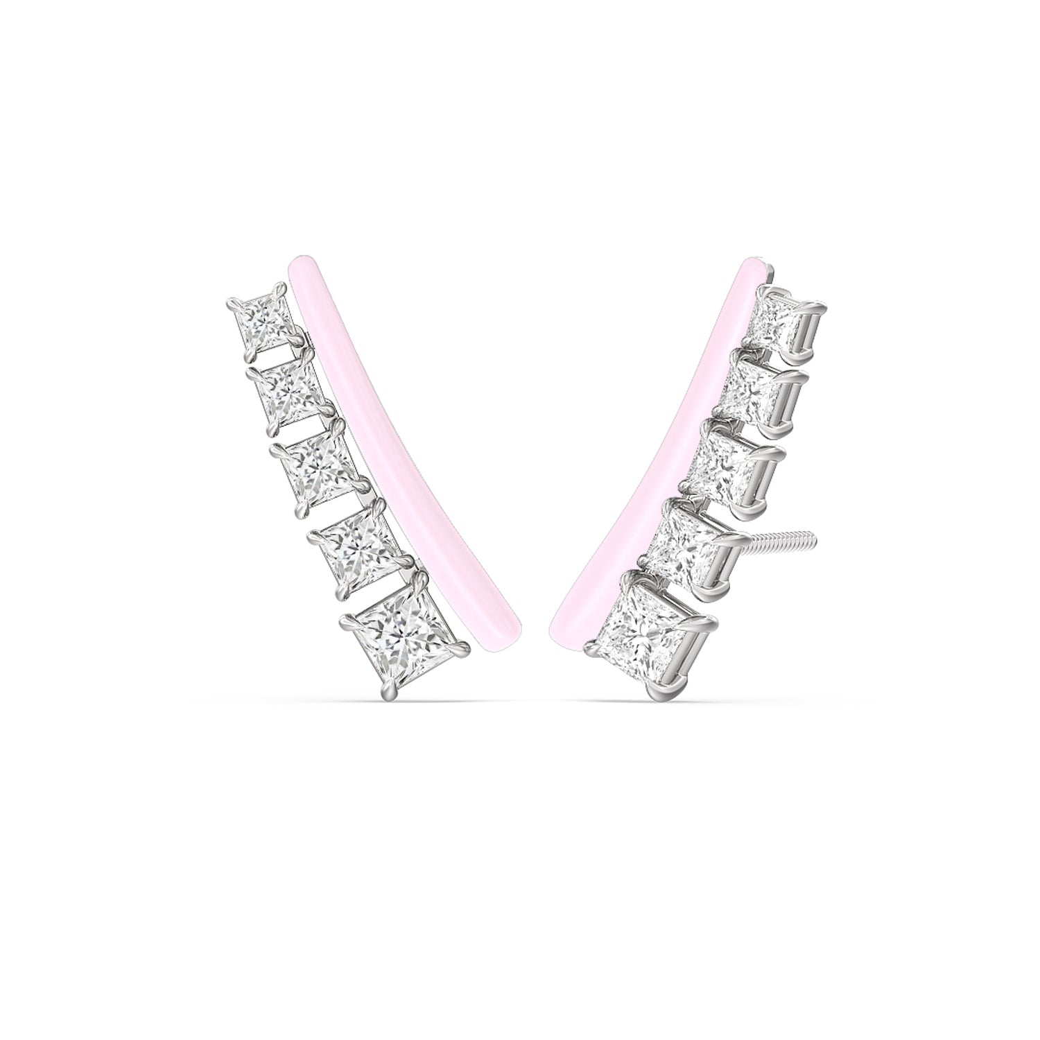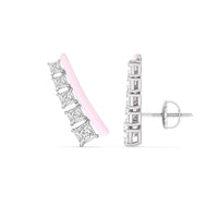 These ear climbers are trendy and classic at once, with the right dose of fun and elegance that works for any look. These earrings feature a tapered bar in a ceramic finish, decorated with princess-cut diamonds in tapering sizes.
