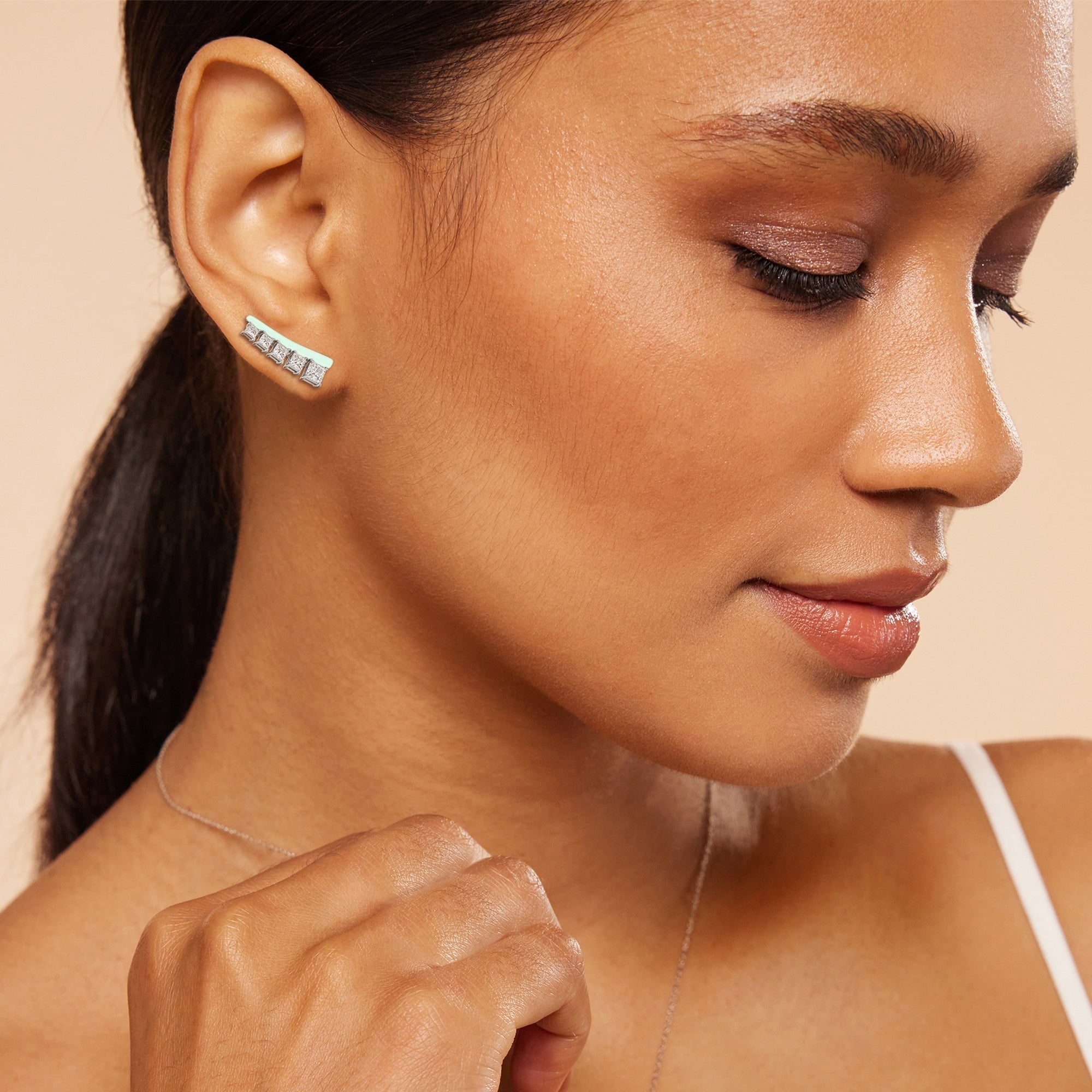 These ear climbers are trendy and classic at once, with the right dose of fun and elegance that works for any look. These earrings feature a tapered bar in a ceramic finish, decorated with princess-cut diamonds in tapering sizes.