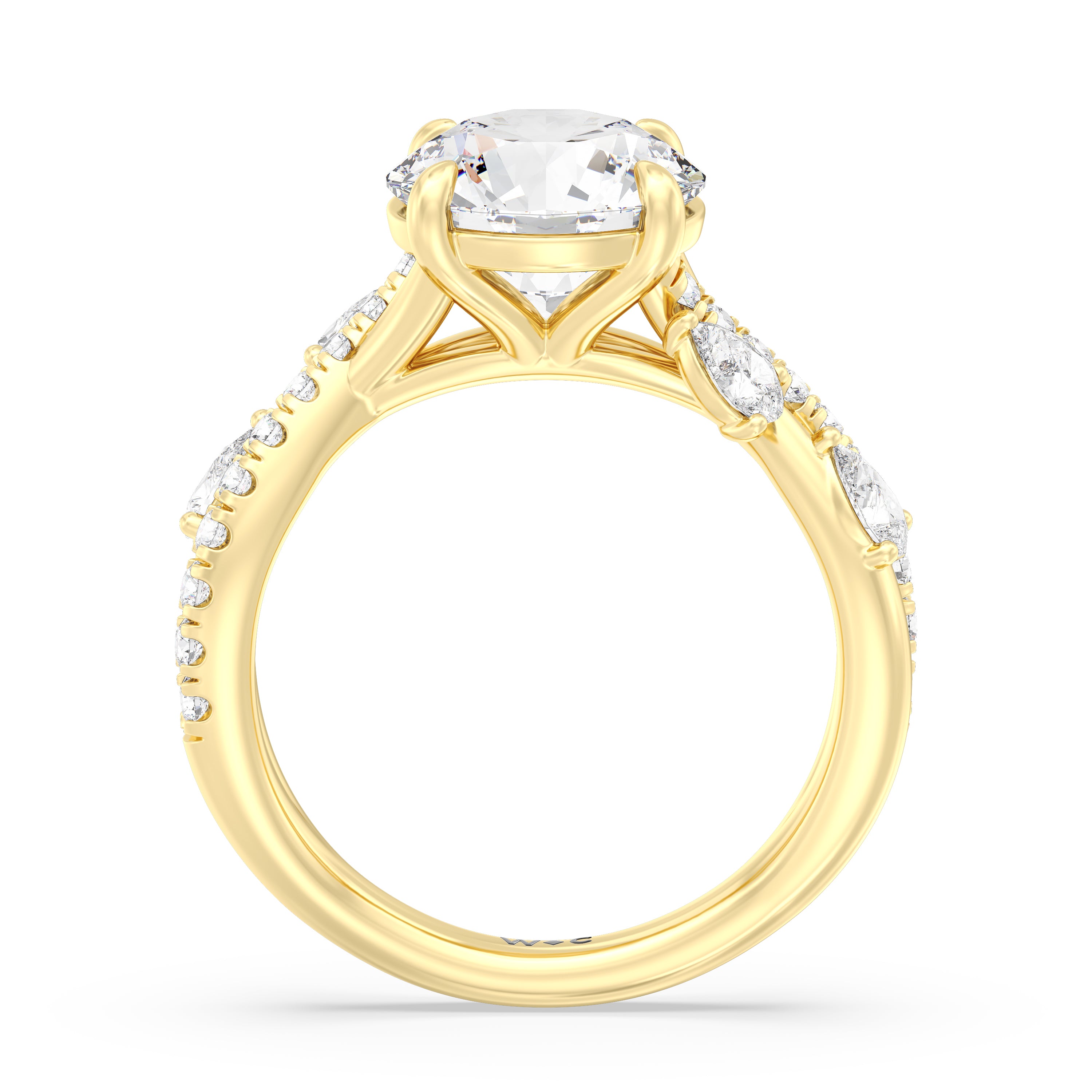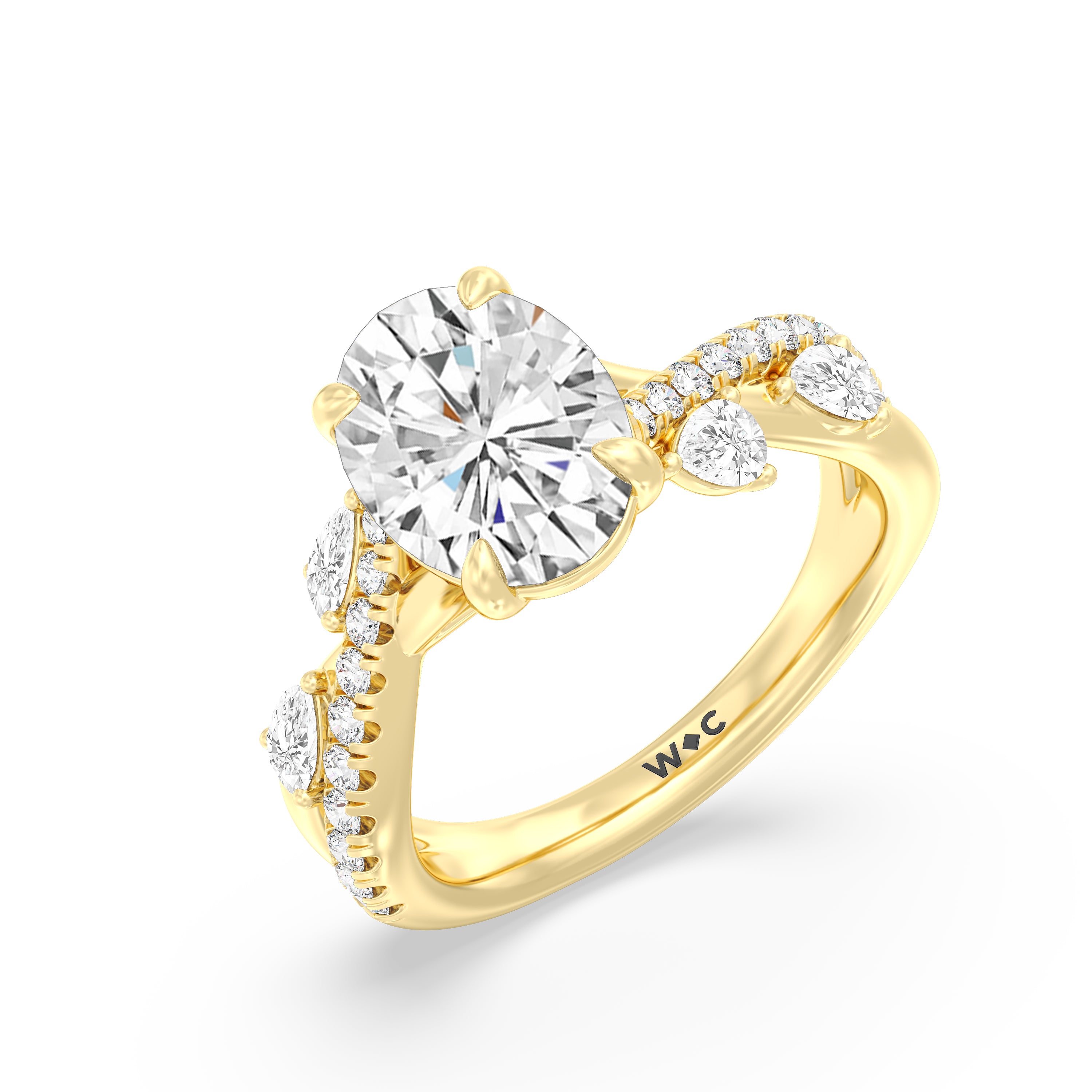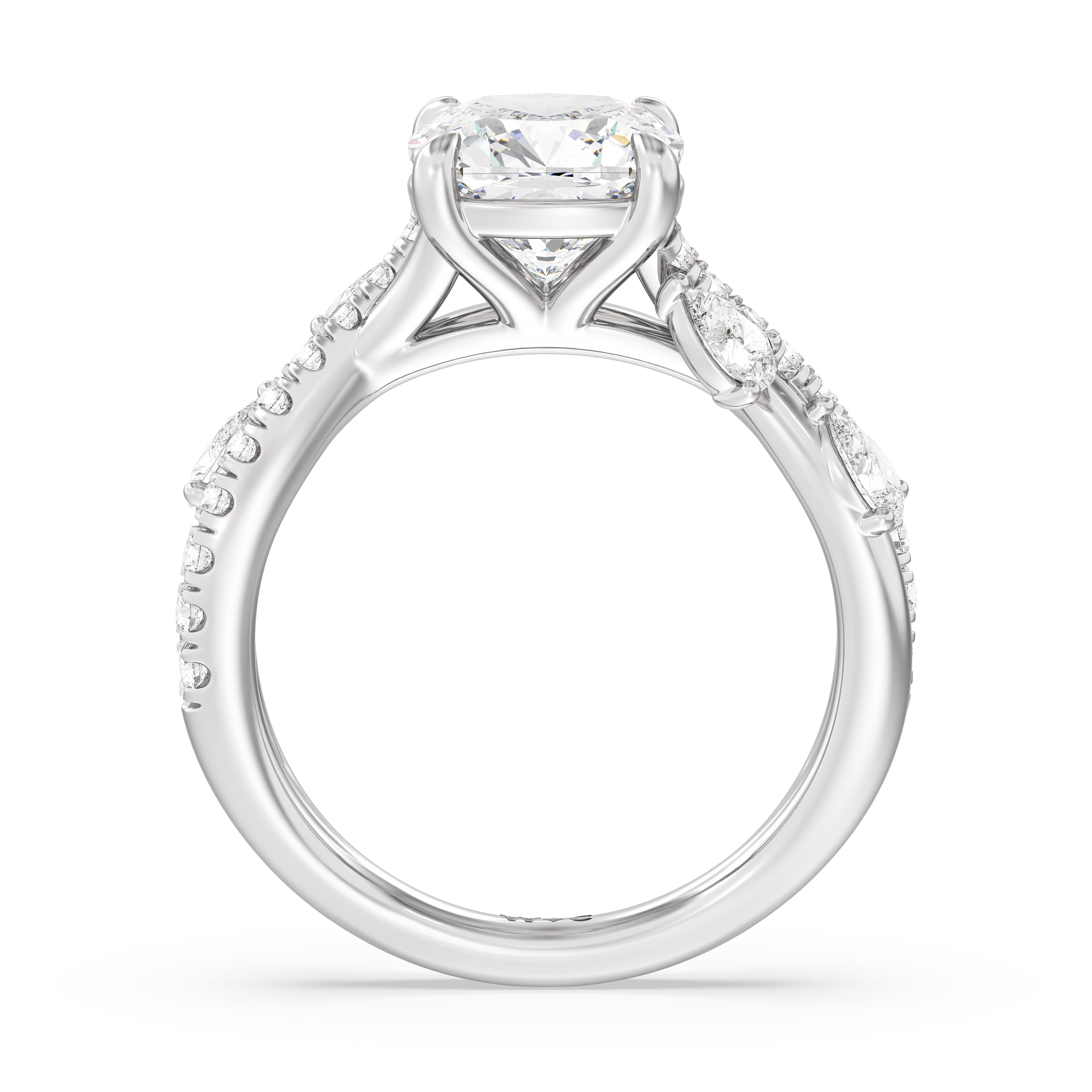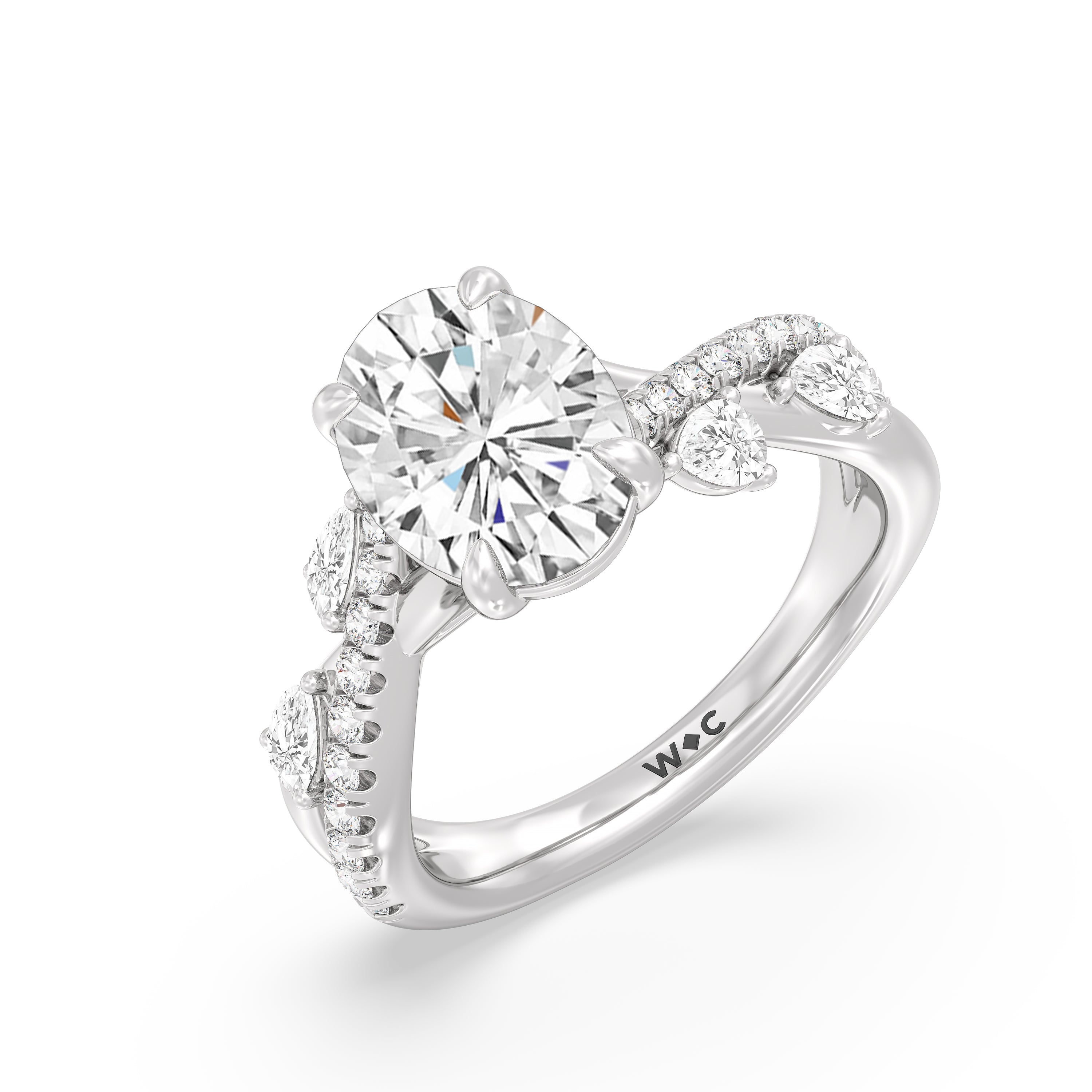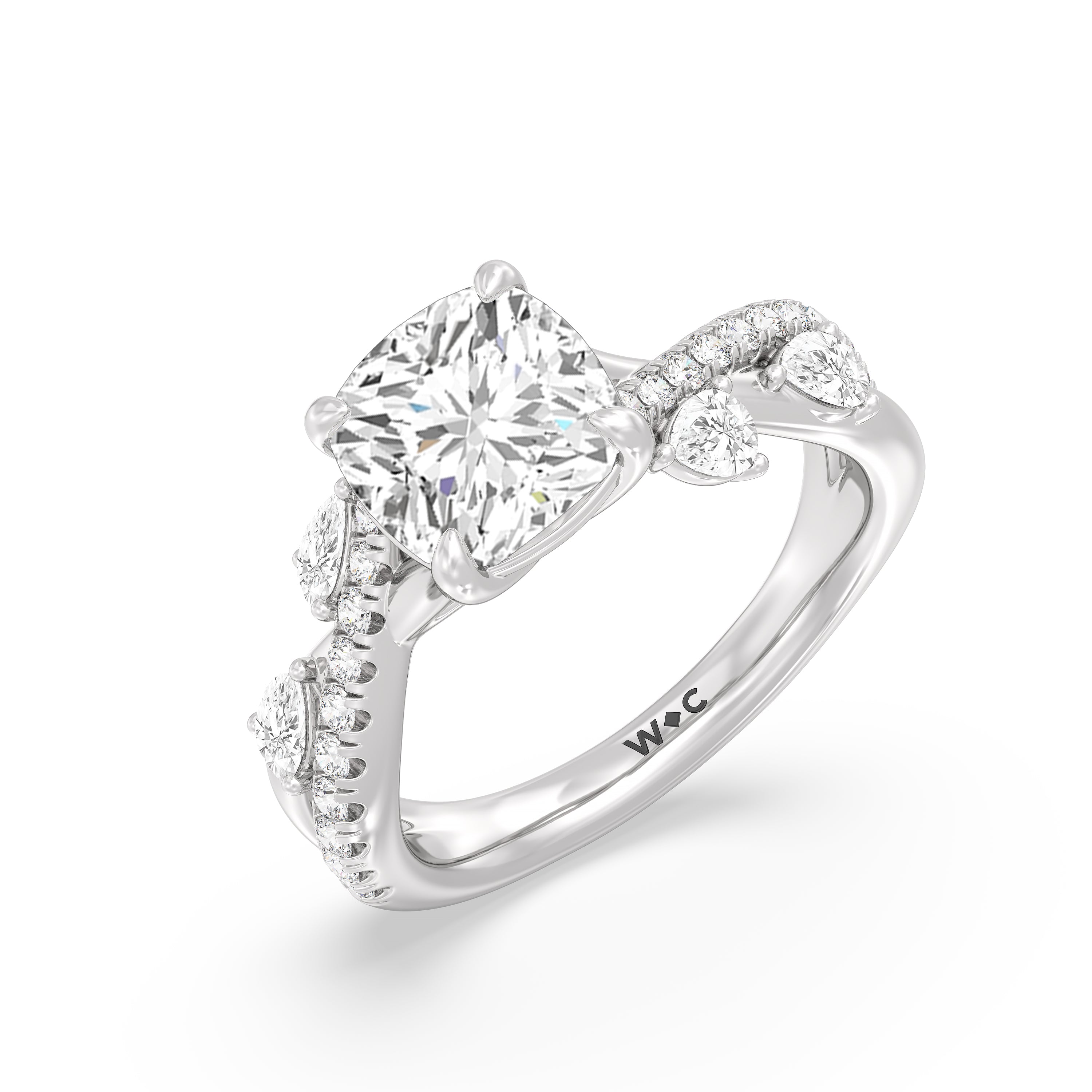 For your forever and always. This diamond vine engagement ring makes the perfect token of cherished love. The ring is set with a stunning diamond center stone, supported by a split-bypass shank. The ring's splitting and twisting vine-like shoulders are detailed with round and pear diamonds meant to enhance the center stone's glorious beauty.