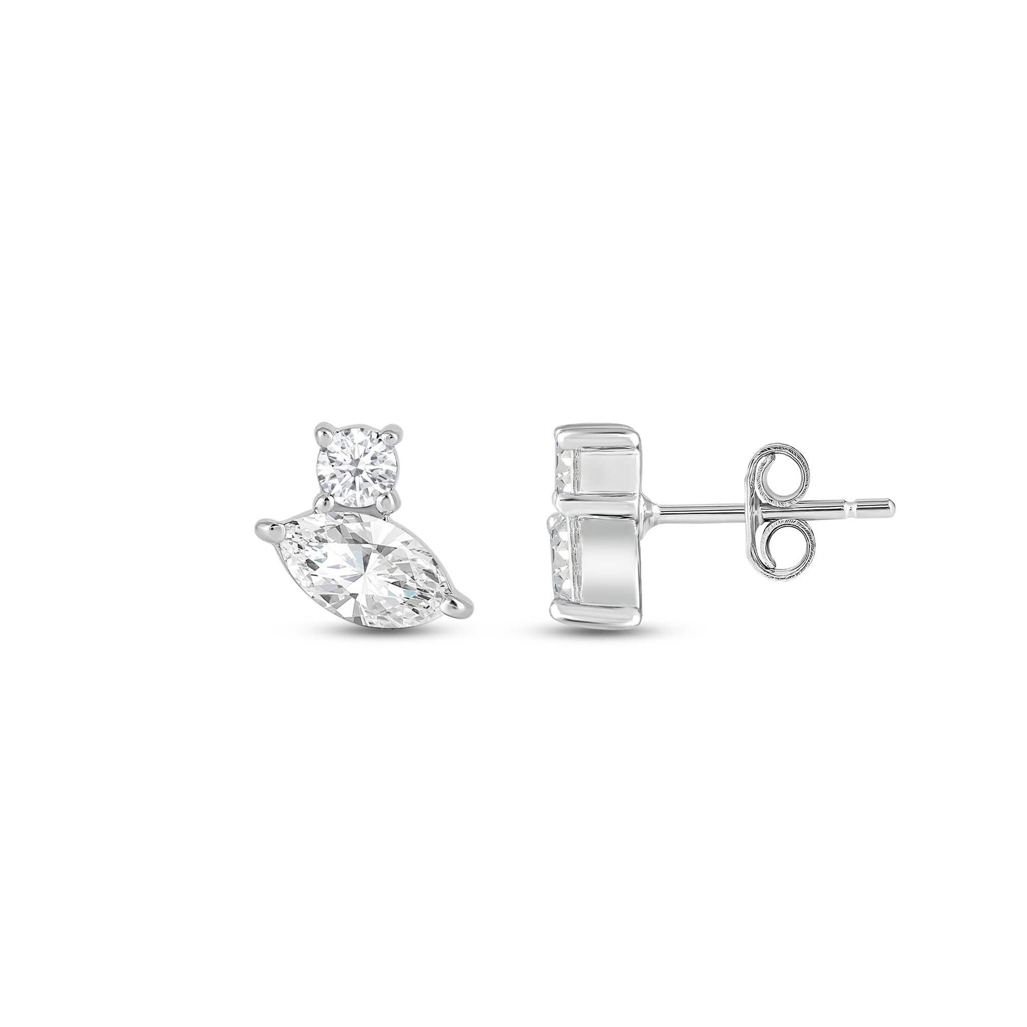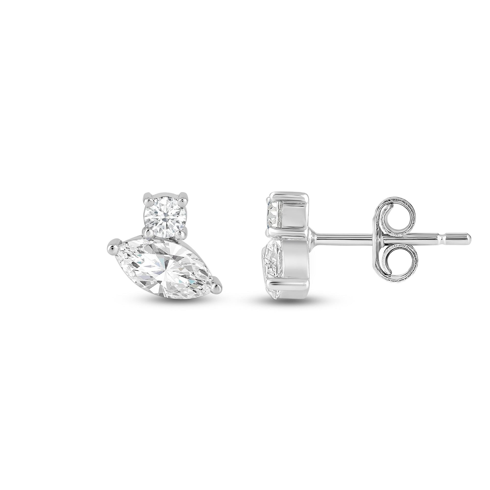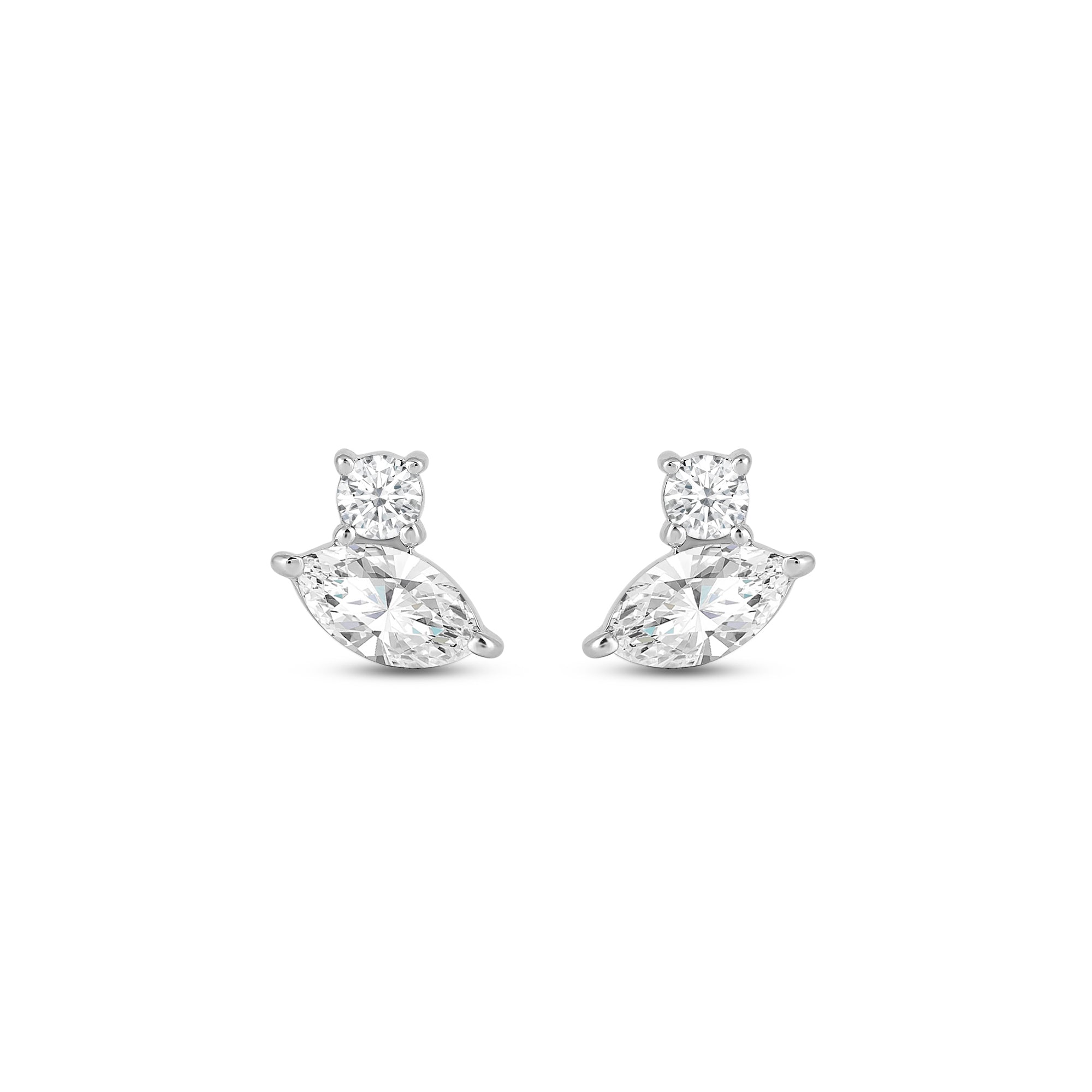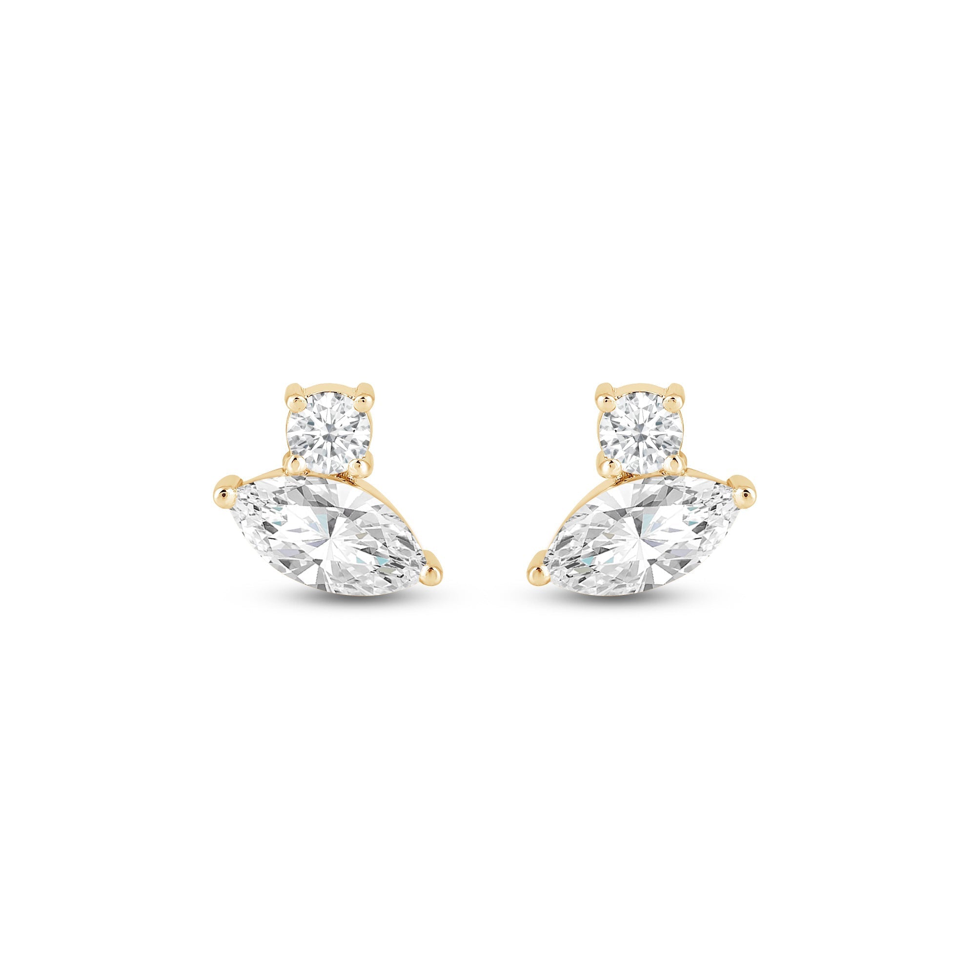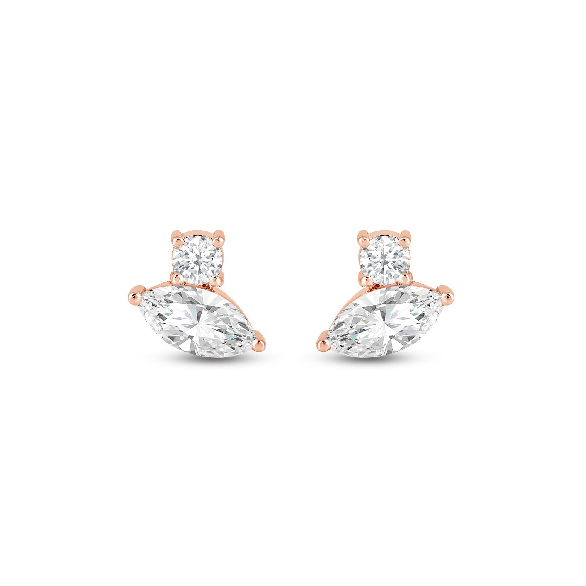 Embodying quiet luxury, these two-stone studs will effortlessly work well with any wardrobe. Each earring carries a round and marquise diamond sparkling beautifully together. This pair is the perfect choice for women who prefer a simplistic yet elegant approach to accessorizing.
