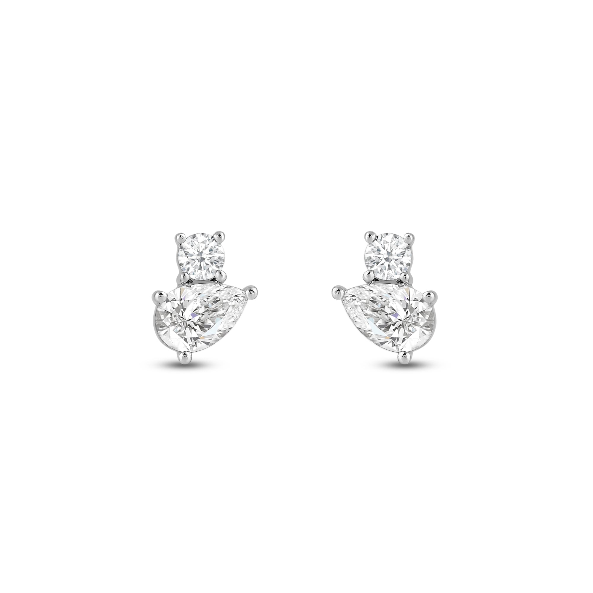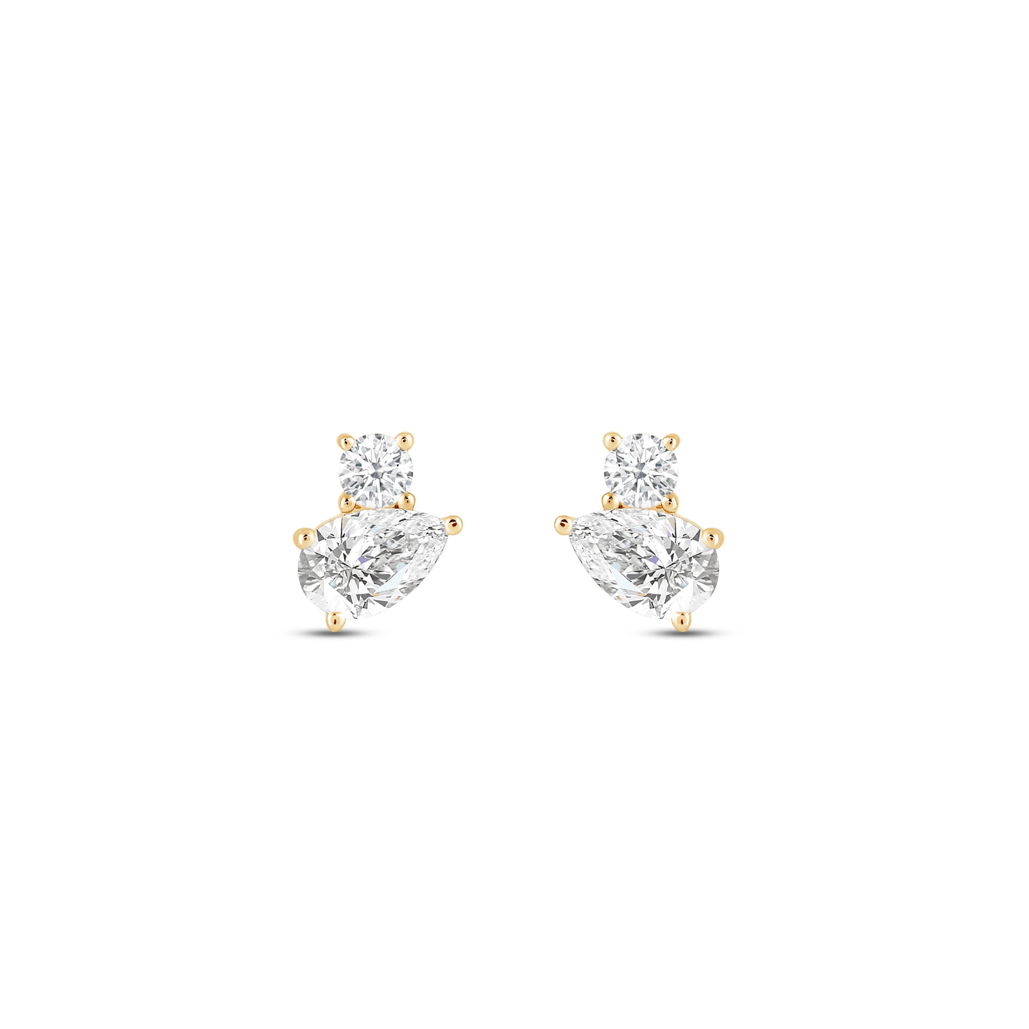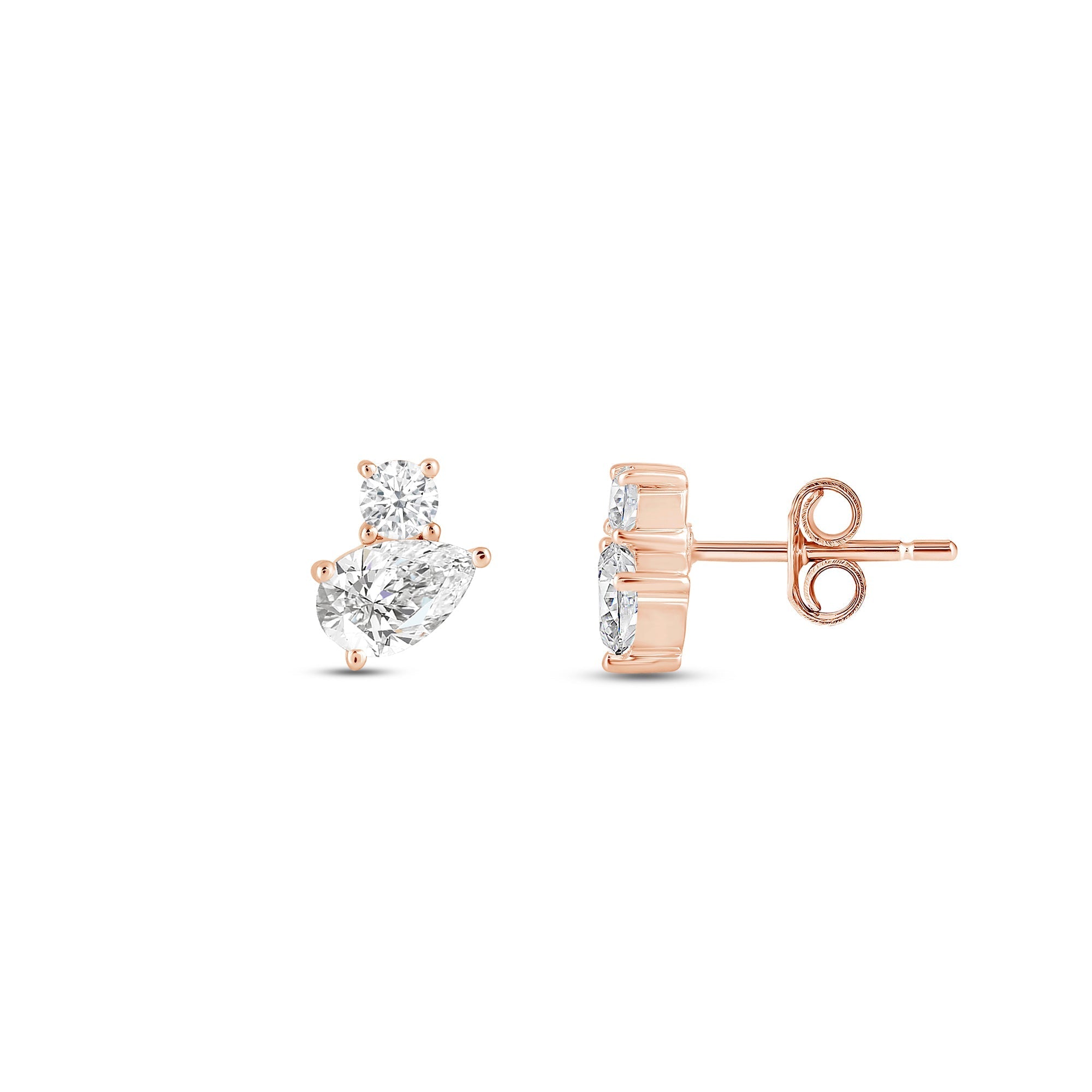 Why settle for one when you can have two? These two-stone studs feature a round and pear-cut diamond sparkling in perfect harmony. Trendy in style yet timeless in appeal, these earrings will pair seamlessly with any ensemble.