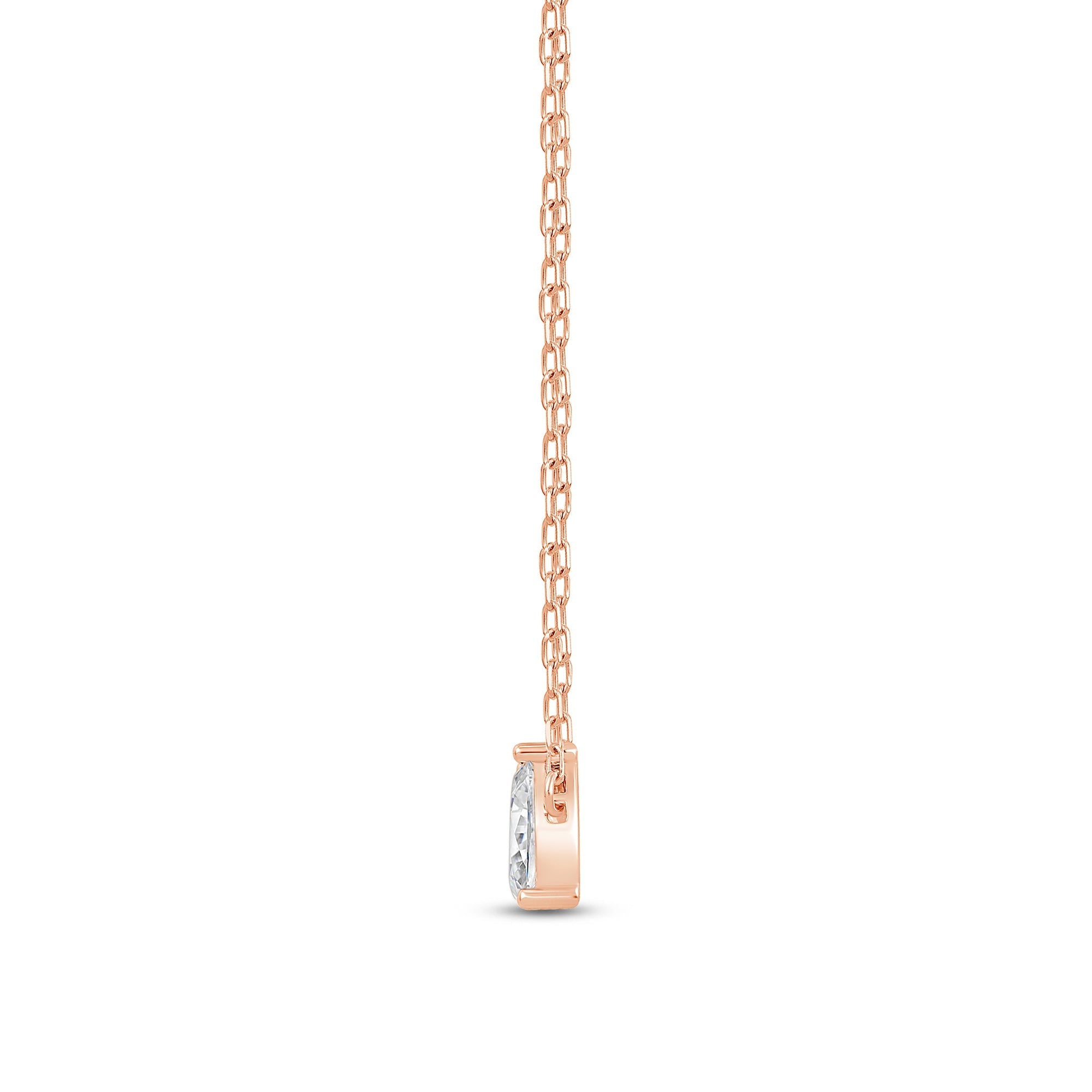 Give your daily wardrobe a quietly luxurious update through this two-stone necklace. This piece features a thin necklace chain holding a pendant with a round diamond and a pear diamond. The two sparkling gemstones, set side by side, create a stunning contrast while sparkling in perfect sync.
