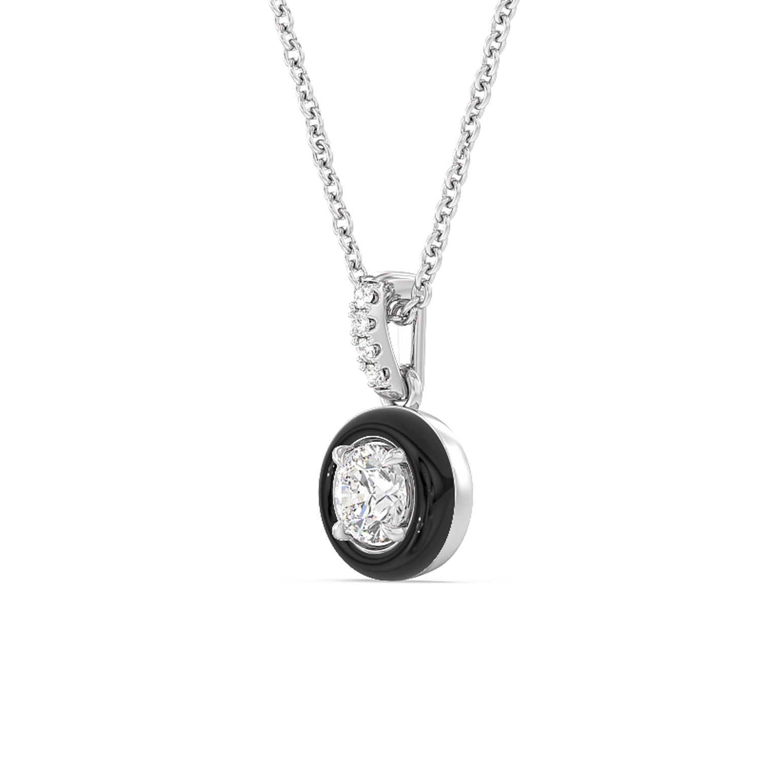 This necklace features a round diamond framed in ceramic bezel. The added diamonds on the drop make for extra sparkle, ensuring no detail goes unnoticed. Its lightweight feel makes it an ideal necklace to wear solo or stack for your everyday wear.
