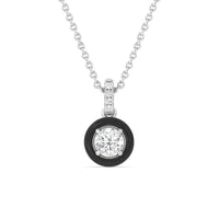 This necklace features a round diamond framed in ceramic bezel. The added diamonds on the drop make for extra sparkle, ensuring no detail goes unnoticed. Its lightweight feel makes it an ideal necklace to wear solo or stack for your everyday wear.