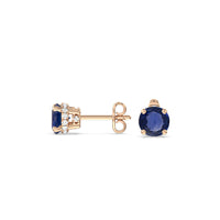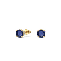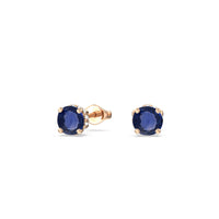 These lustrous gemstone studs display the elegance of the less-is-more aesthetic. Round Sapphires dot the earrings with vivid beauty. Underneath each colored gem is an under halo of lab-grown diamonds for that unexpected sparkle.