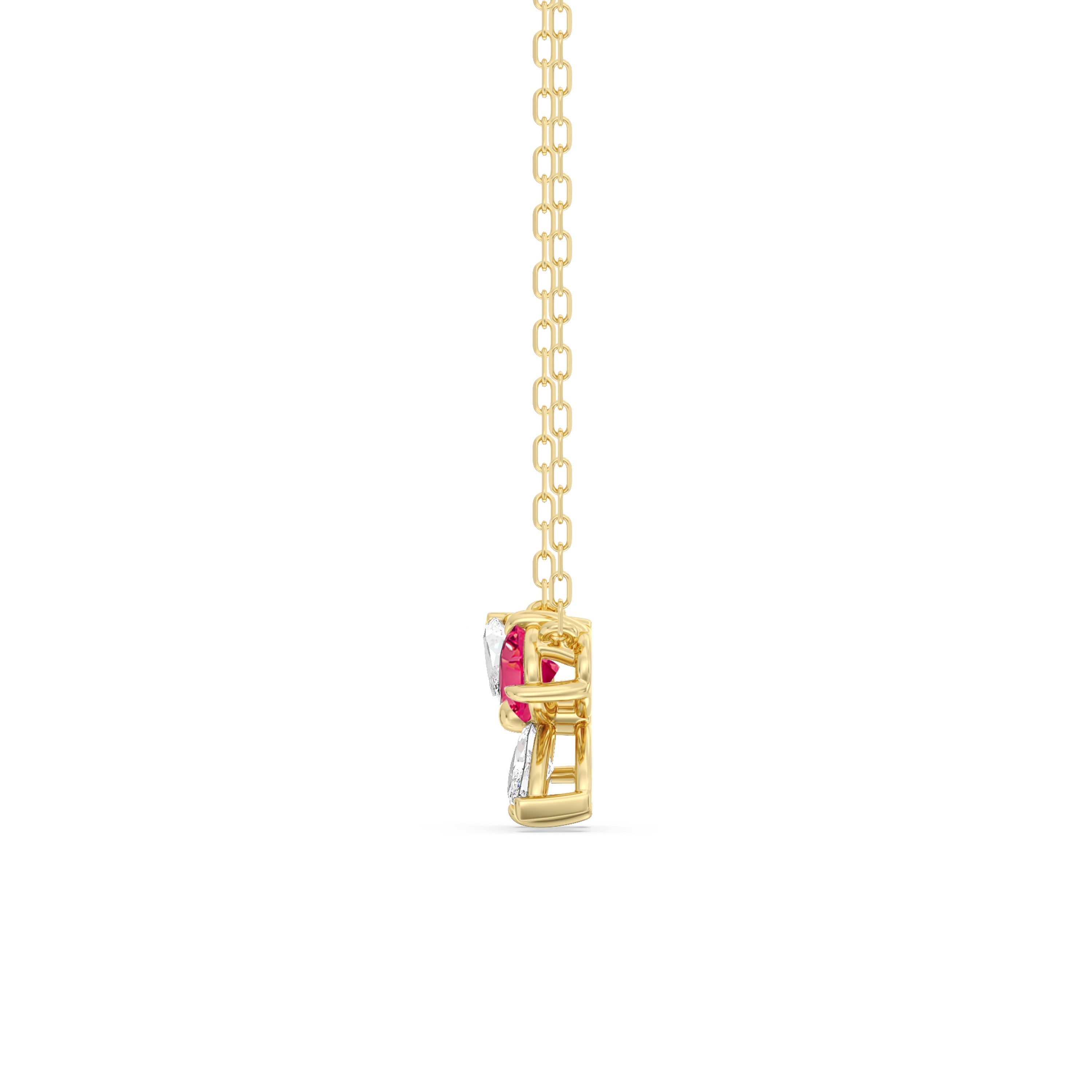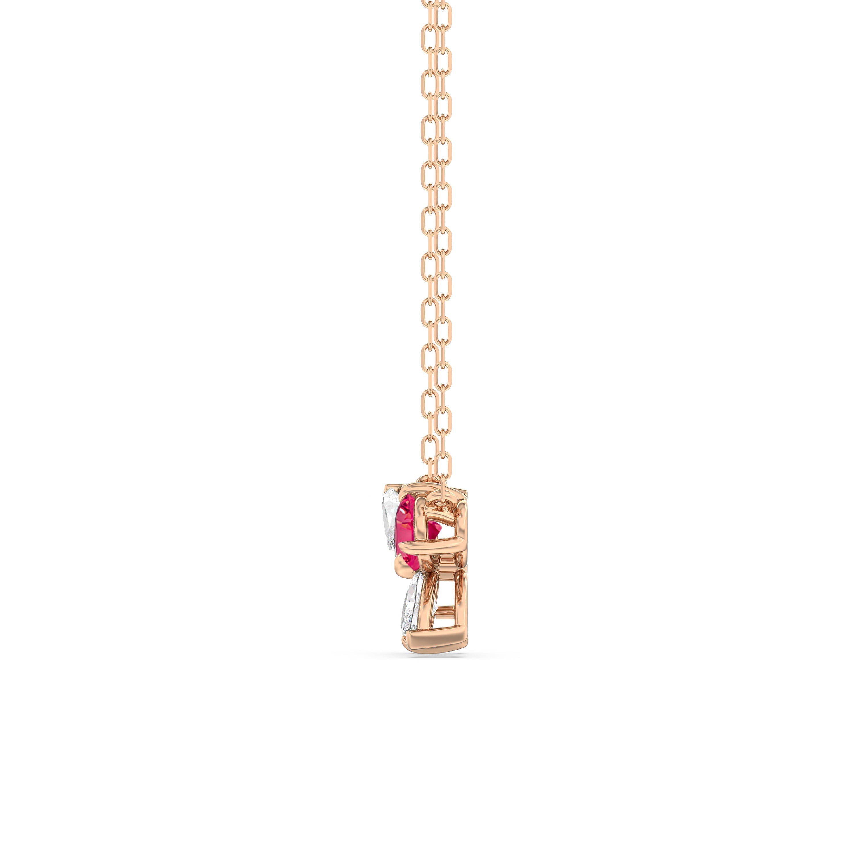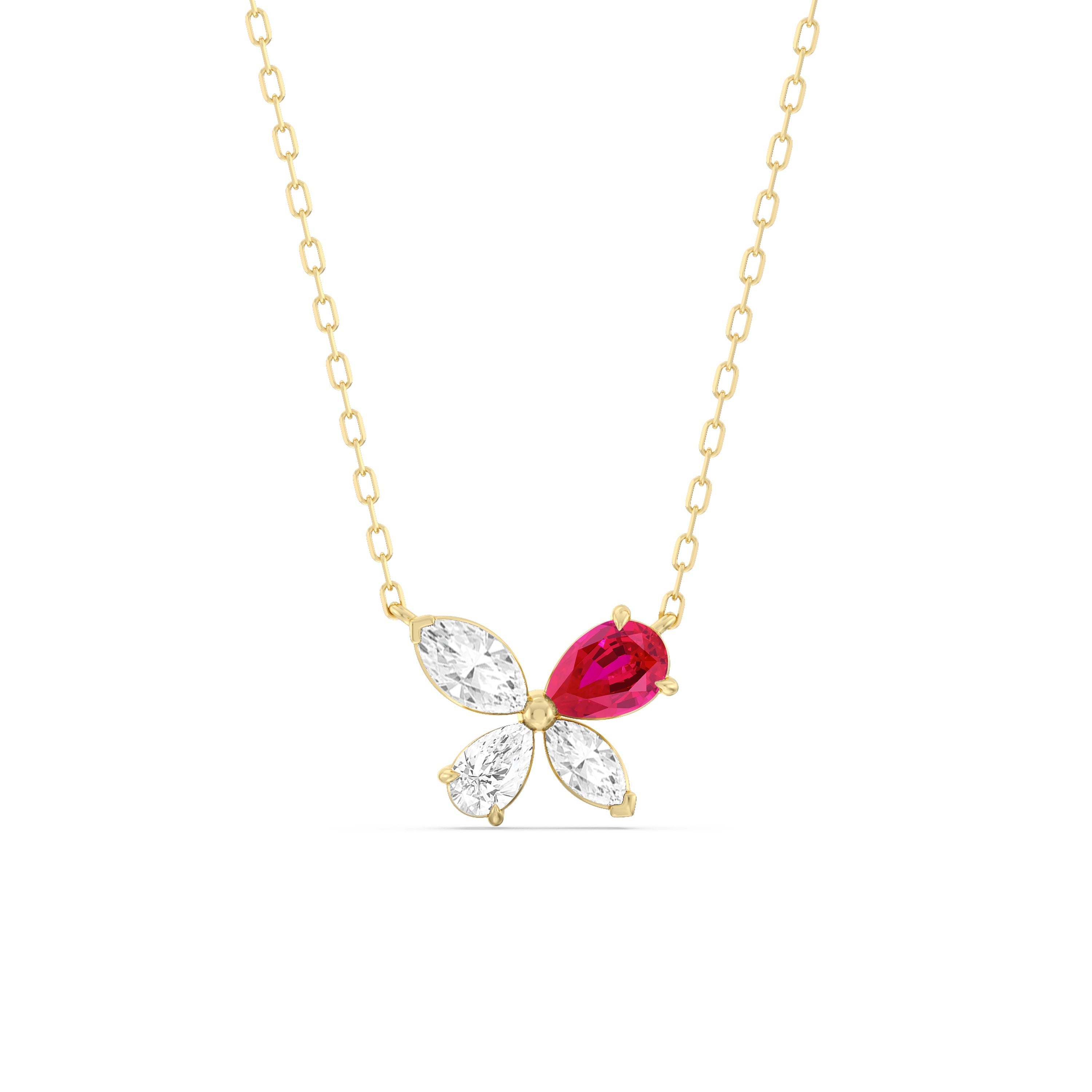 The delicate Marsilea Necklace reimagines the four-leaf silhouette of a clover fern. It presents four rubys with pointed ends that meet together, radiating their own unique flair while effortlessly complementing one another. Effortlessly elevating, this diamond necklace may be just what you need to power up your luck.