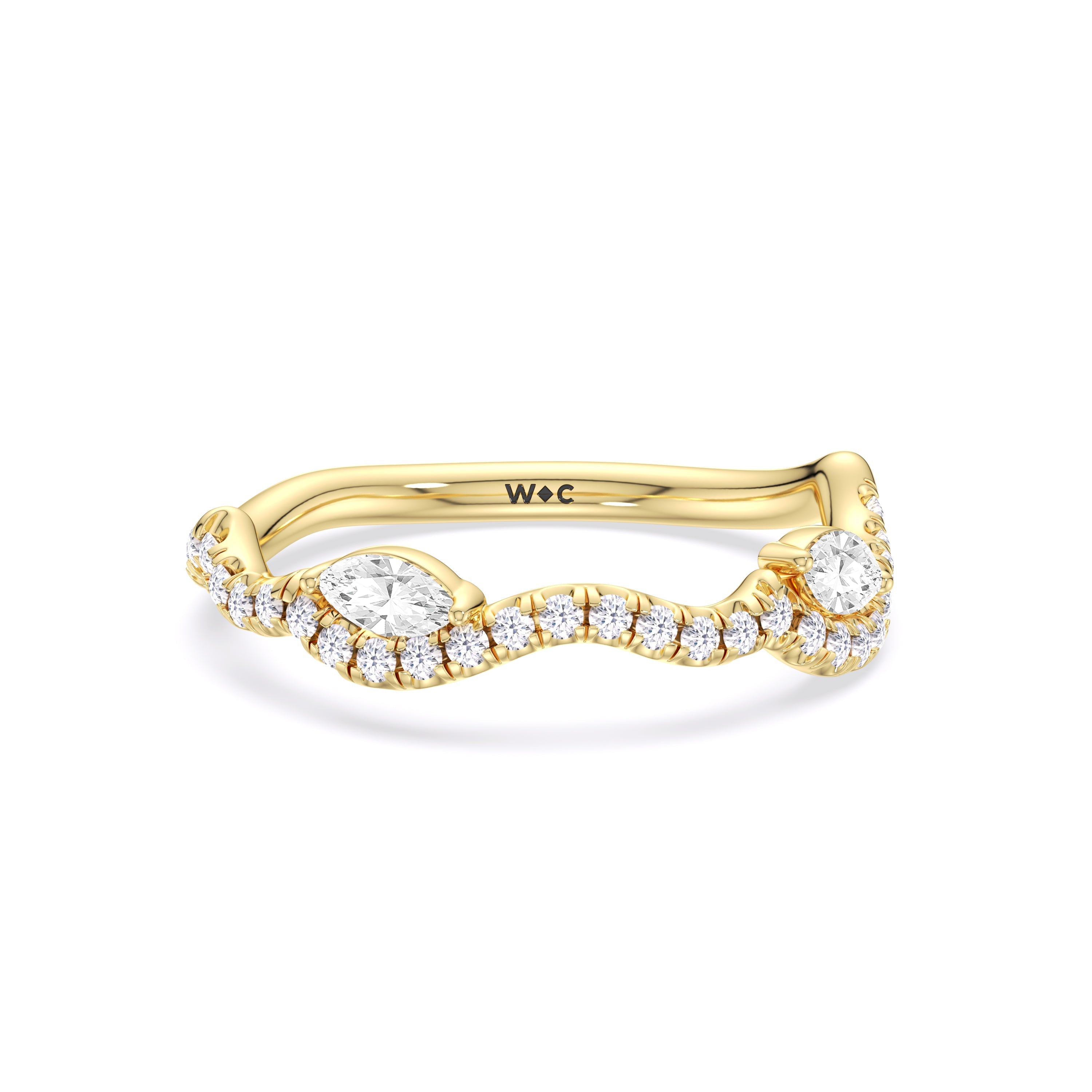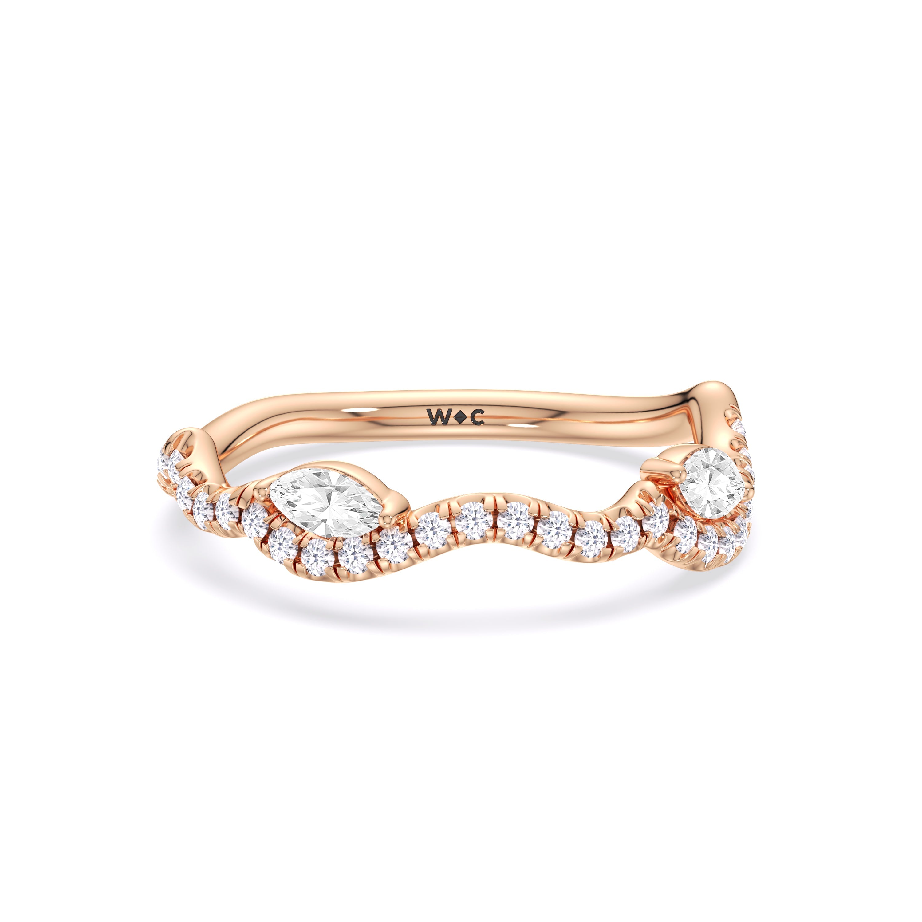 This curved diamond set wedding band is perfectly contoured to complement our ‘insert engagement ring title’ for a simple and sophisticated look.