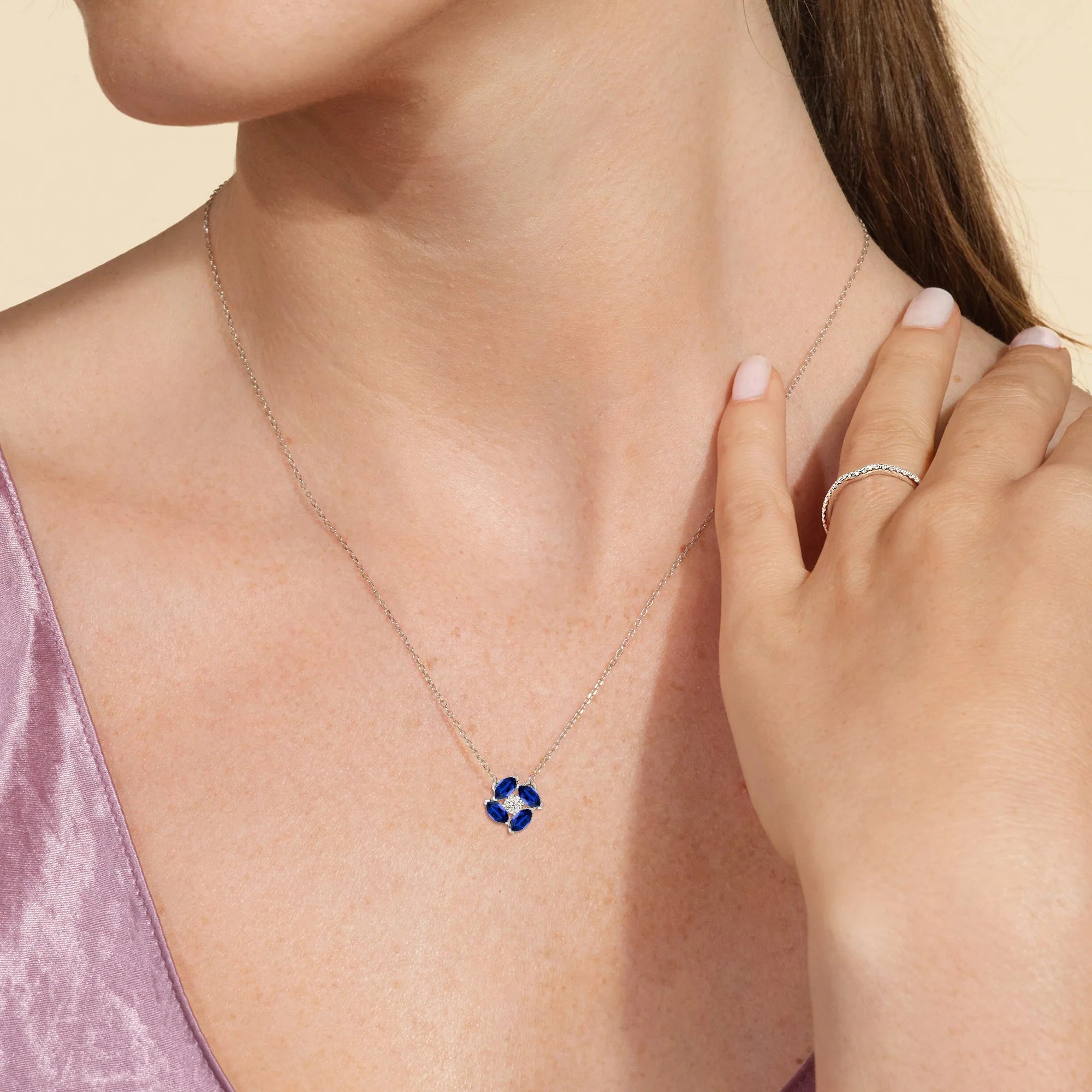 Sapphire And Diamond Hydrangea NecklaceTest Drashya