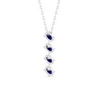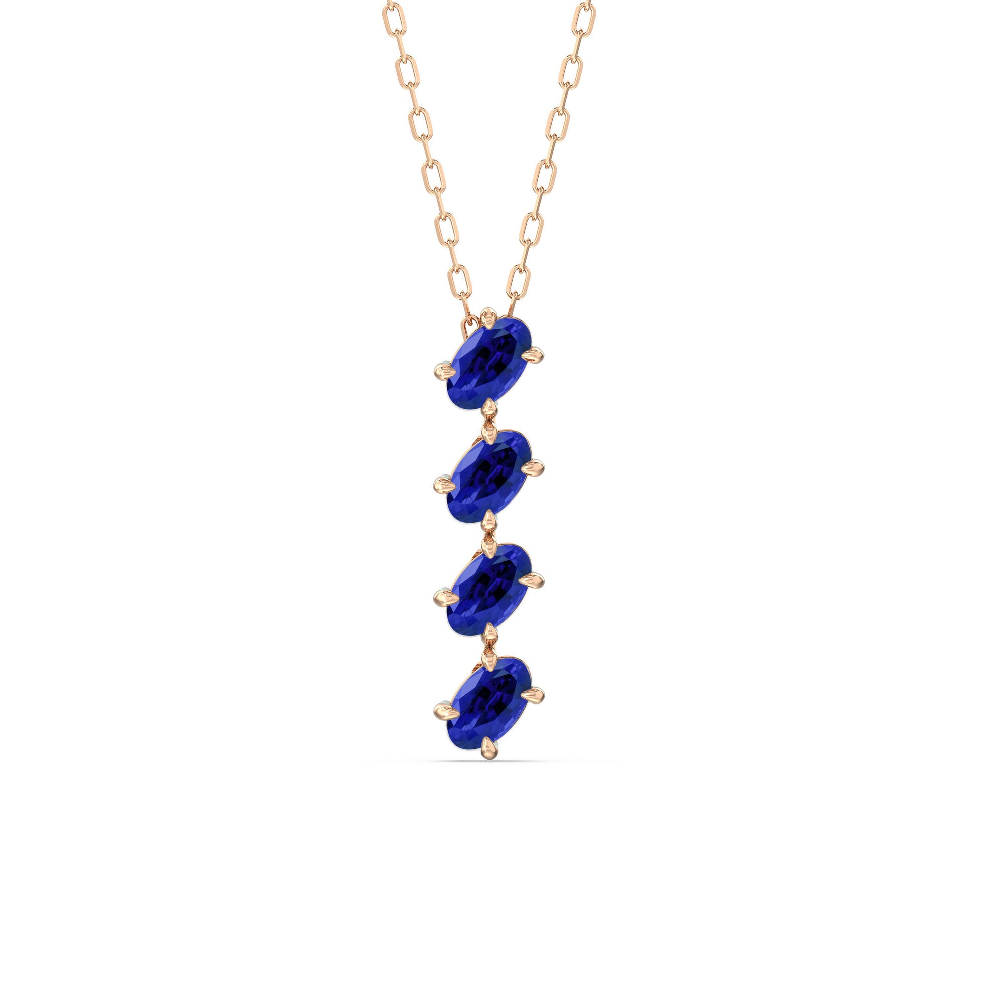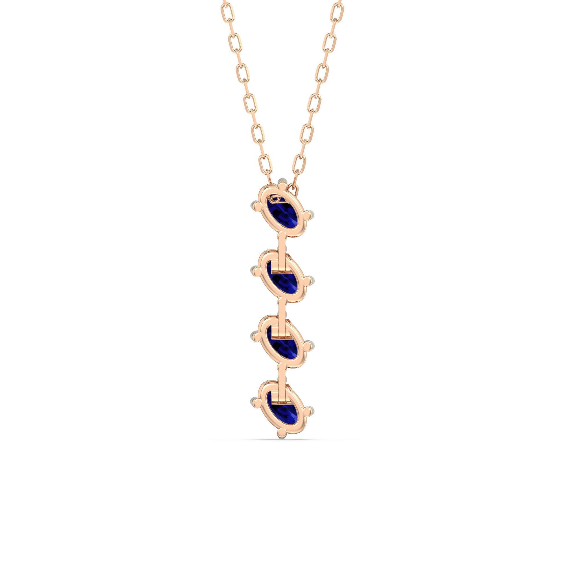 Best worn alone, this linear diamond necklace exudes an air of elegance that won't go out of fashion. Its glittering style showcases a vertical row of four oval sapphire. Each diamond is set in a slanted orientation for an extra dazzling effect.