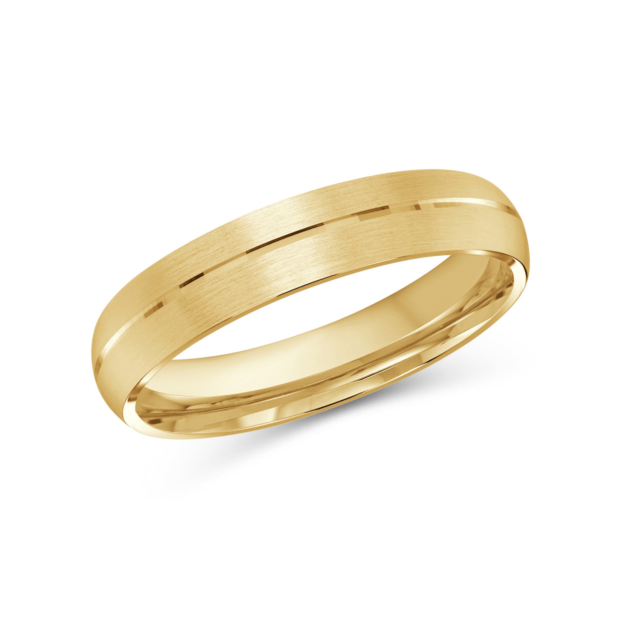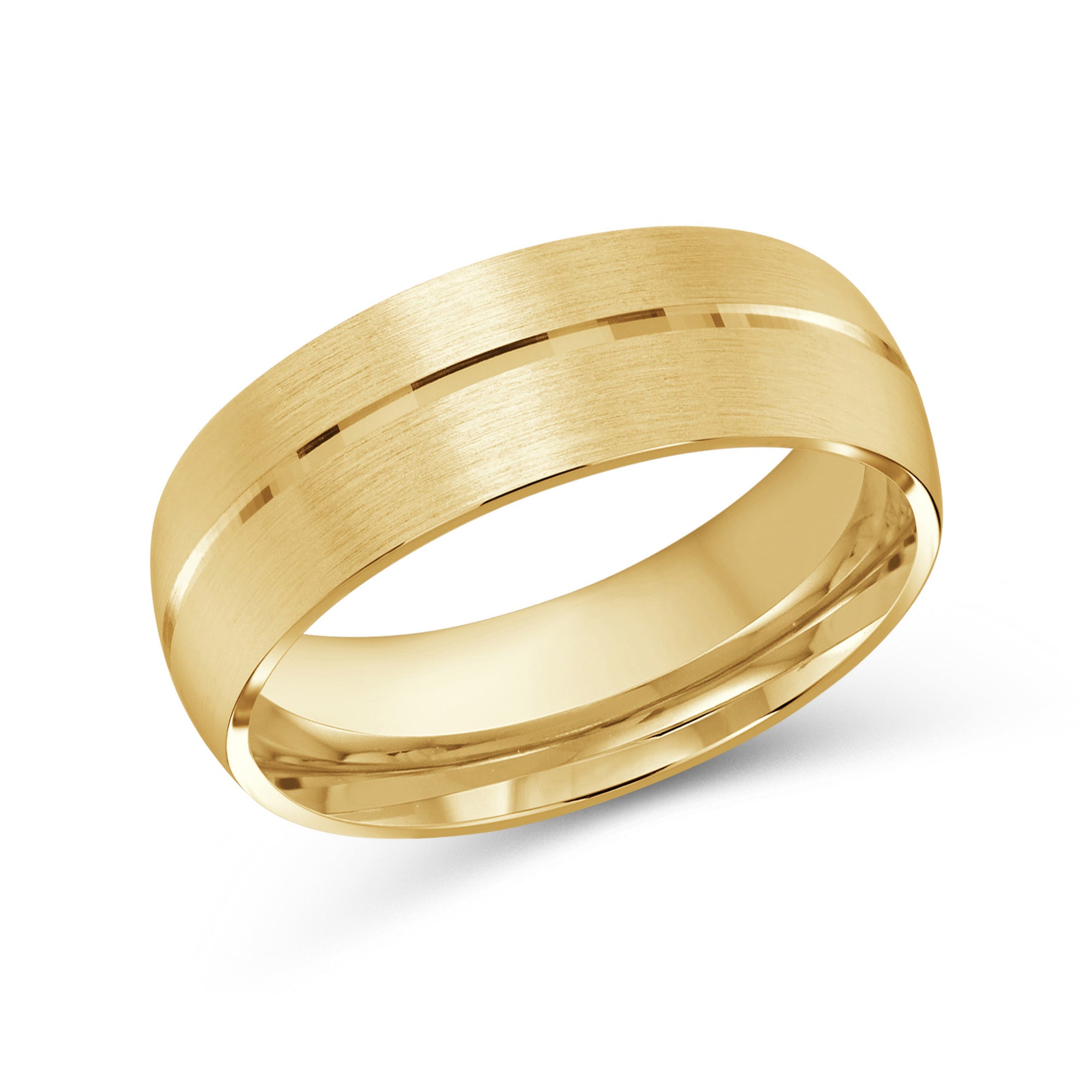 Simple and classic in design, this men's band makes the ideal marker of love that is pure and sincere. This low-domed ring features a satin finish and is detailed with a polished and grooved center. Its streamlined style and comfort-fit design render it ideal for daily wear.