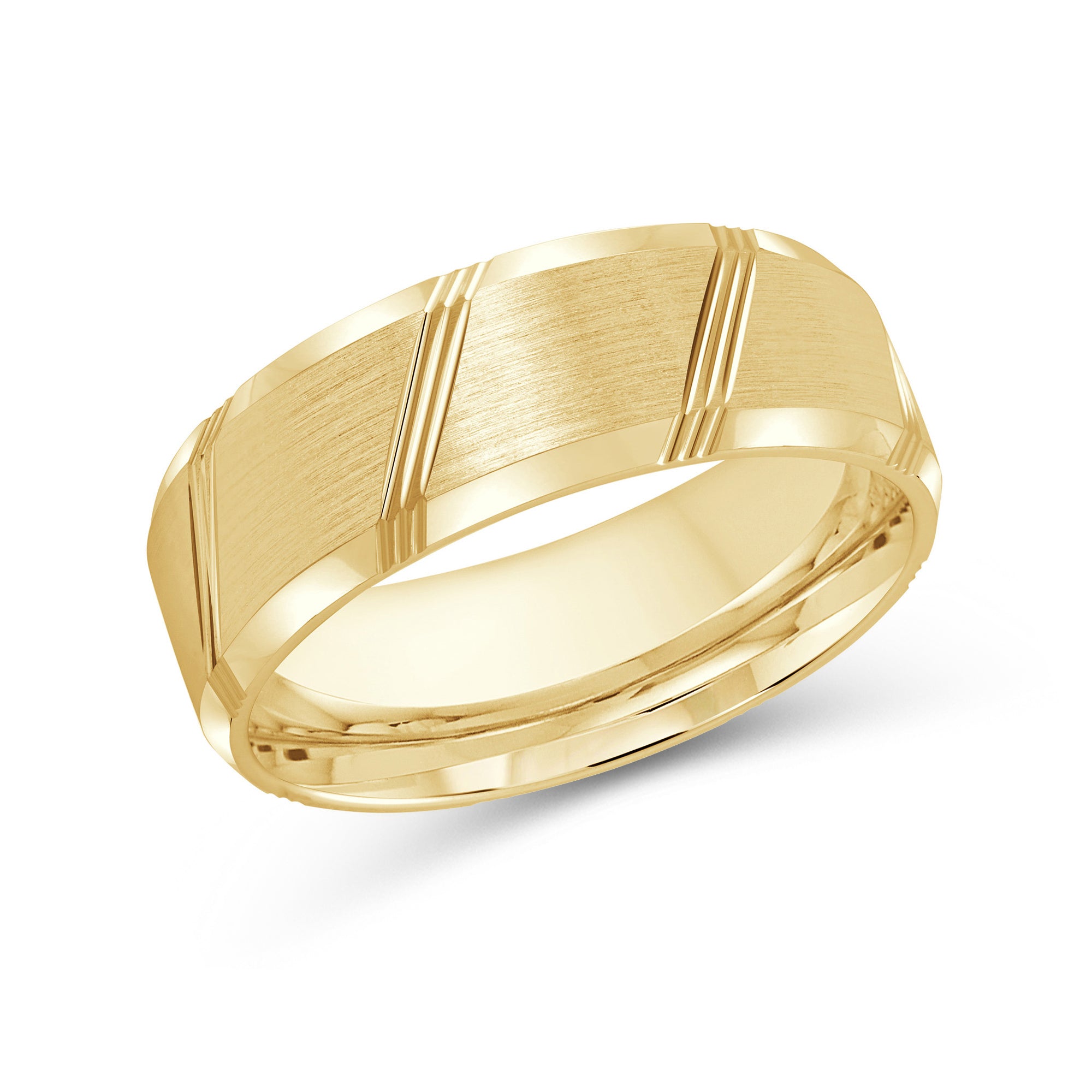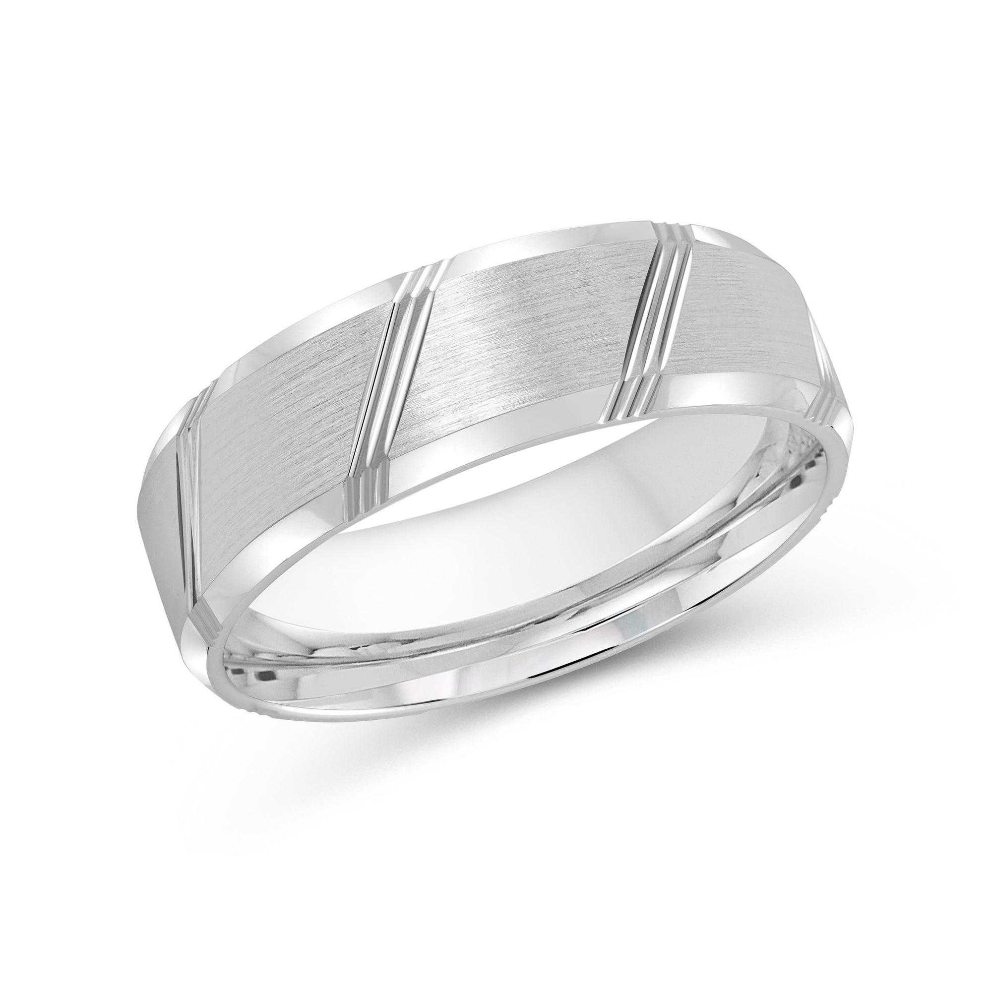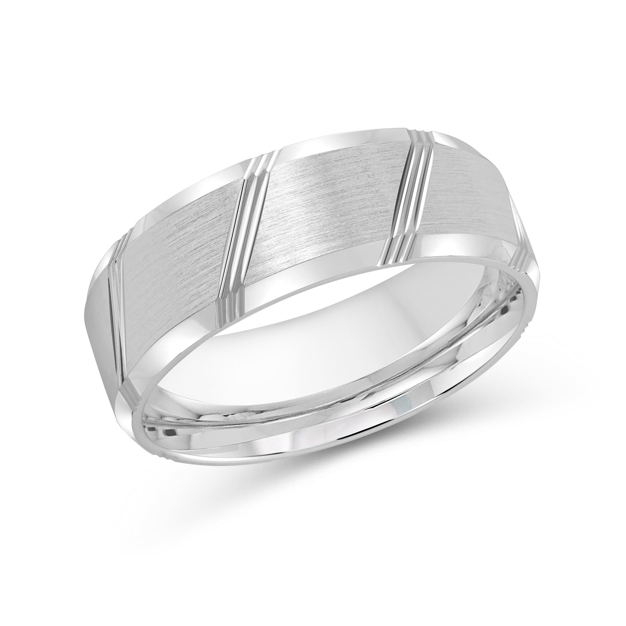 A fashion-forward ring of choice. This satin-finished ring is designed with slanted stripes set on stations along its circumference. The beveled edges add a hint of character to the ring while the comfort-fit design enhances the ring's daily wearability.