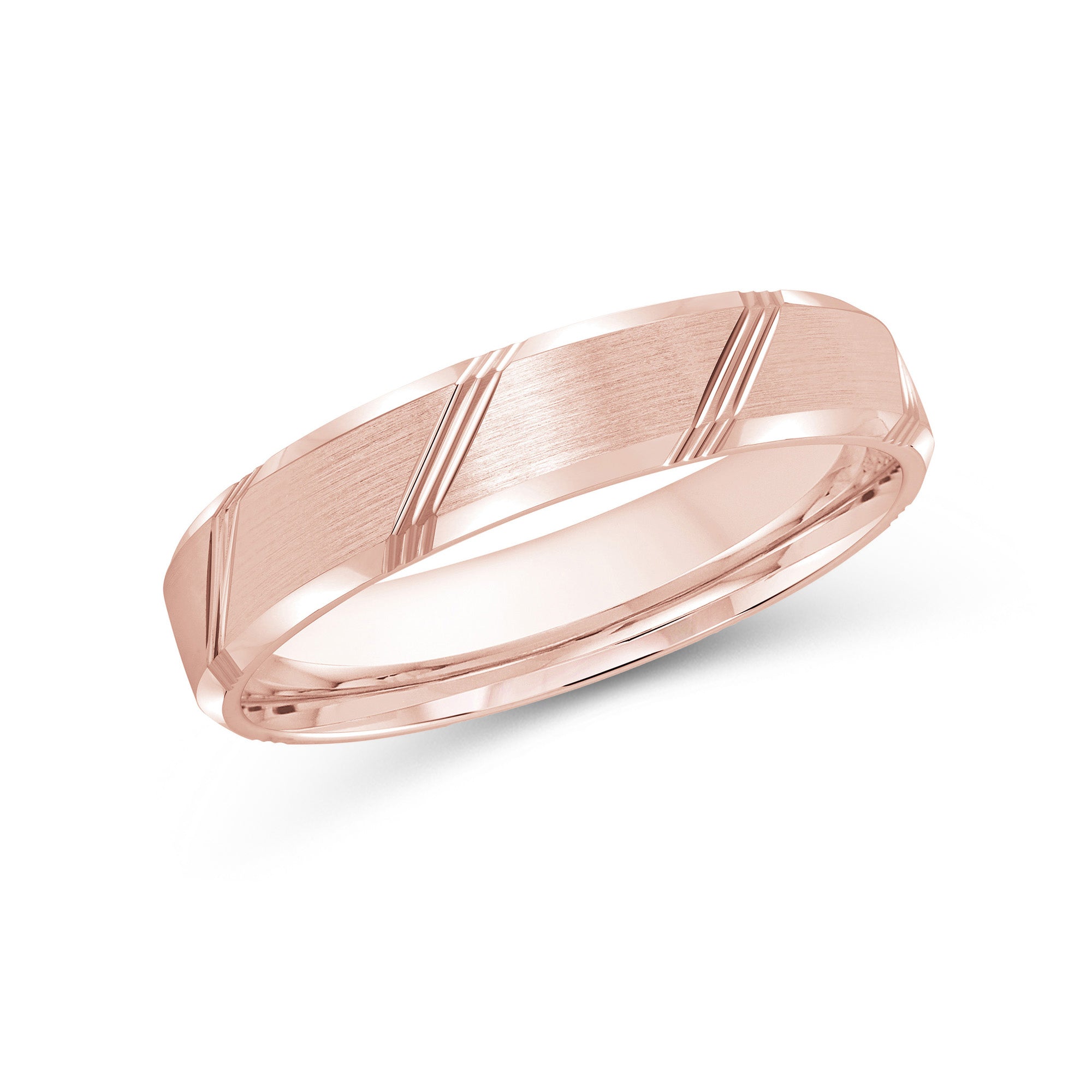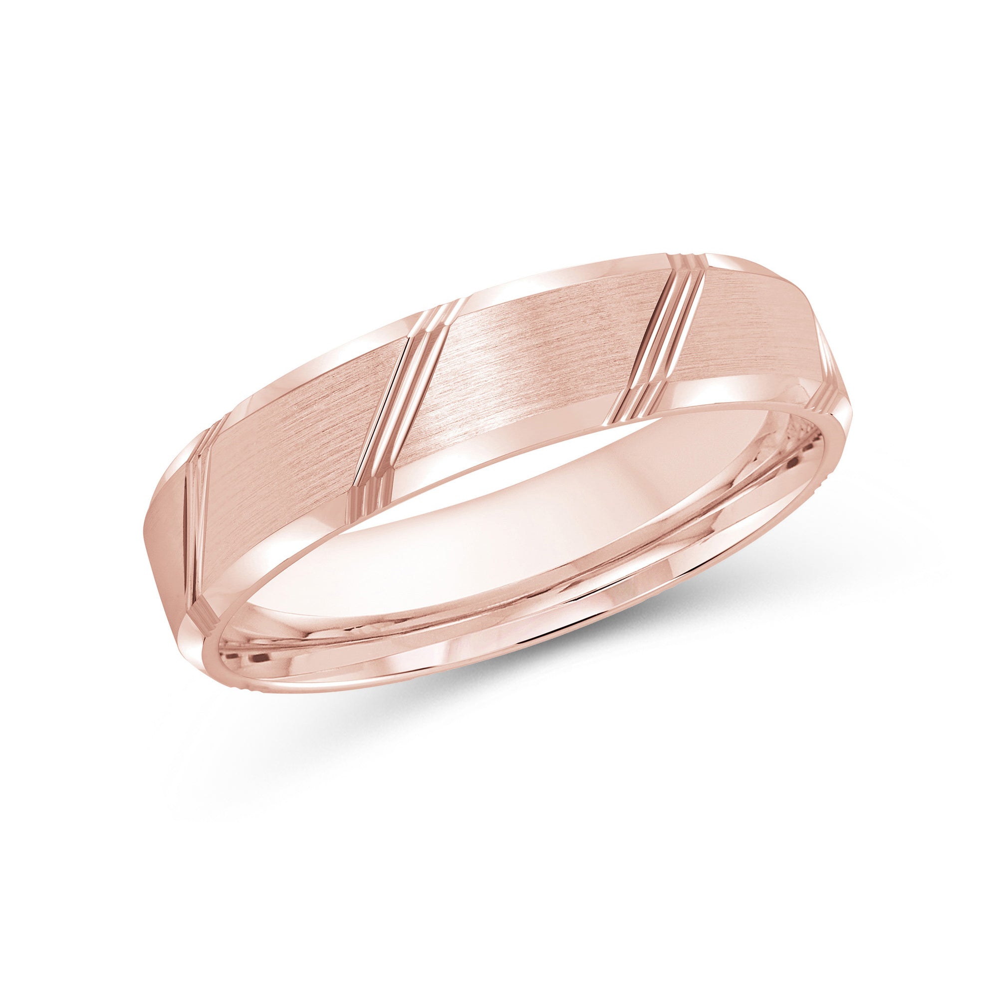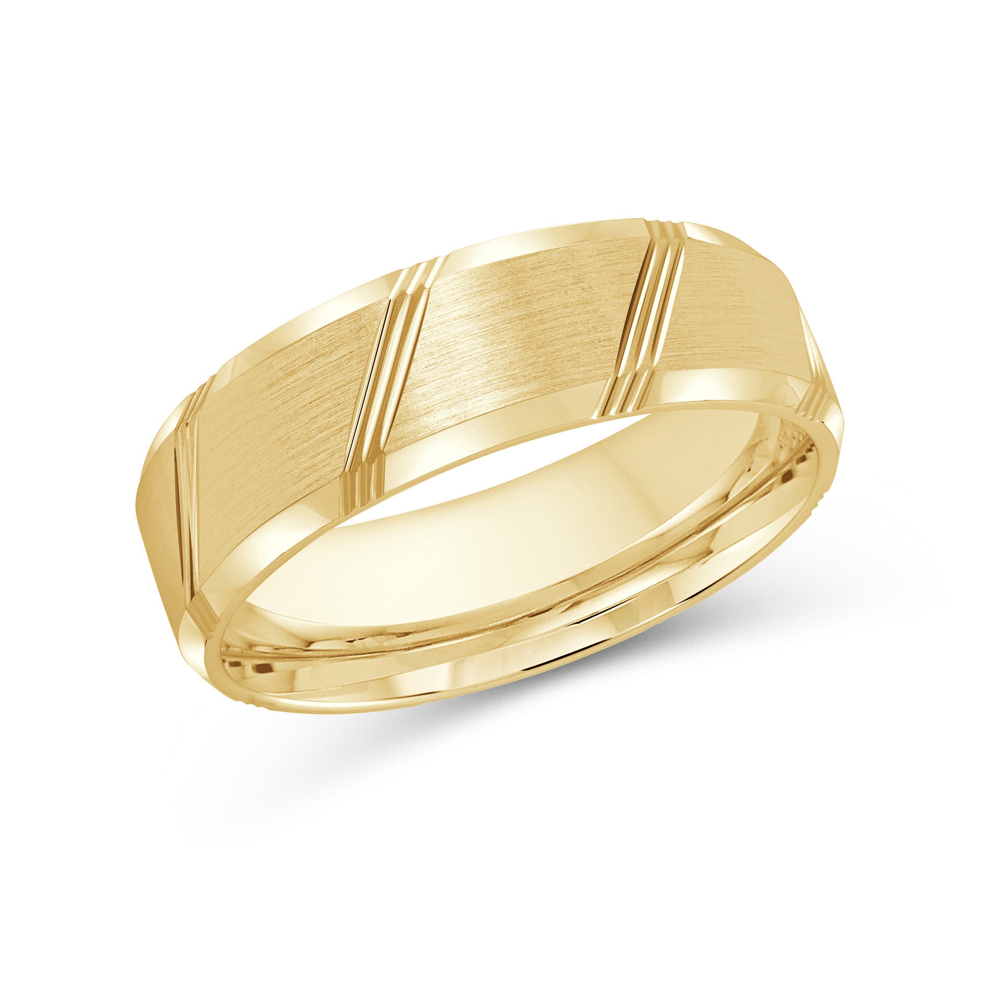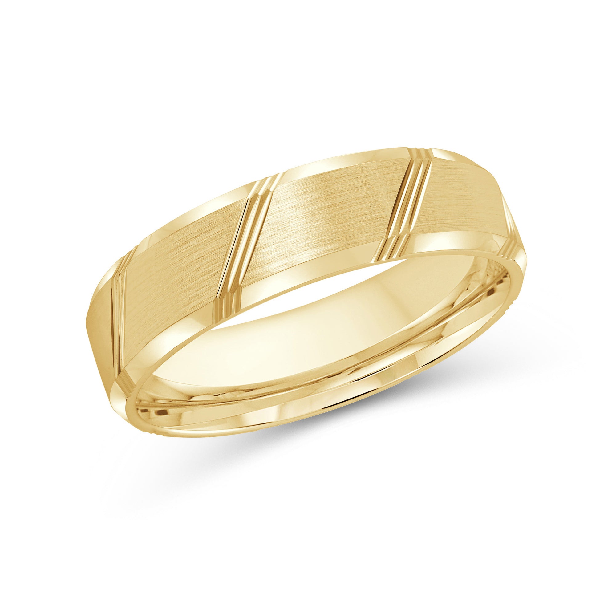 A fashion-forward ring of choice. This satin-finished ring is designed with slanted stripes set on stations along its circumference. The beveled edges add a hint of character to the ring while the comfort-fit design enhances the ring's daily wearability.