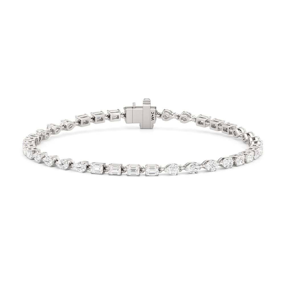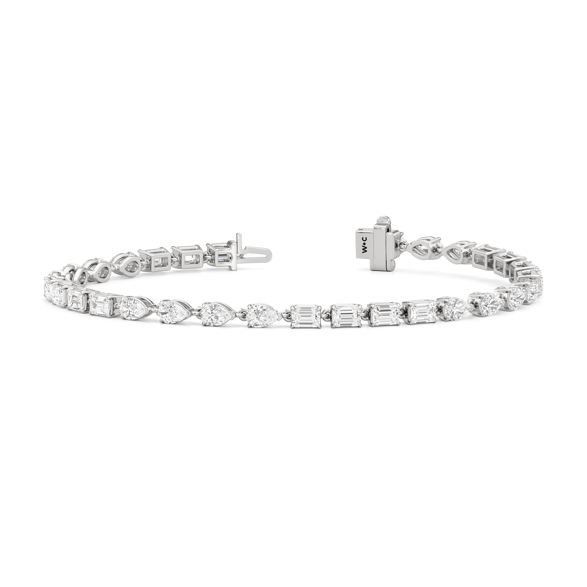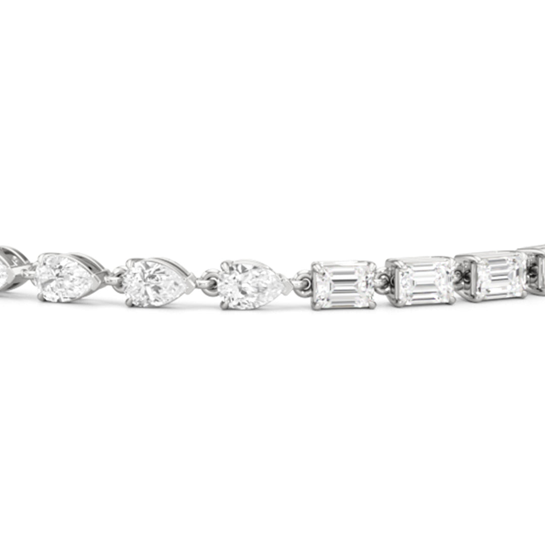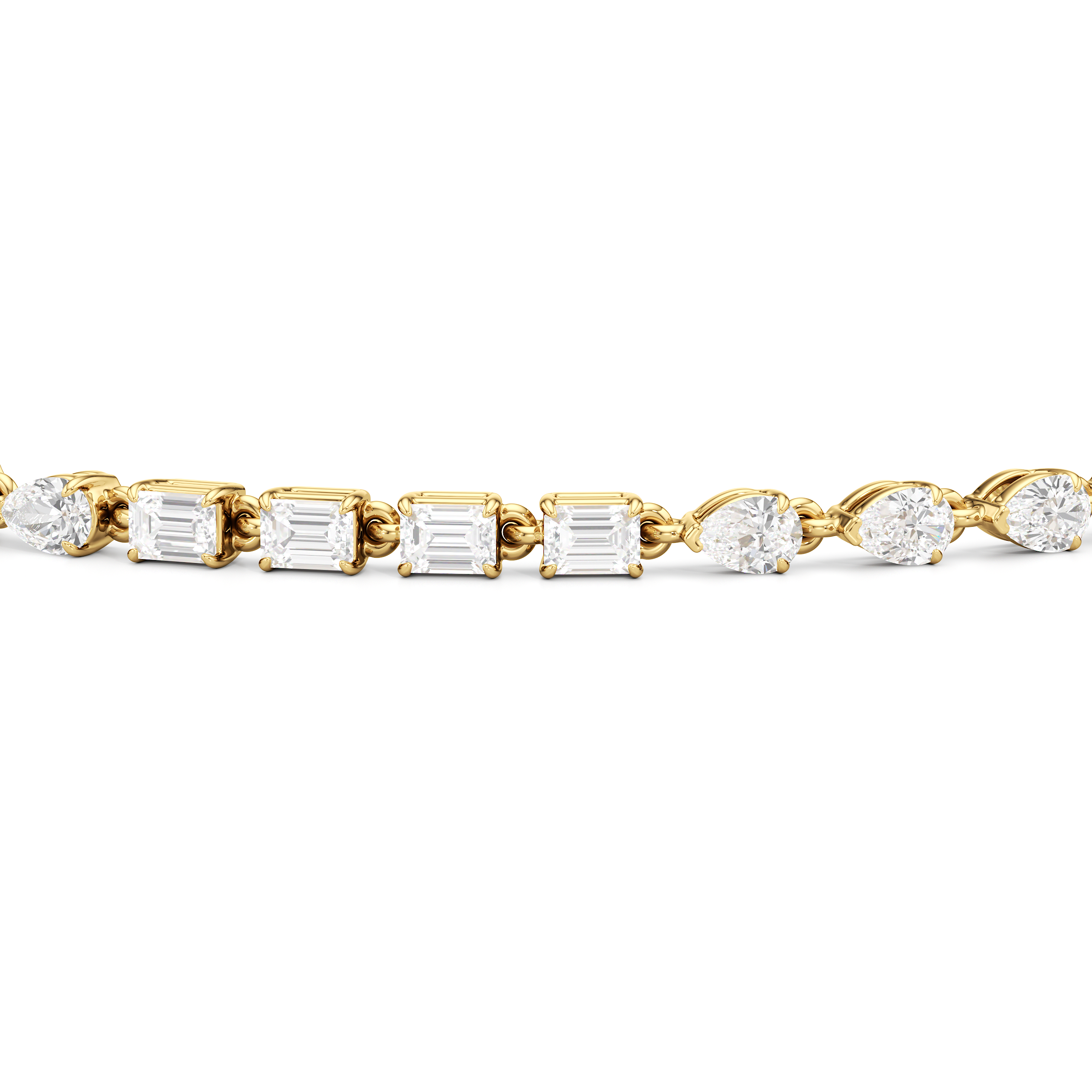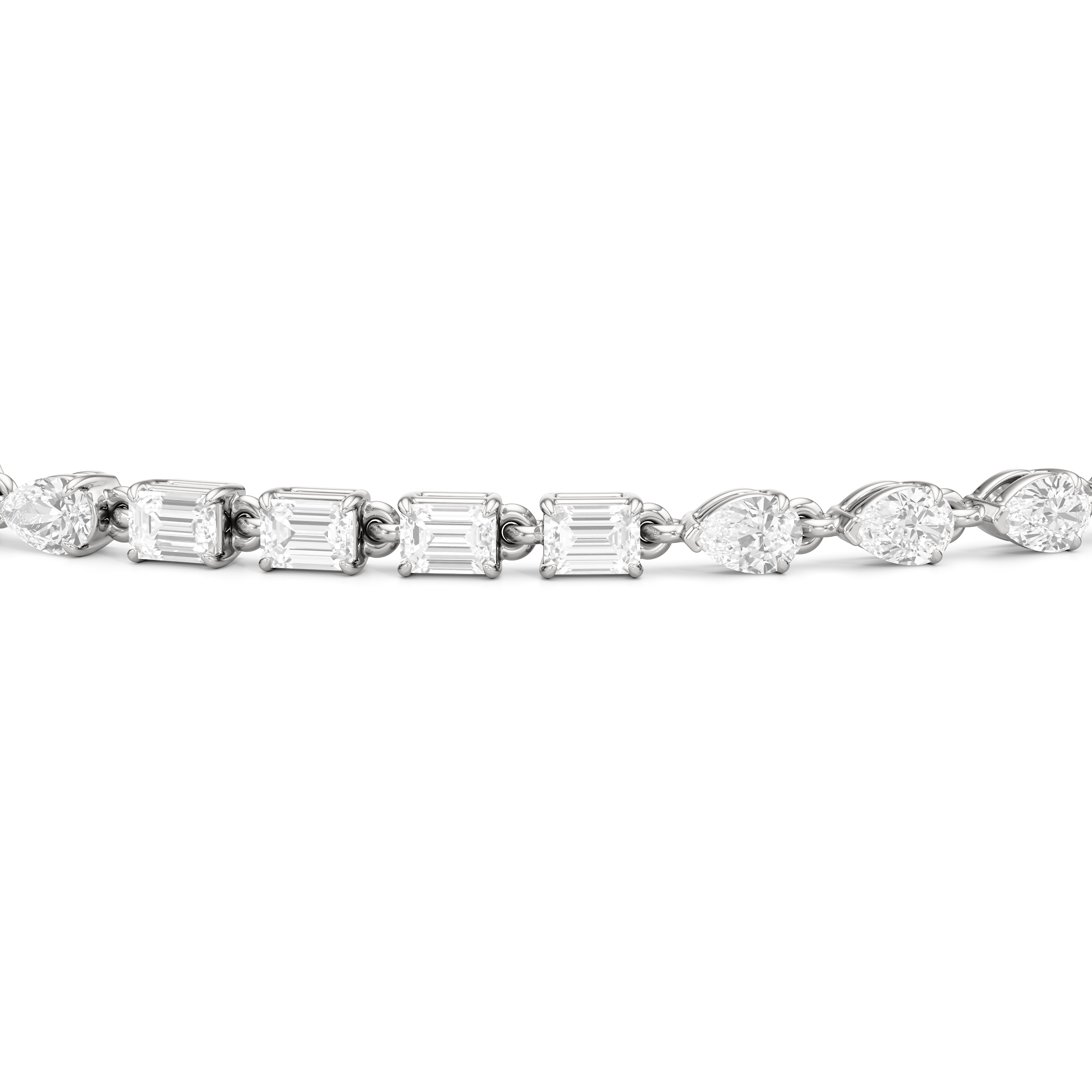 A quietly luxurious tennis bracelet revealing brilliance in fours. This design features emerald-cut and pear-cut diamonds, set four in a row, and arranged in an alternating pattern. Wear it on its own or stack on the glamour by adding your other favorite diamond bracelets.