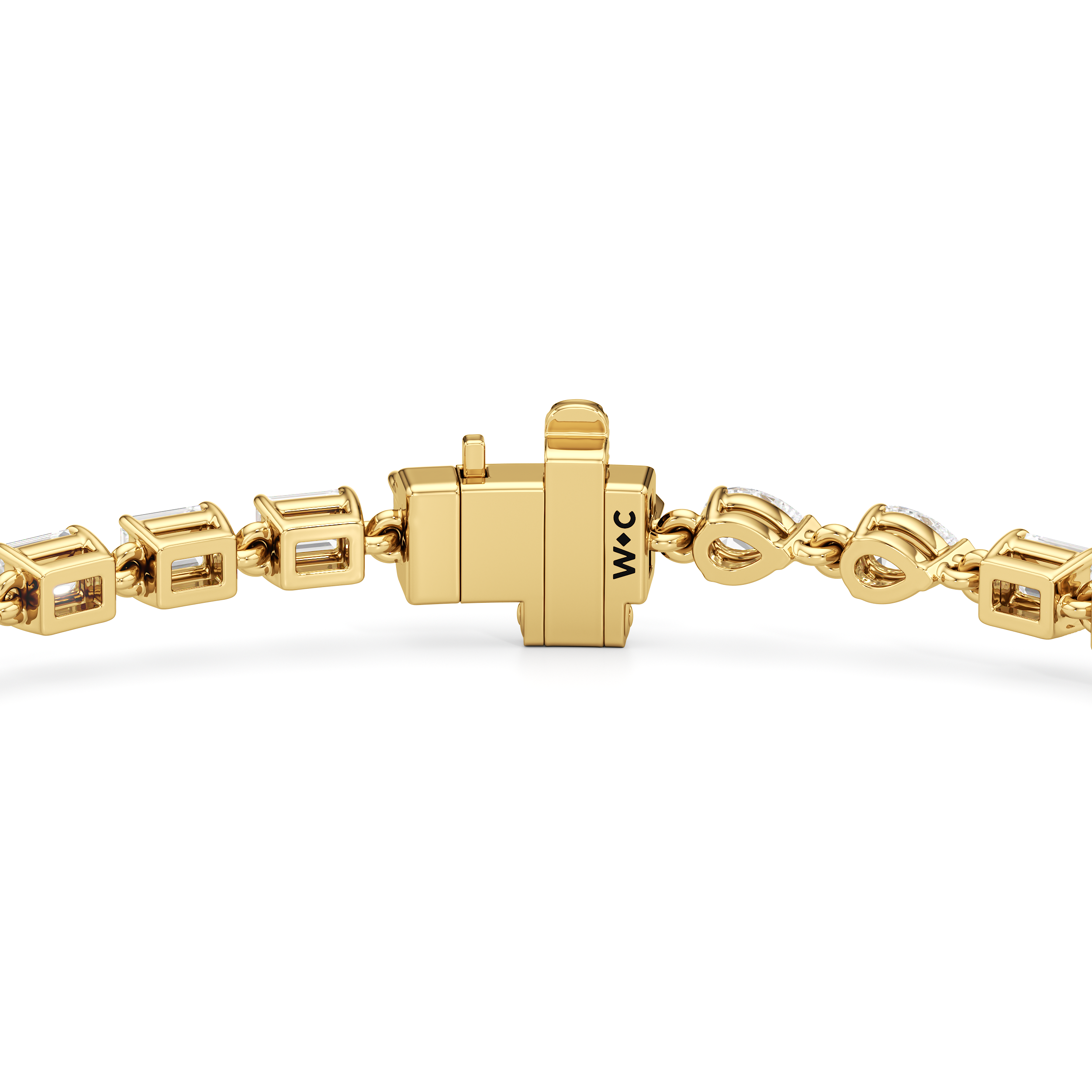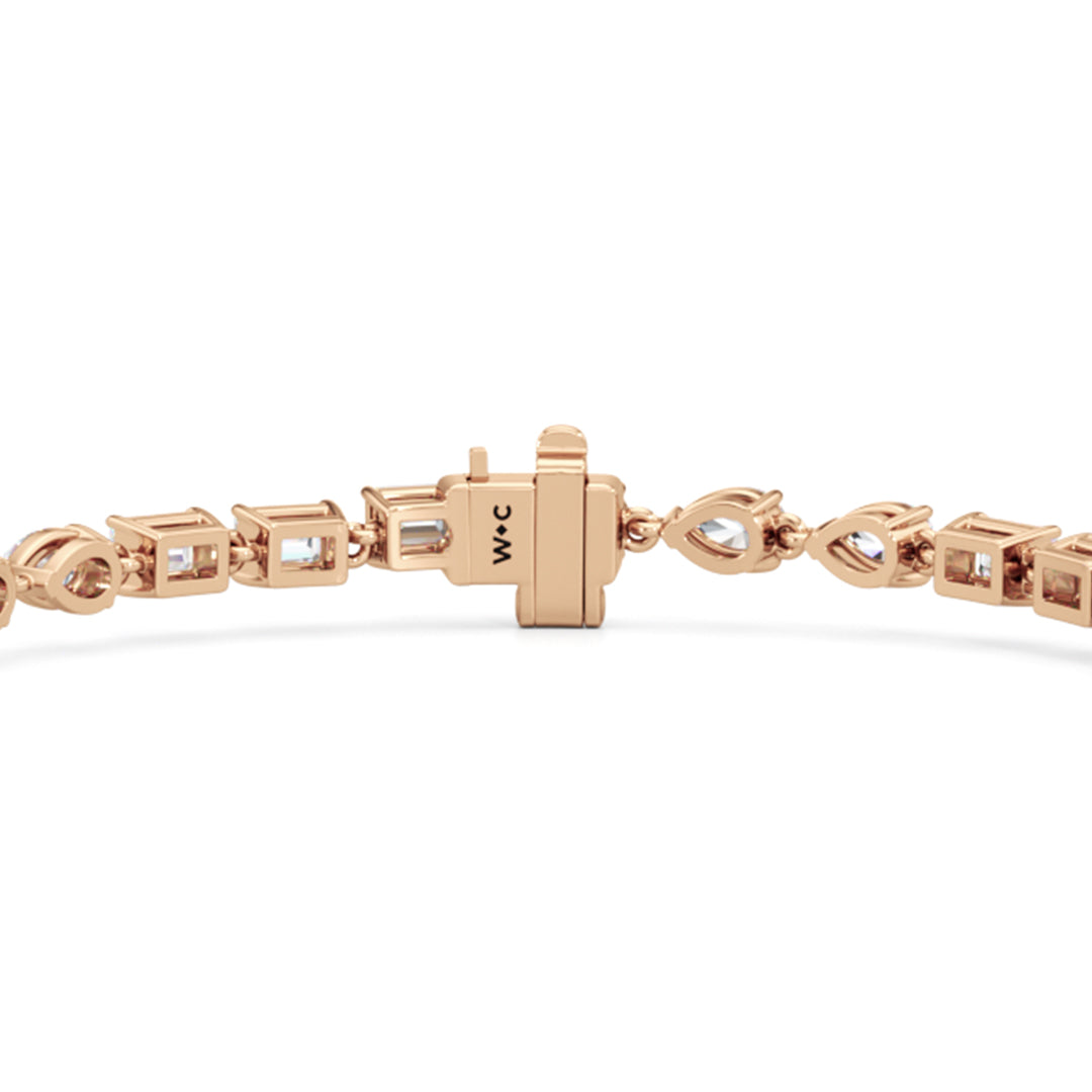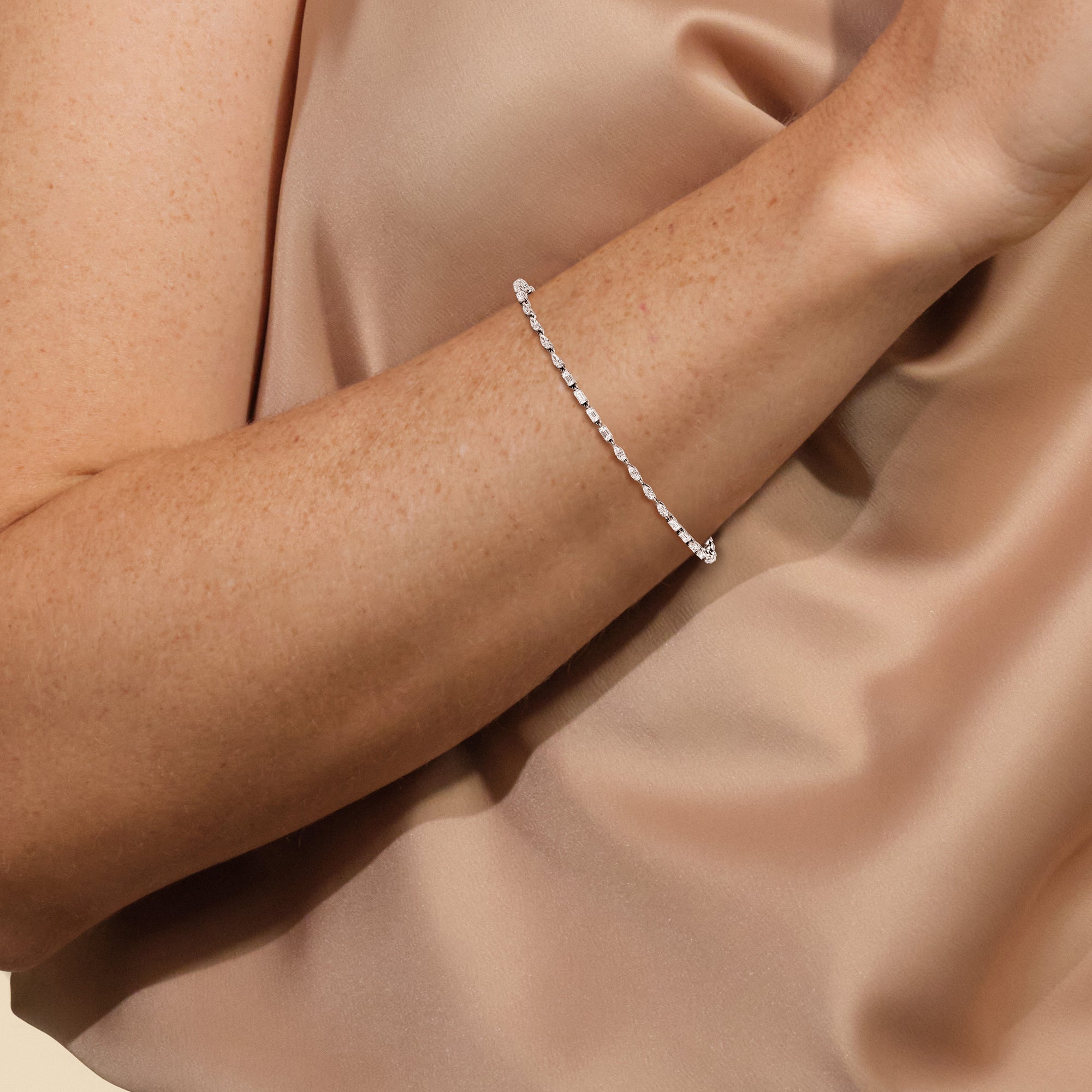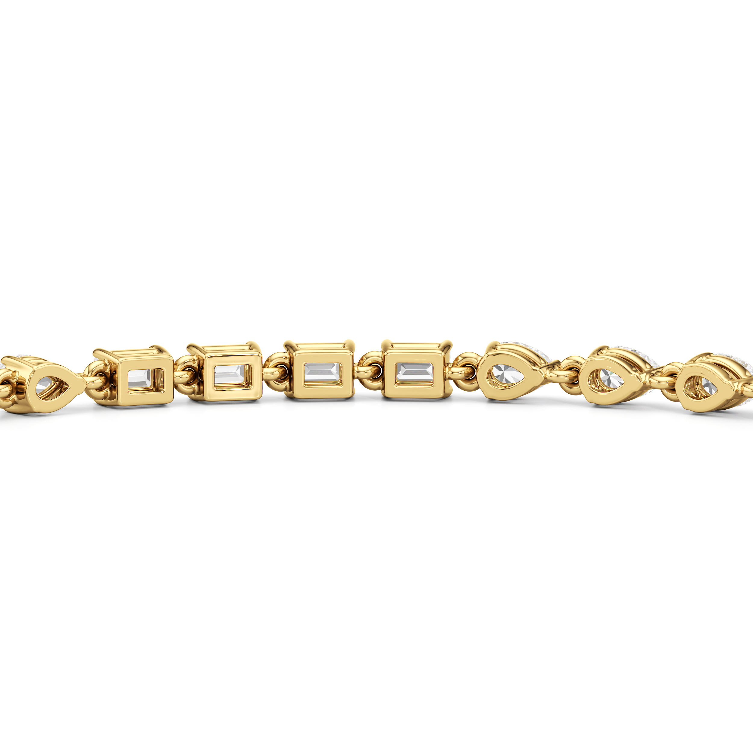 A quietly luxurious tennis bracelet revealing brilliance in fours. This design features emerald-cut and pear-cut diamonds, set four in a row, and arranged in an alternating pattern. Wear it on its own or stack on the glamour by adding your other favorite diamond bracelets.