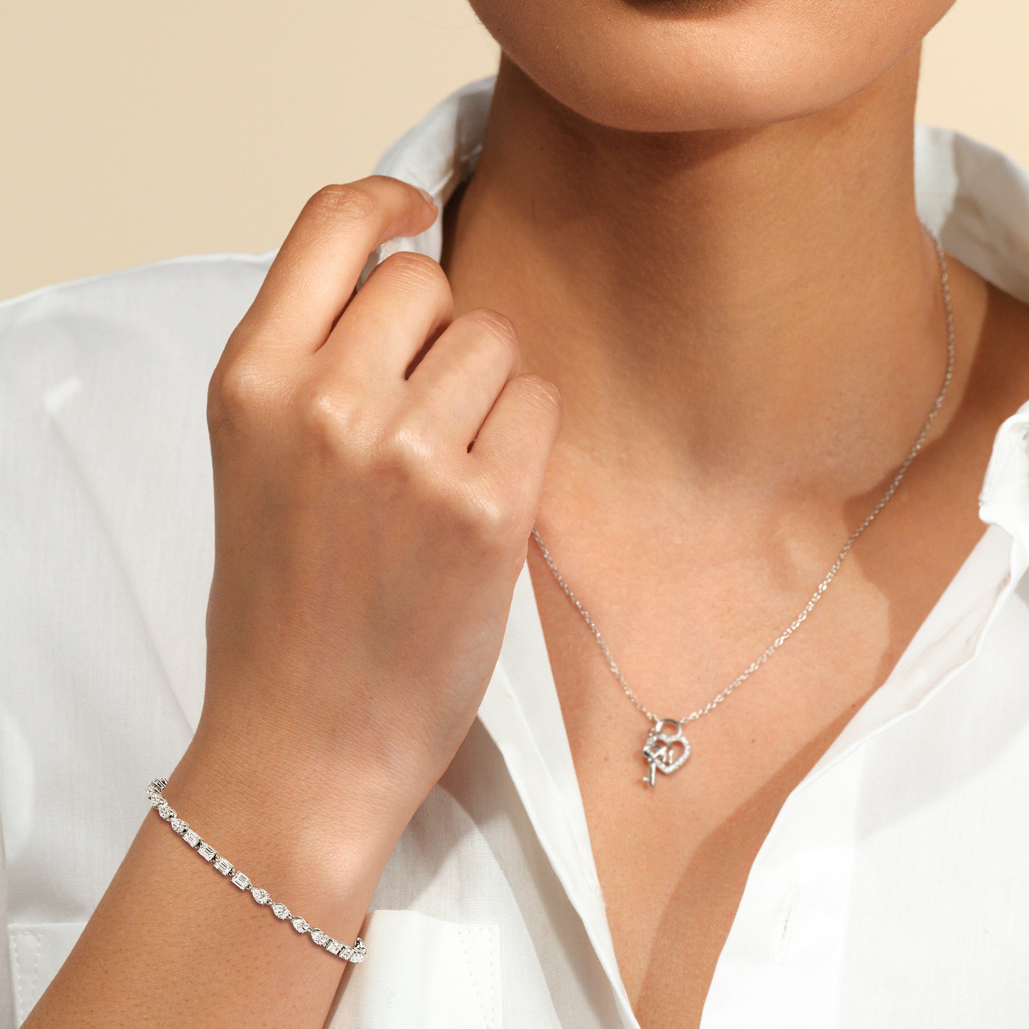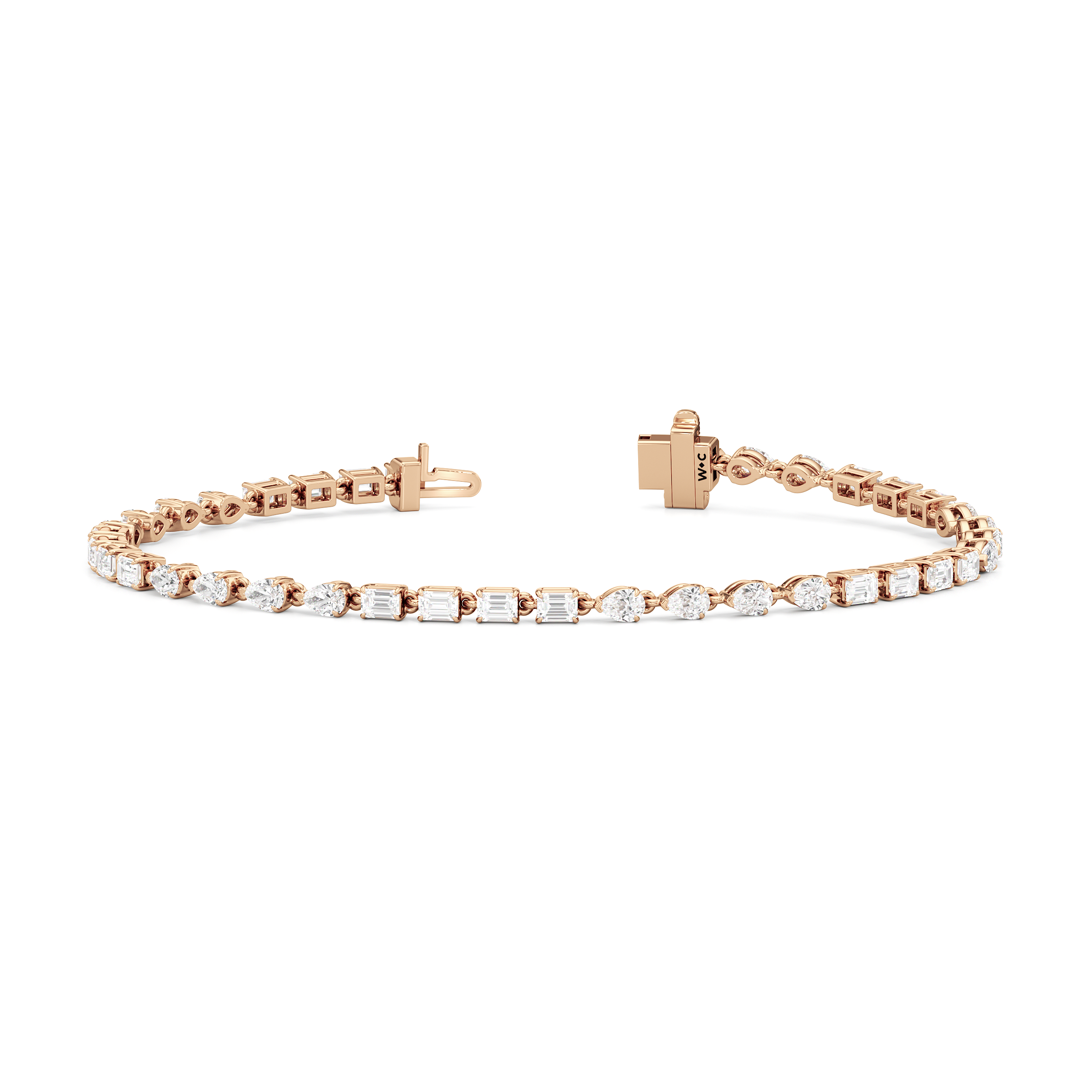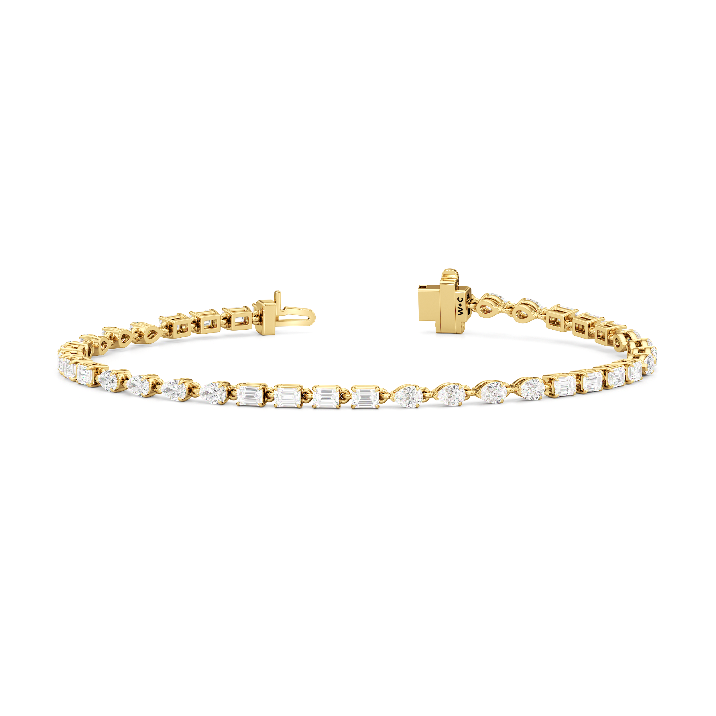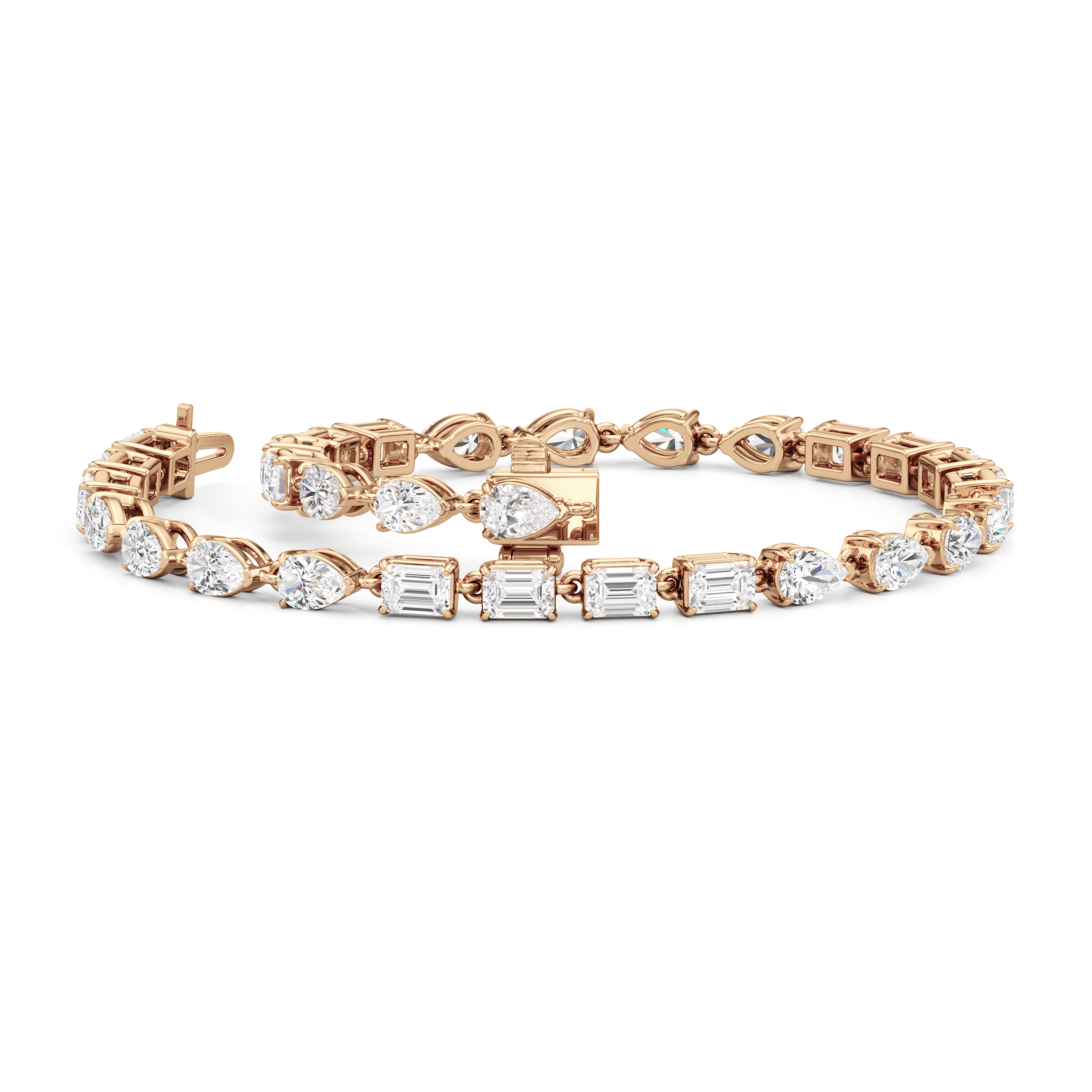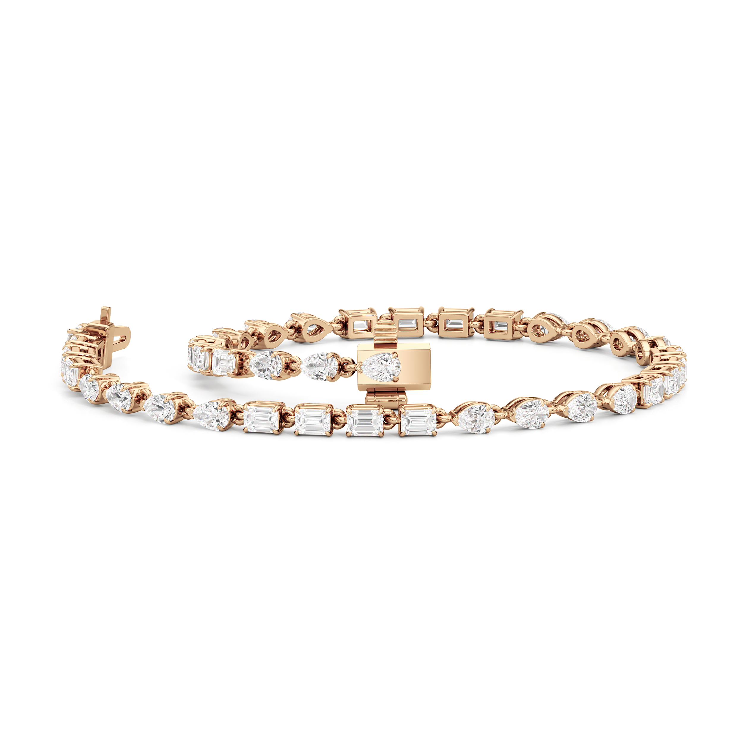 A quietly luxurious tennis bracelet revealing brilliance in fours. This design features emerald-cut and pear-cut diamonds, set four in a row, and arranged in an alternating pattern. Wear it on its own or stack on the glamour by adding your other favorite diamond bracelets.