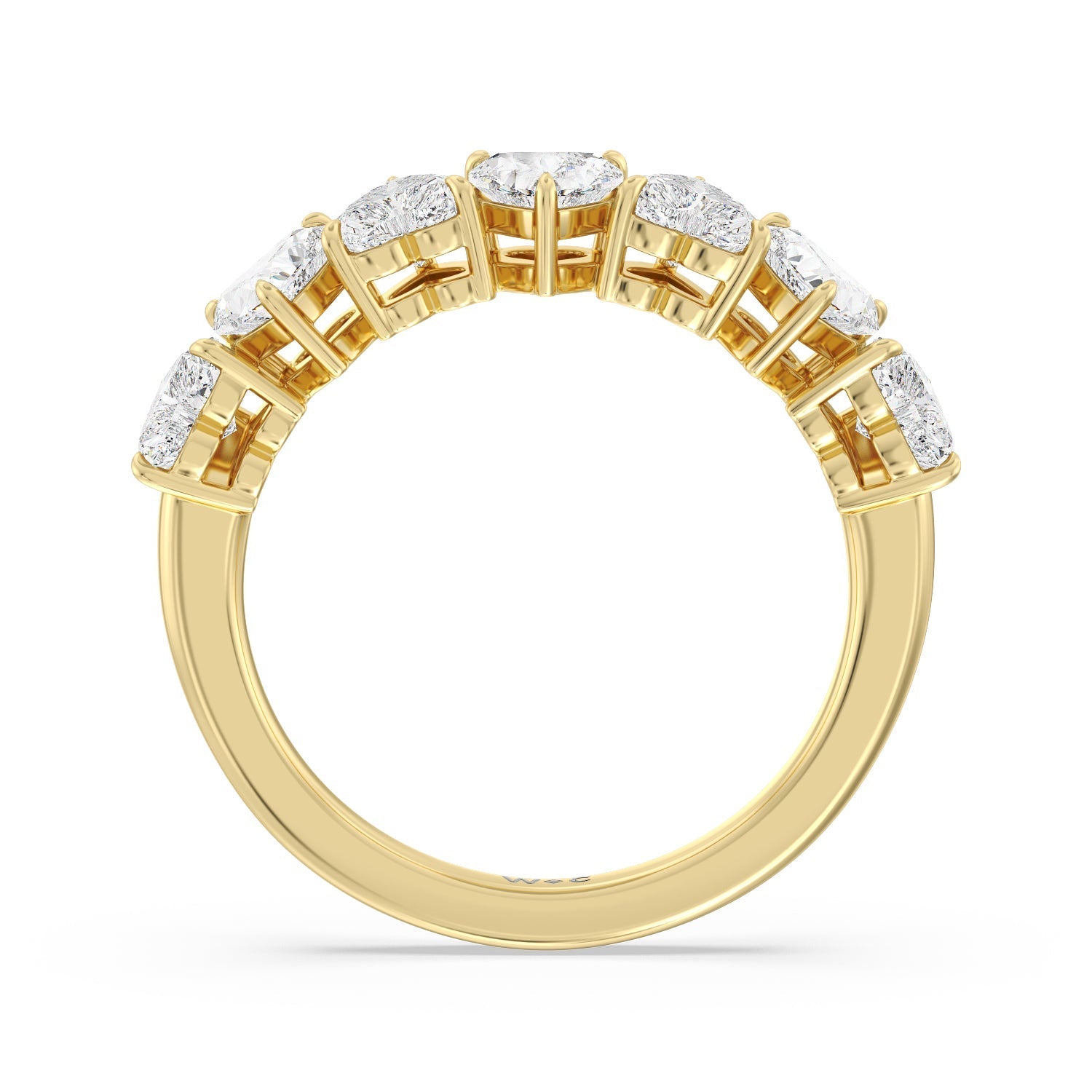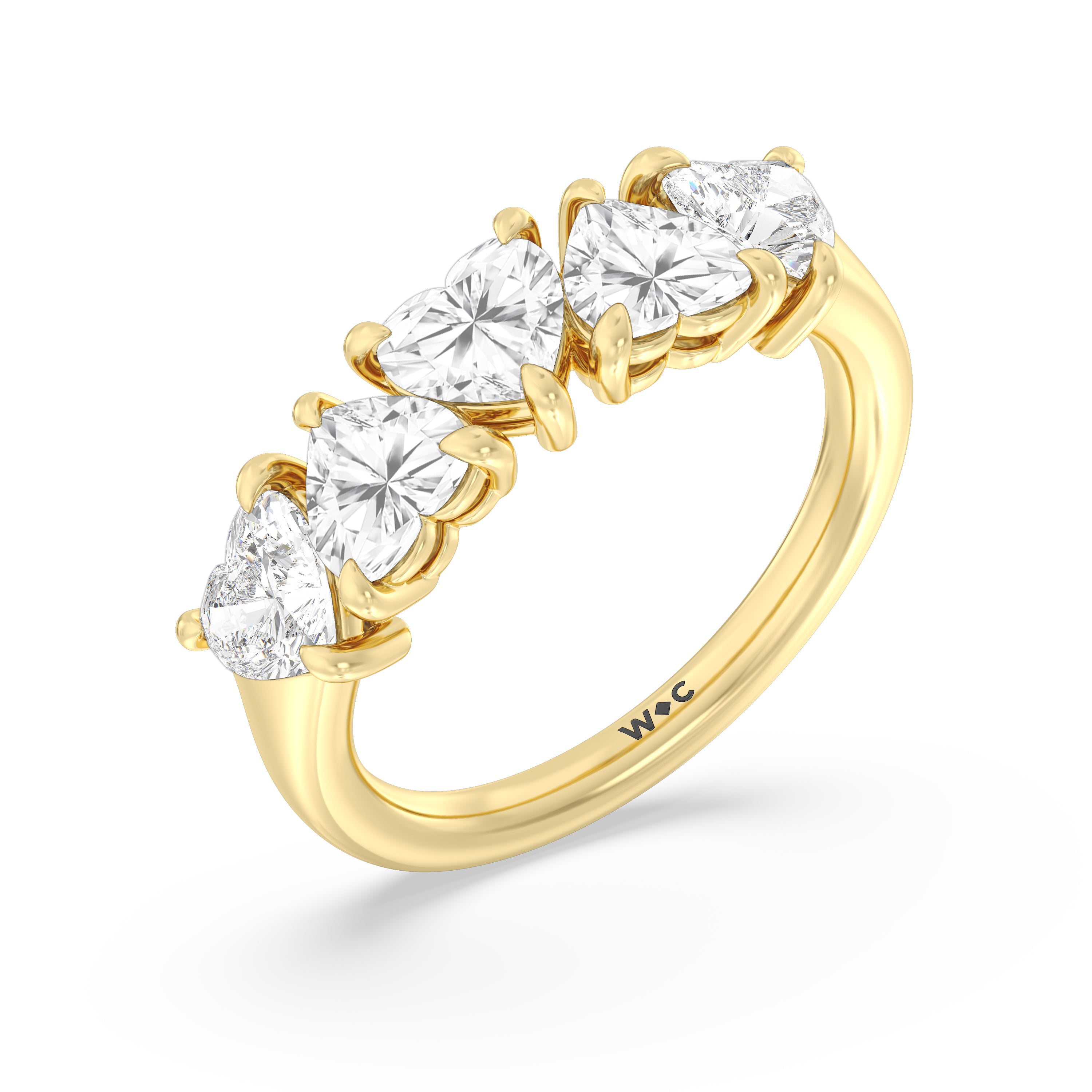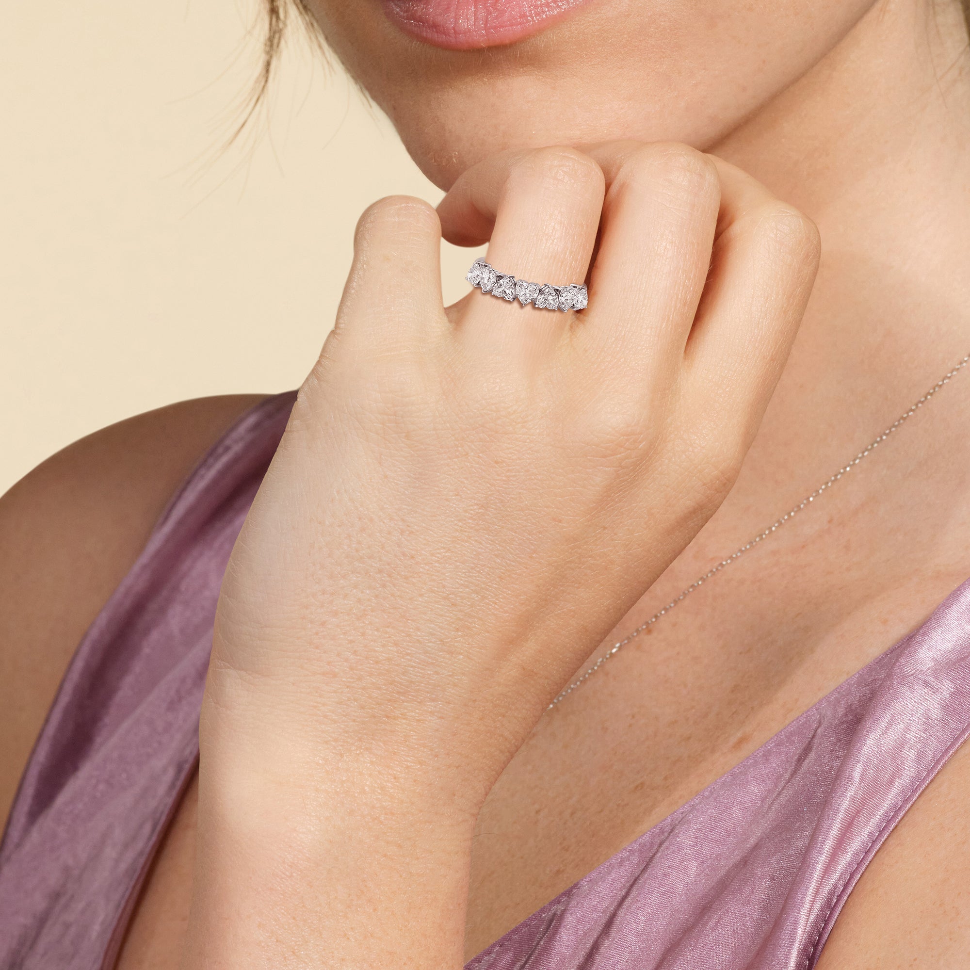 This stunner is the perfect marker of fidelity and commitment. It features a highly polished band that subtly widens towards the top. Seven perfectly cut heart-shaped diamonds bring a sweet sparkle to this symbolic anniversary ring.
