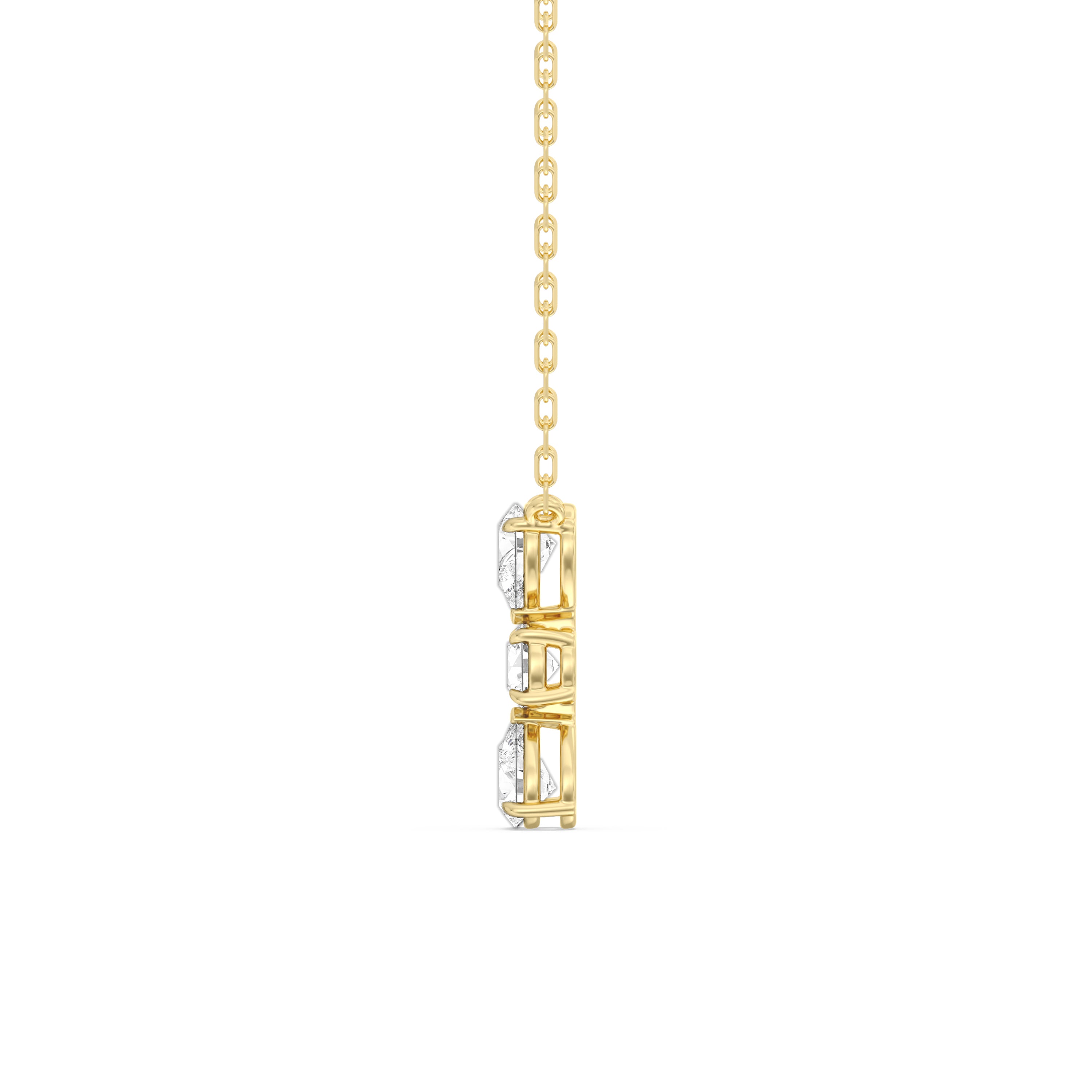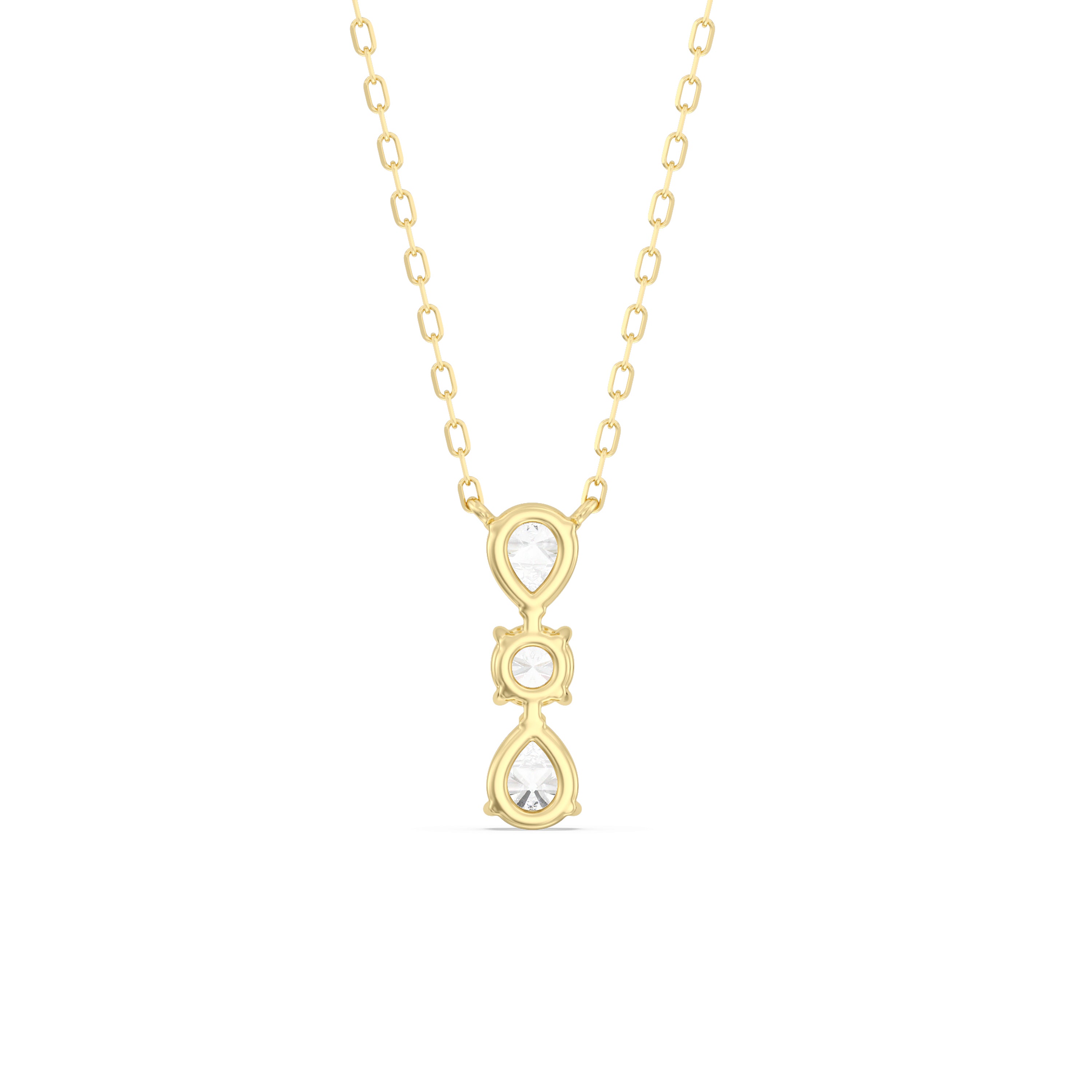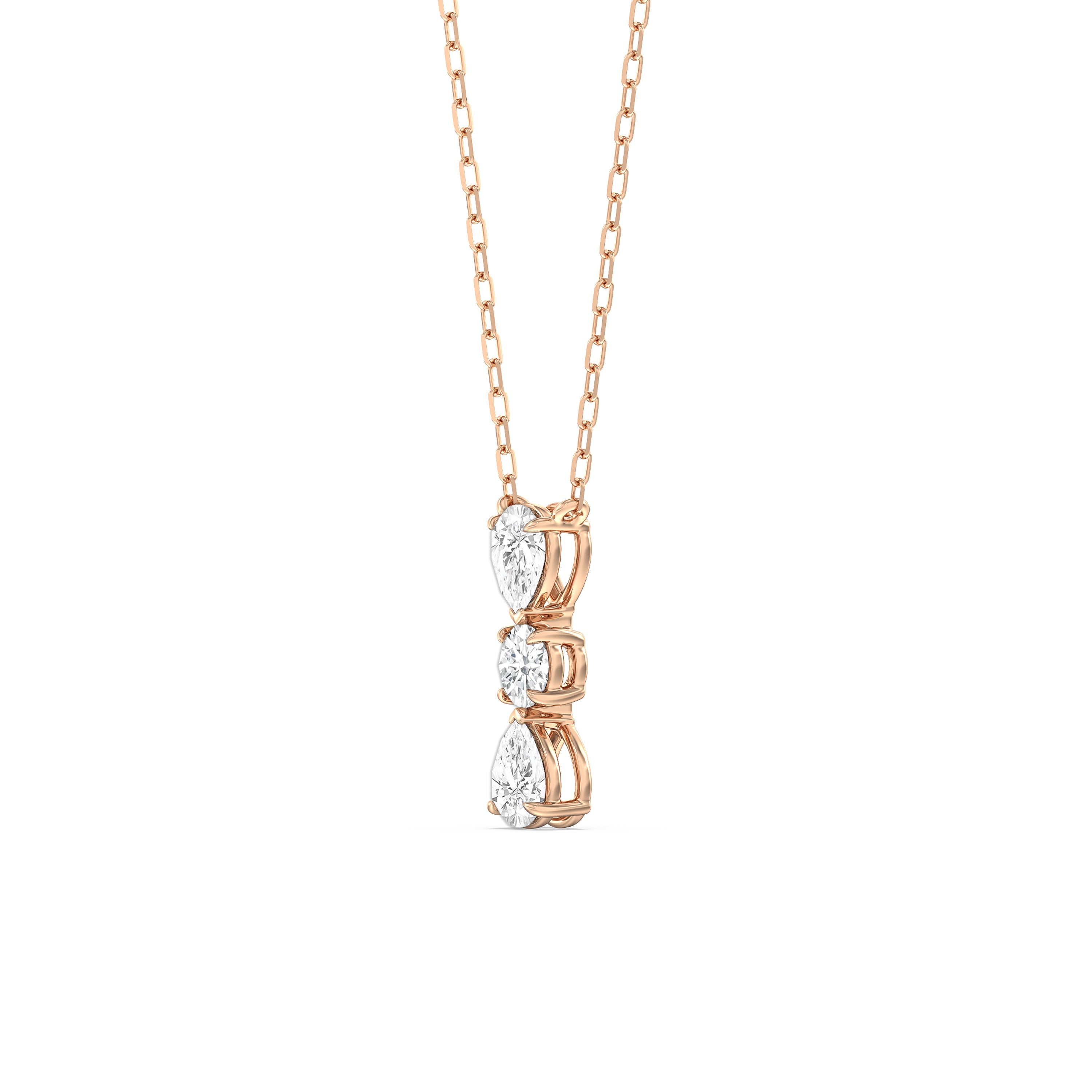 Let everyone know of your refined style through this diamond necklace. It carries three diamonds mounted in a vertical layout, with a 0.2 ct round diamond set in between two 0.25 ct pear diamonds. Its less-is-more design goes beyond fleeting trends, making this necklace a timeless sparkler that will endure for a long time.