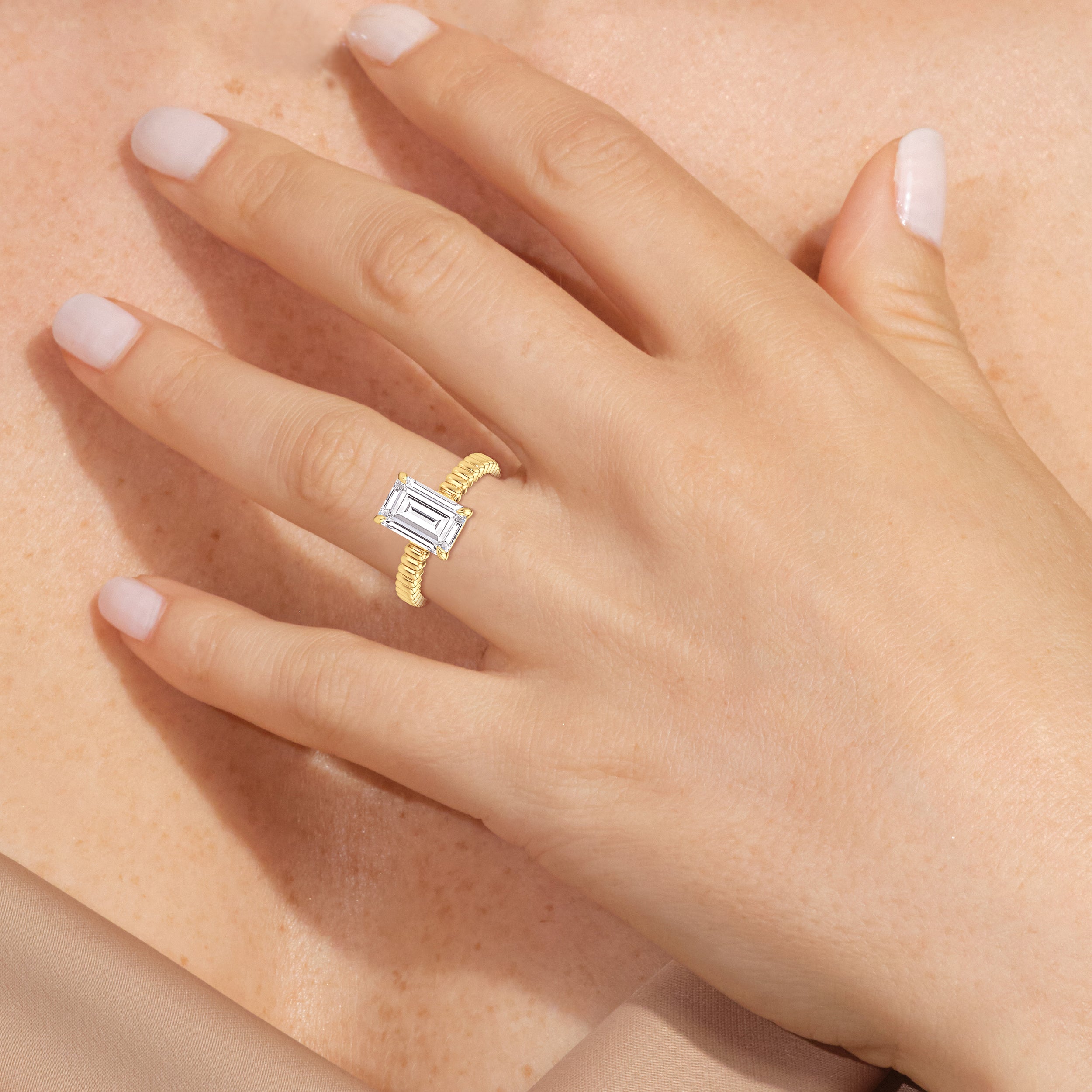 Solrae is no ordinary solitaire. Capsule-like ridges form a full circle, making up the band but still keeping it wearable and smooth. A diamond rises above it all, displaying the perfect balance between modern edge and timeless brilliance.