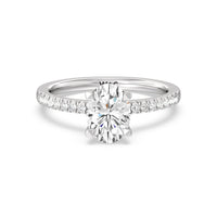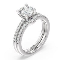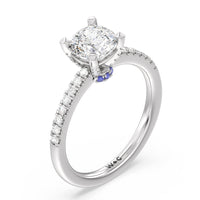 The highlight of the engagement ring is the diamond studded prongs inspired by the spires of the Veronica flower.