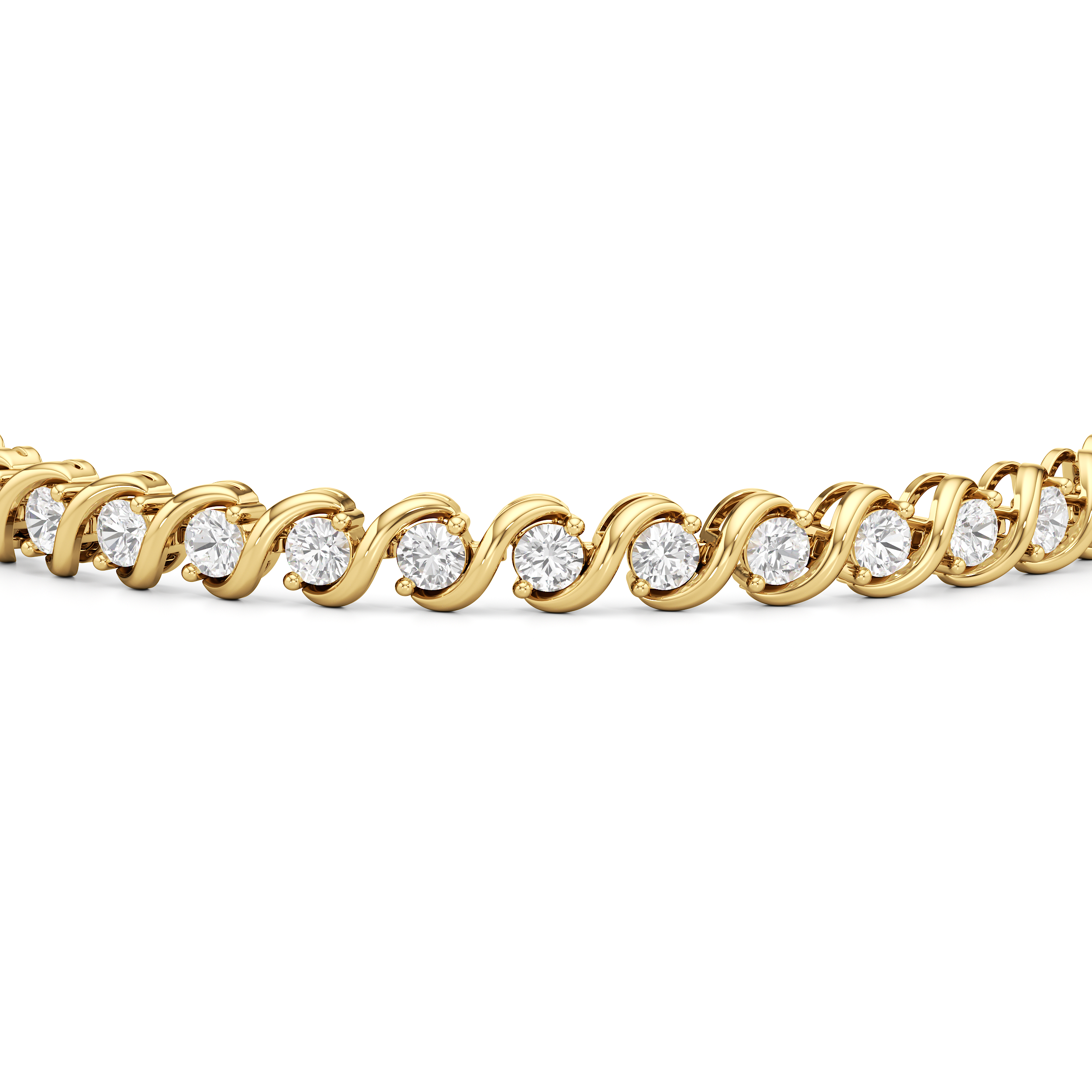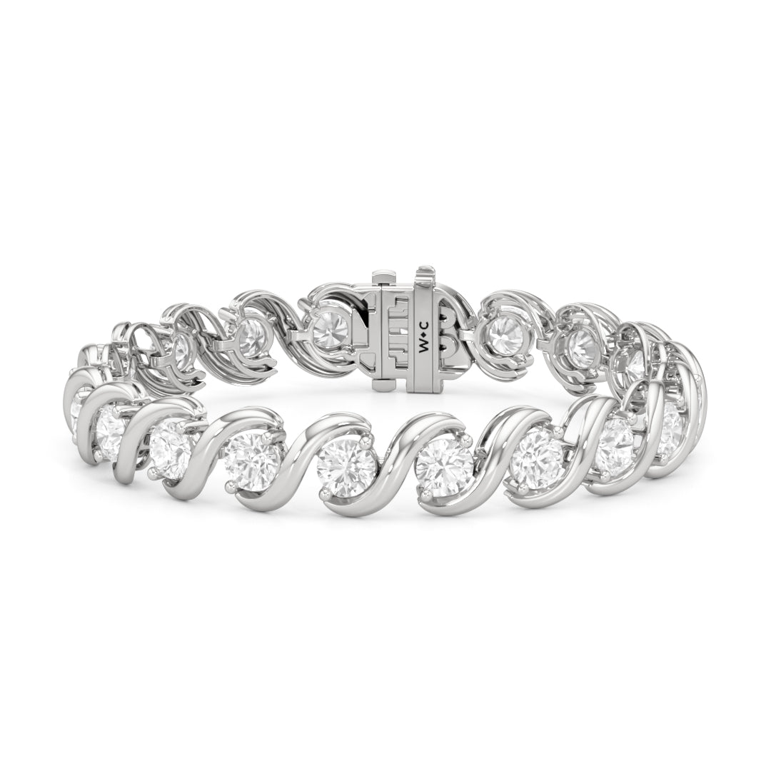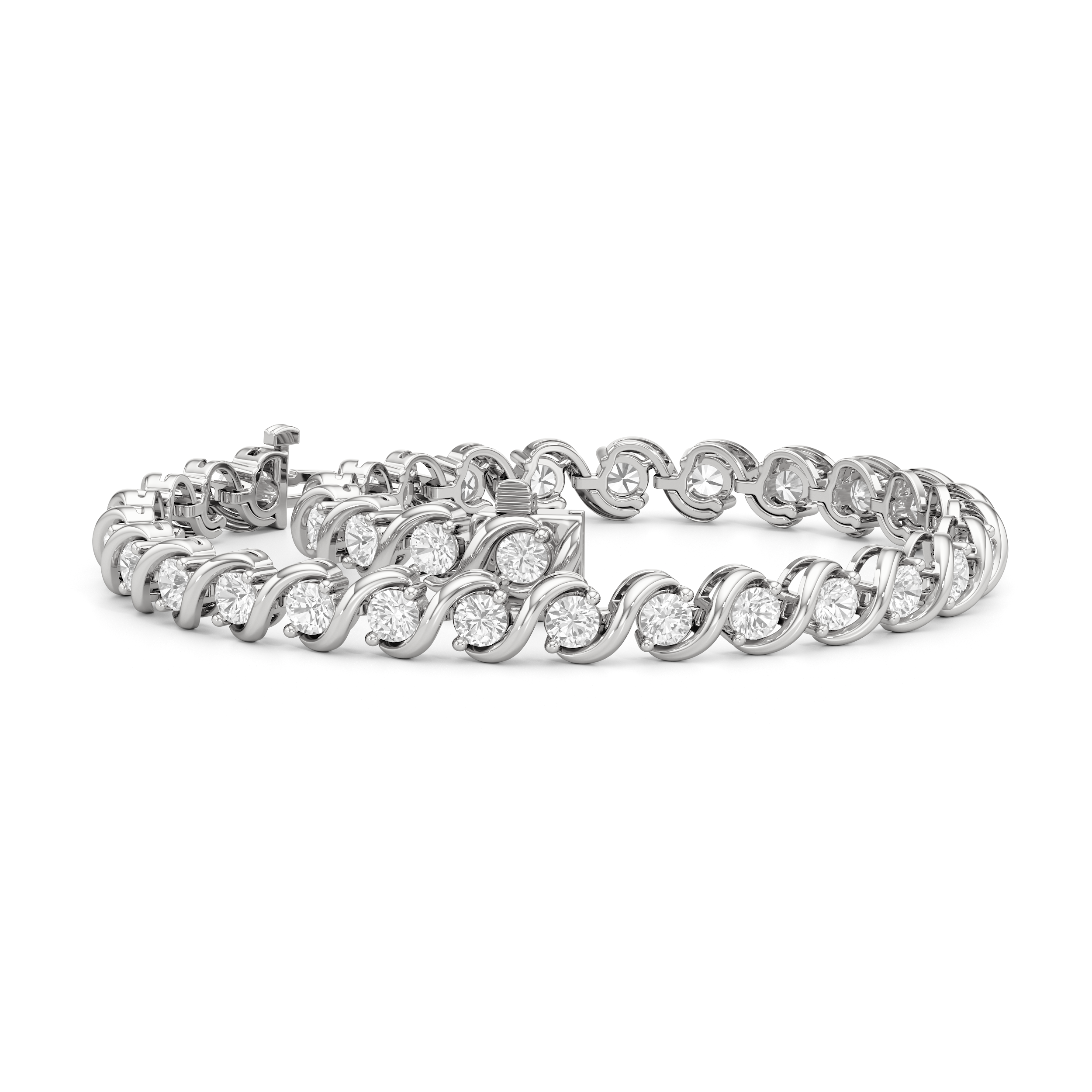 Elevate your daily ensemble with this S-shaped tennis bracelet. This diamond bracelet's design adds a unique touch to your jewelry collection. The coiled structure is intertwined with diamonds, making for a graceful addition to your wrist that can be worn either stacked or as a standlone statement.