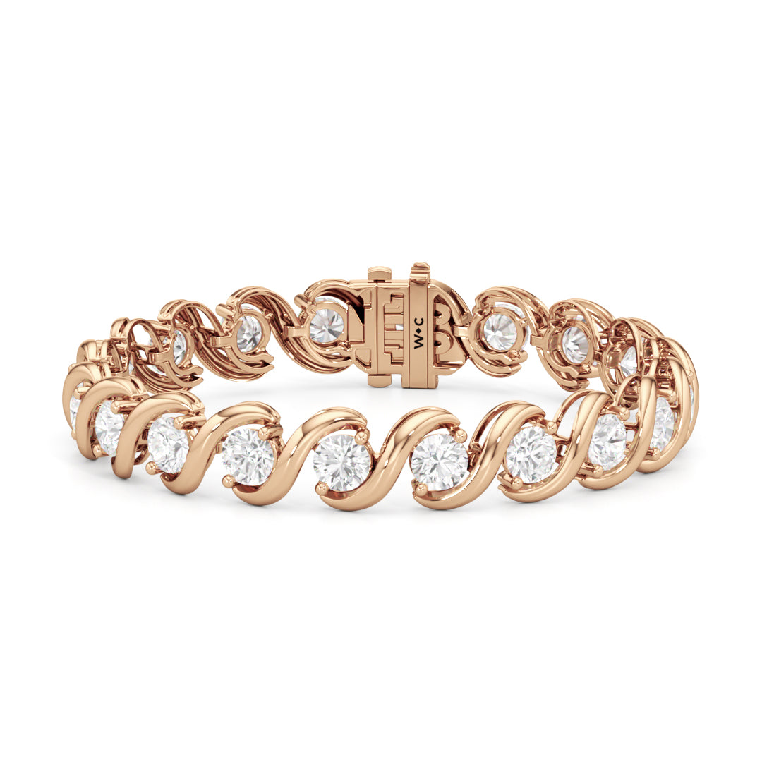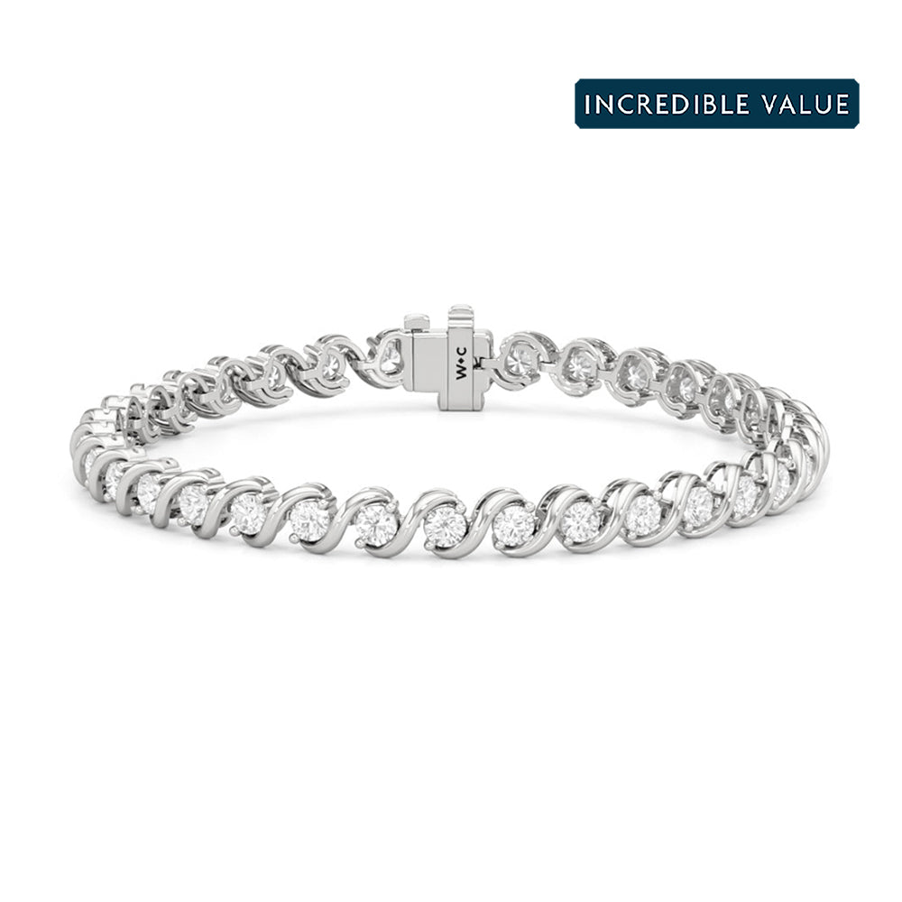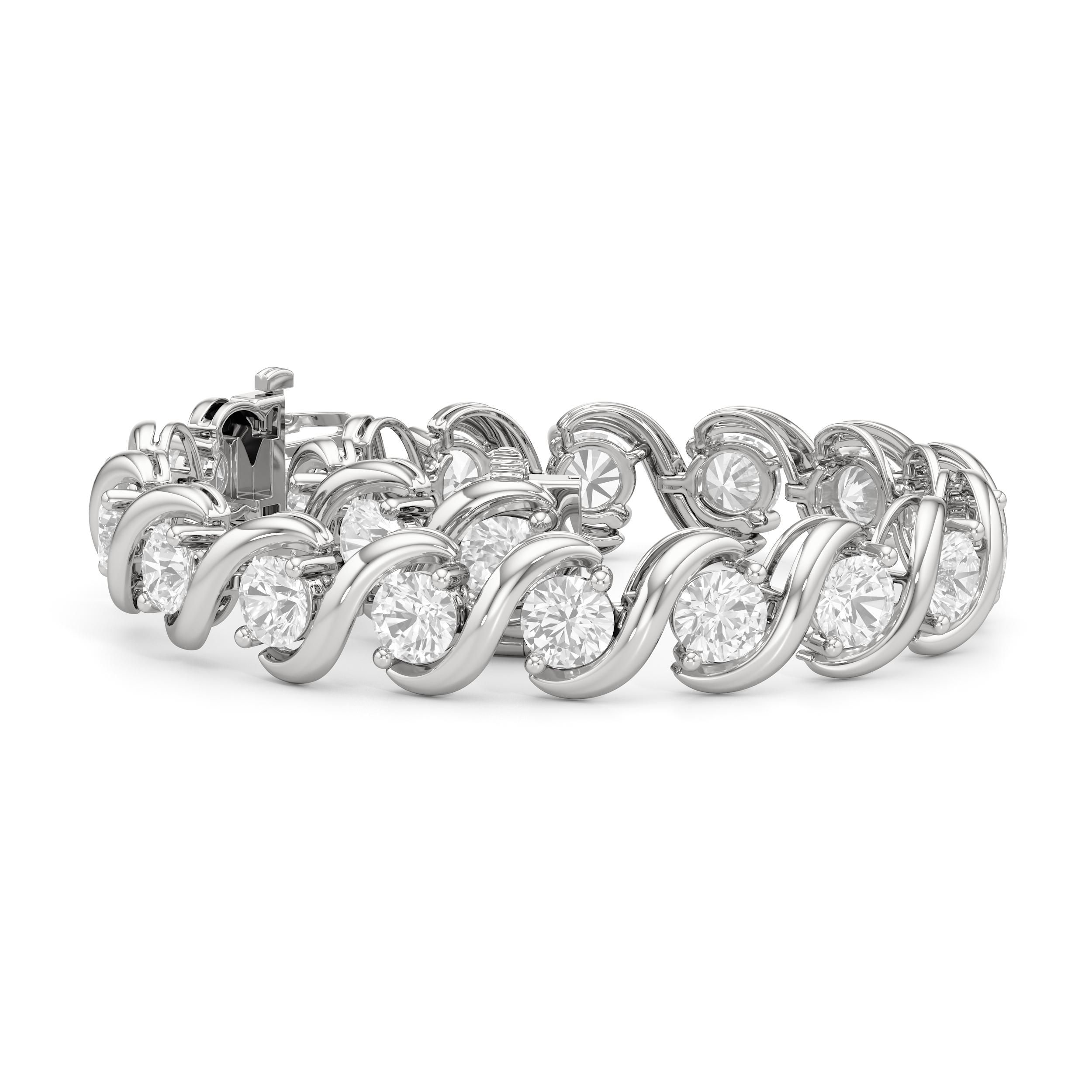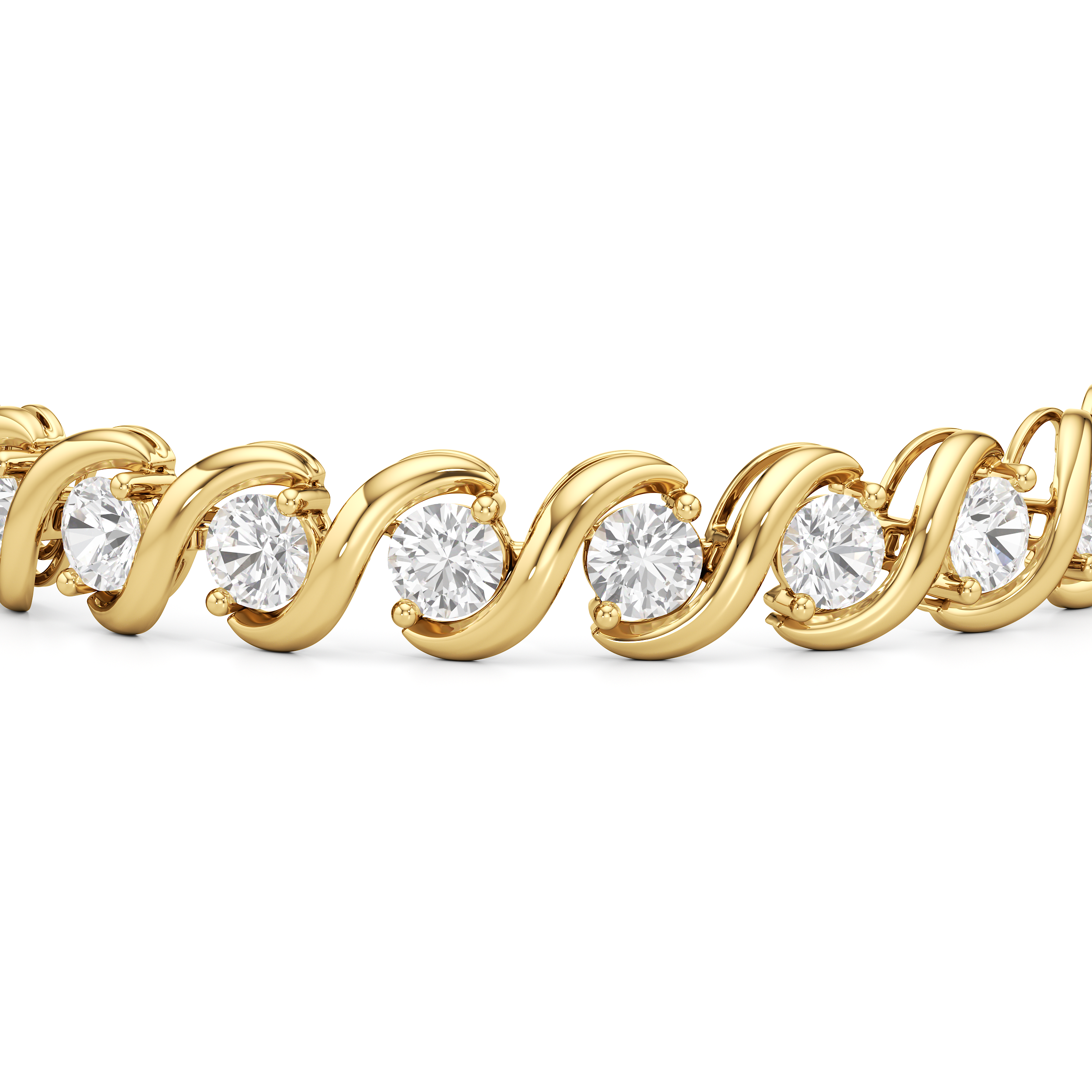 Elevate your daily ensemble with this S-shaped tennis bracelet. This diamond bracelet's design adds a unique touch to your jewelry collection. The coiled structure is intertwined with diamonds, making for a graceful addition to your wrist that can be worn either stacked or as a standlone statement.