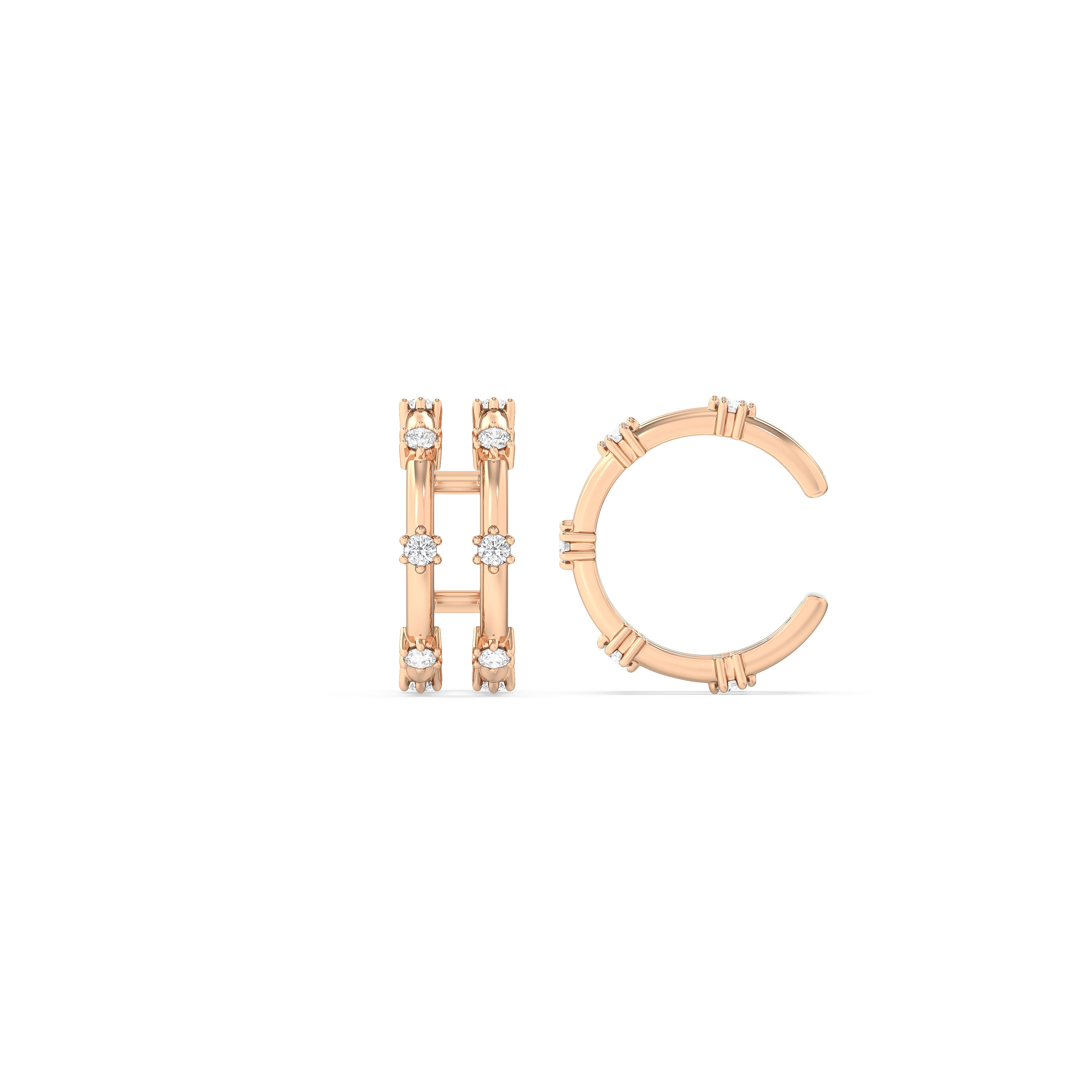 Double the diamonds to complete your look. These ear cuffs are elegantly minimalist with precision and brilliance in perfect harmony. The design features a split hoop detailed with diamonds set on stations.