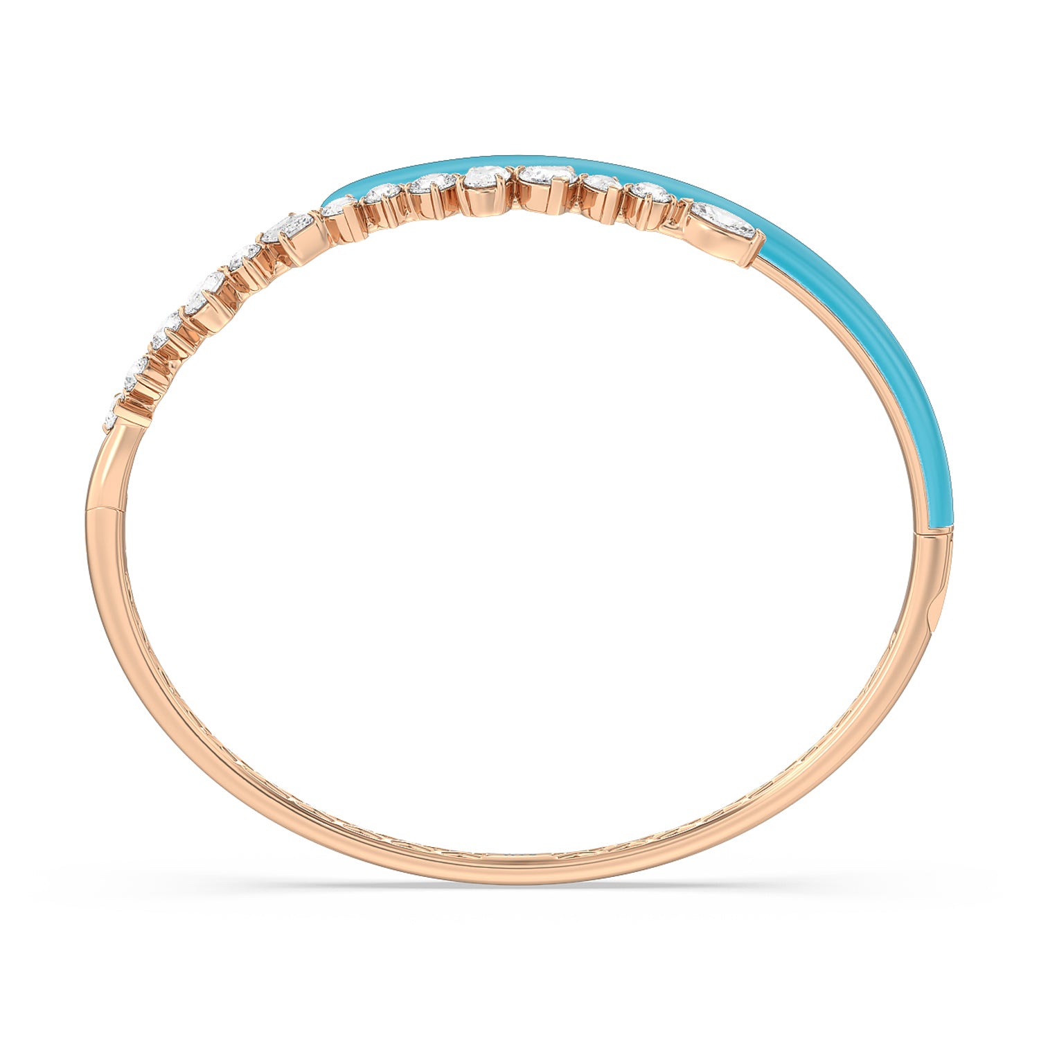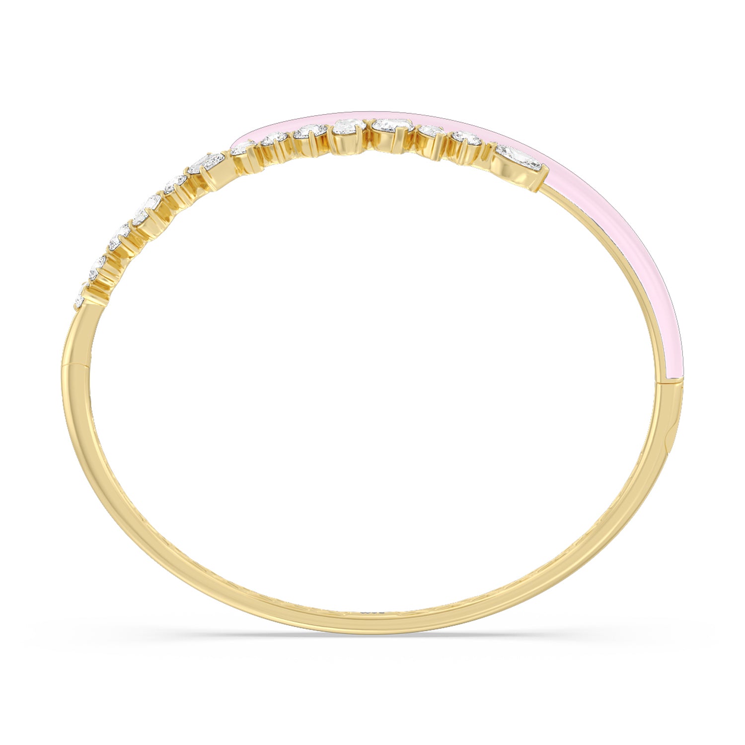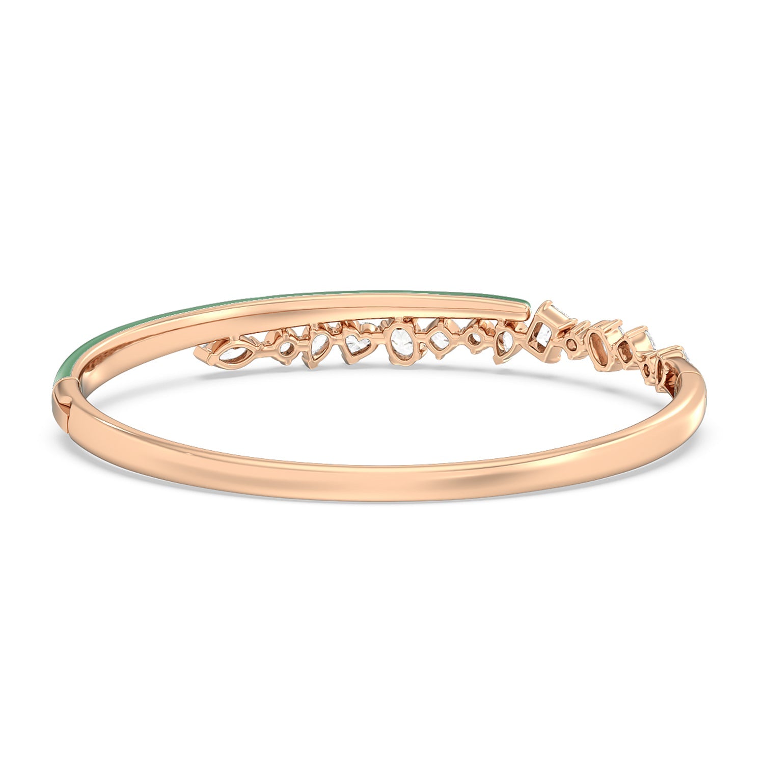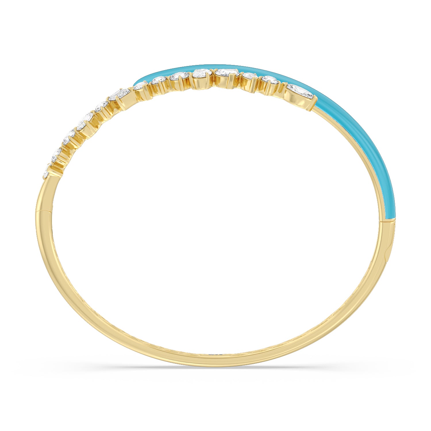 The perfect addition to your daily ensemble. This wrist accessory features a sparkly side and a colorful side, impressively fusing whimsy and luxury. The bangle's striking ceramic portion is complemented by a pattern of round, marquise, cushion, pear, heart, oval, and emerald-cut diamonds that are elegantly lined on shared prongs. This ceramic bangle features a hinged closure.