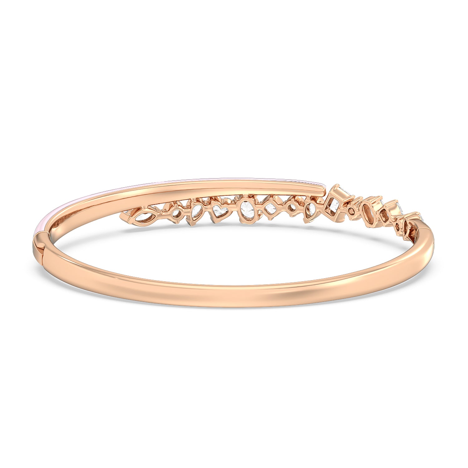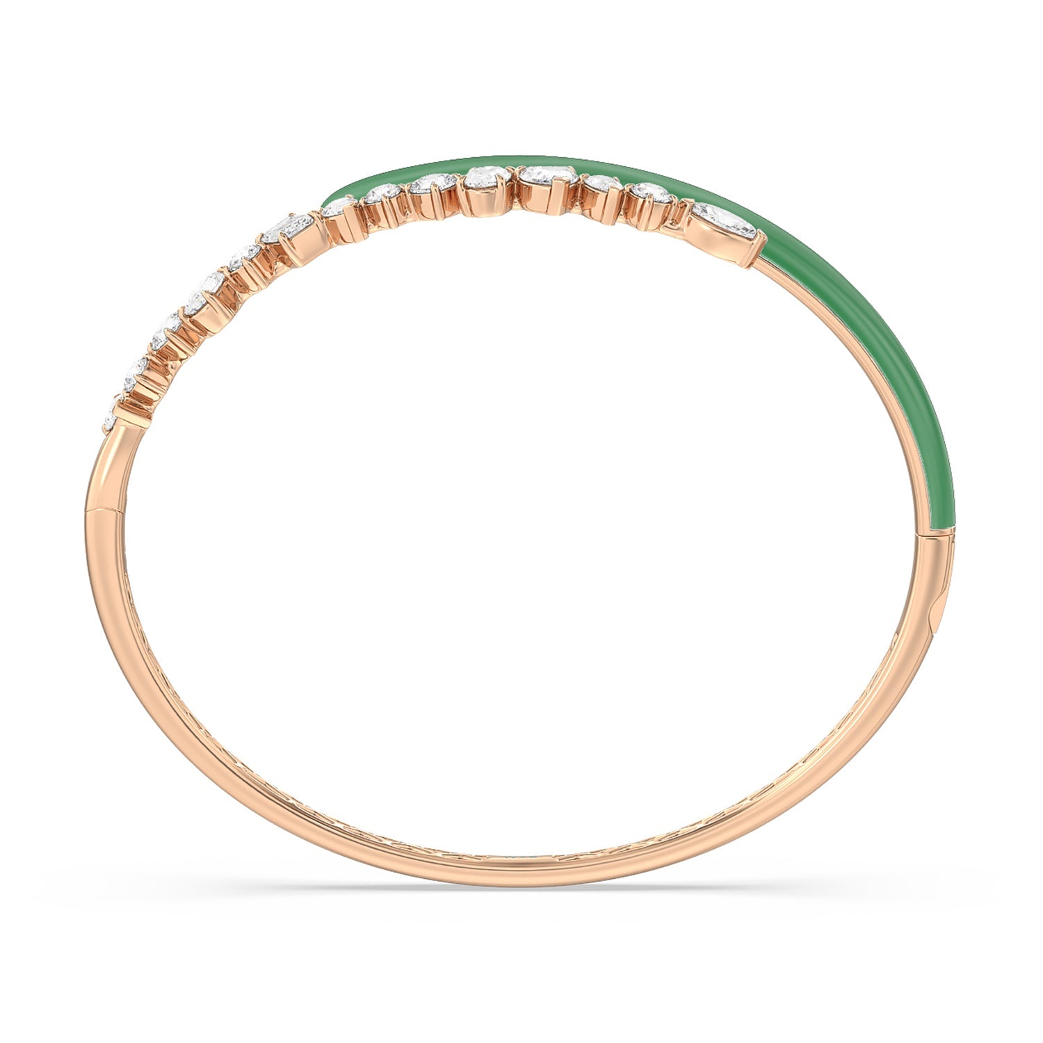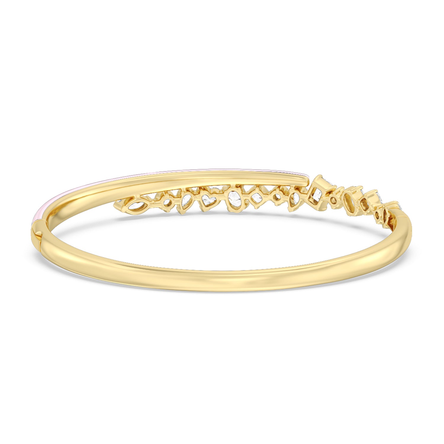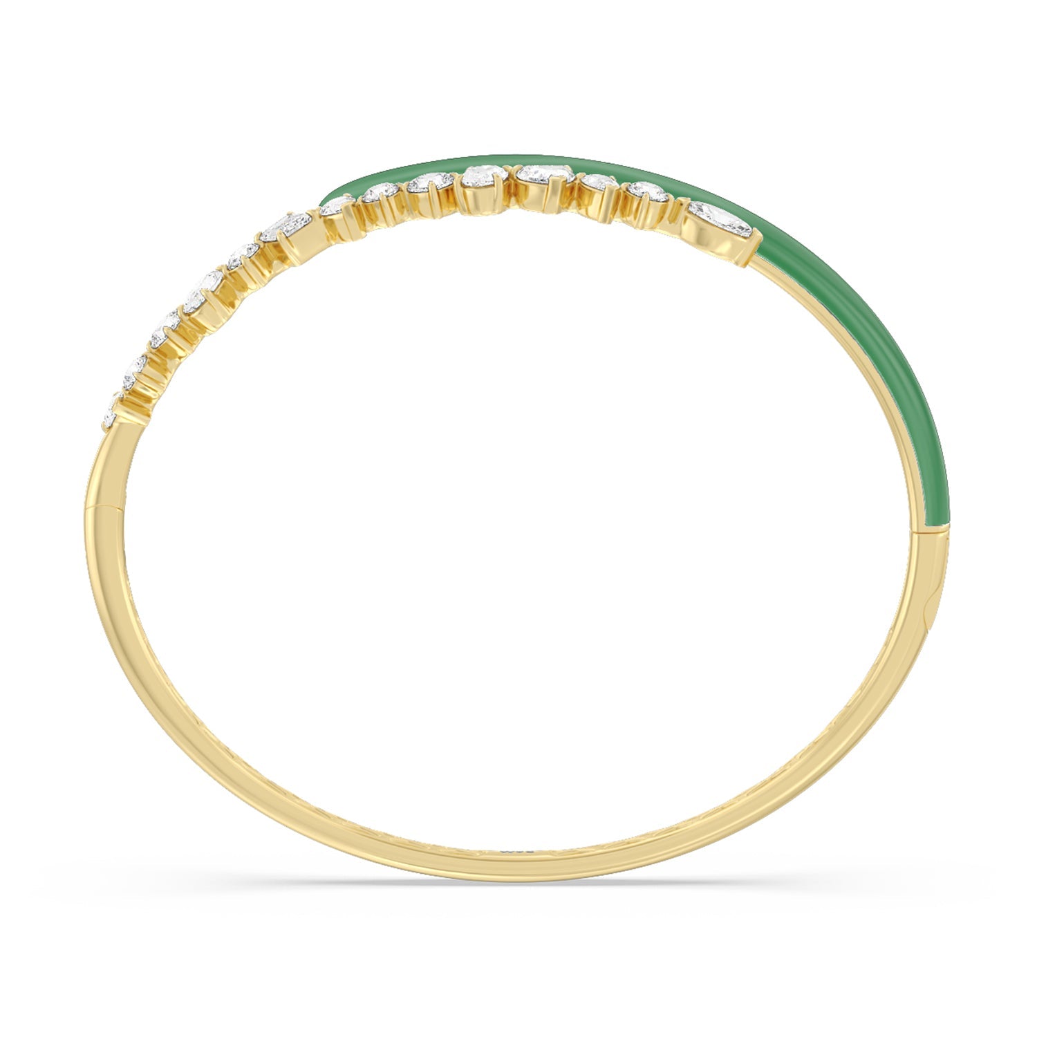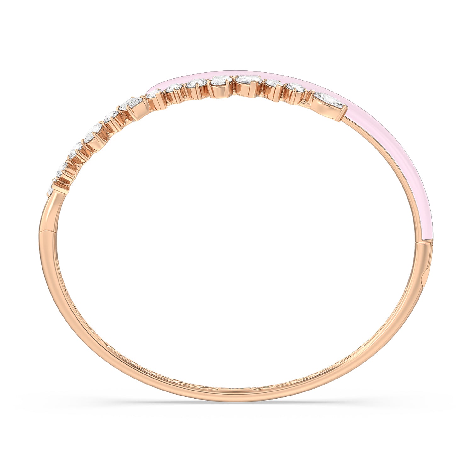 The perfect addition to your daily ensemble. This wrist accessory features a sparkly side and a colorful side, impressively fusing whimsy and luxury. The bangle's striking ceramic portion is complemented by a pattern of round, marquise, cushion, pear, heart, oval, and emerald-cut diamonds that are elegantly lined on shared prongs. This ceramic bangle features a hinged closure.