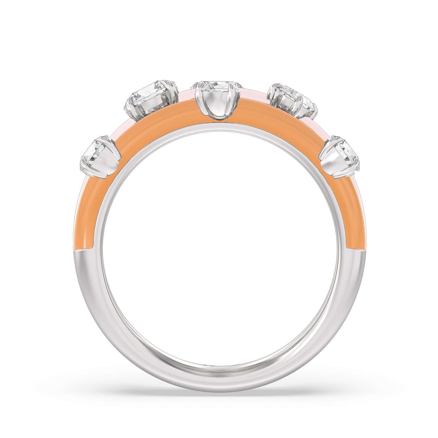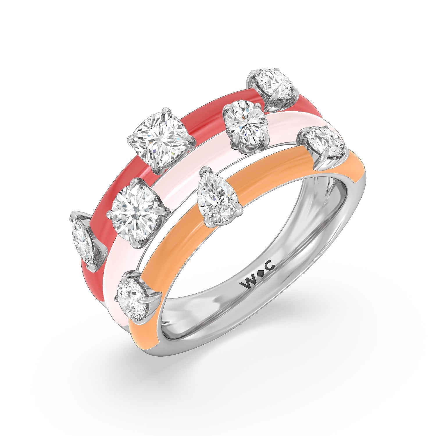 Both fashion forward and effortlessly intriguing. This ring features a triple-band design with a ceramic finish. Diamonds of varying cuts adorn the brightly colored top half of the band.