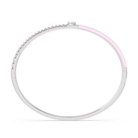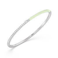 Light and buttery, this bangle makes for the perfect stacking piece to mix and match. It features a row of round diamonds ending with a pear-cut diamond to separate the ceramic color. Effortlessly chic, this bangle enhances any ensemble with its subtle pop of color.