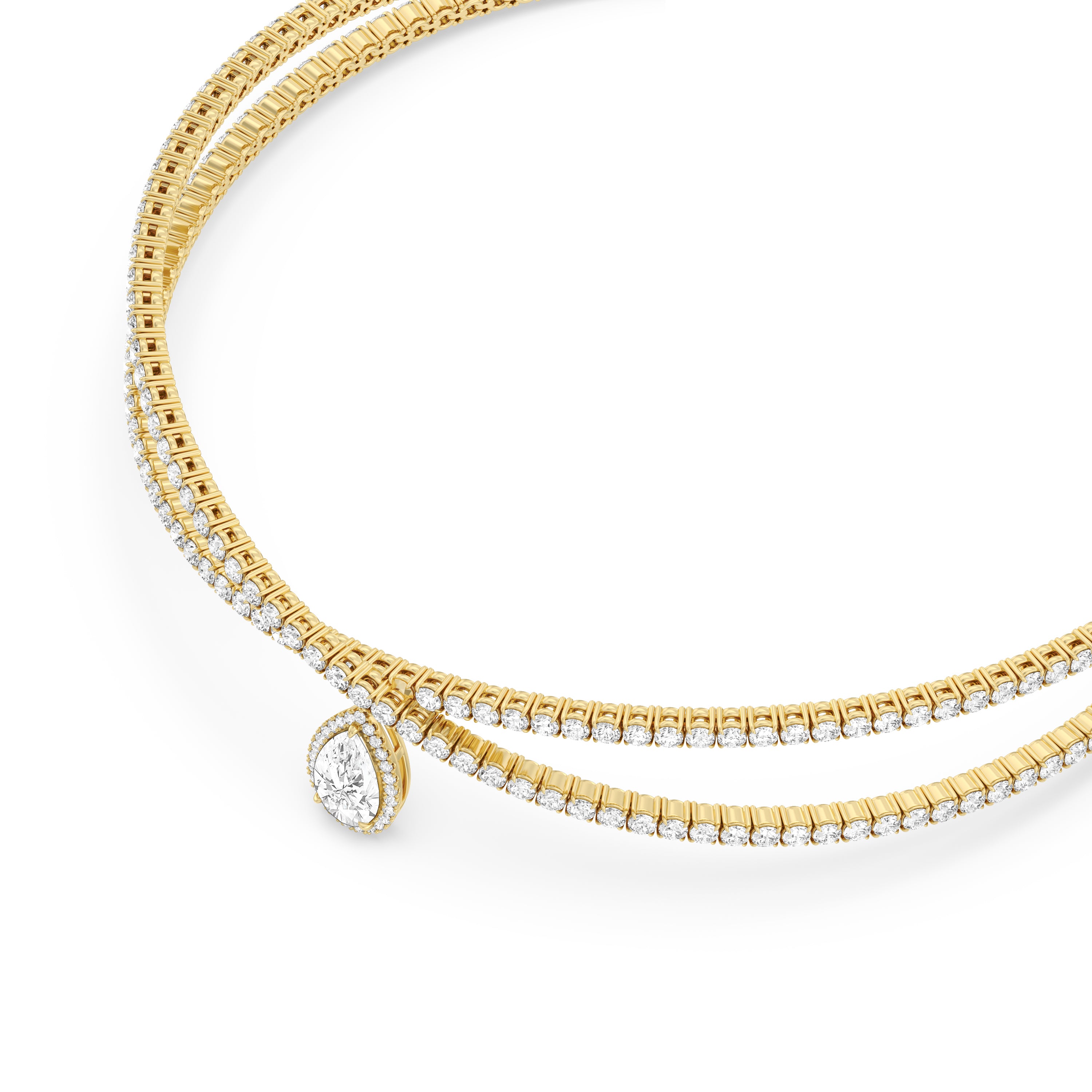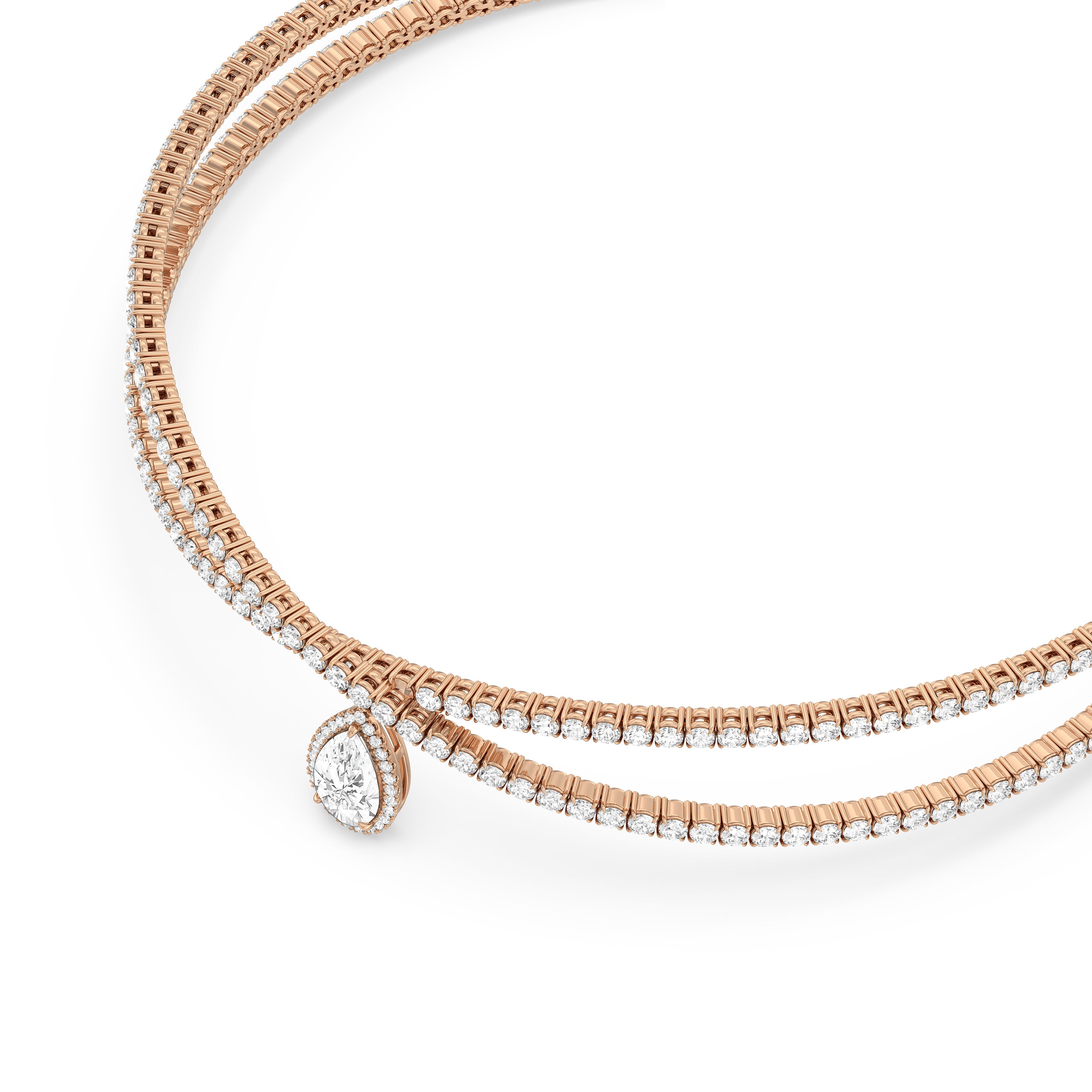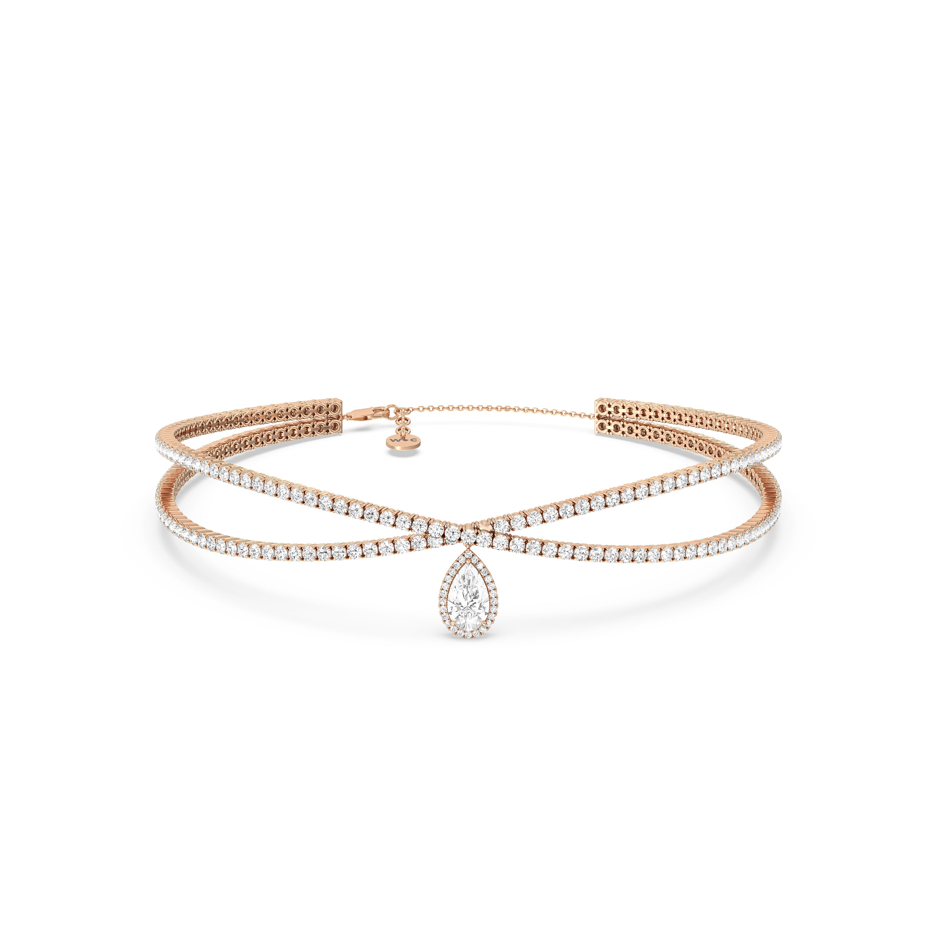 The Teardrop Crossover Diamond Choker Necklace is an exquisite piece of jewelry that exudes elegance and sophistication. Crafted with meticulous attention to detail, this necklace features a unique design that captivates the eye.