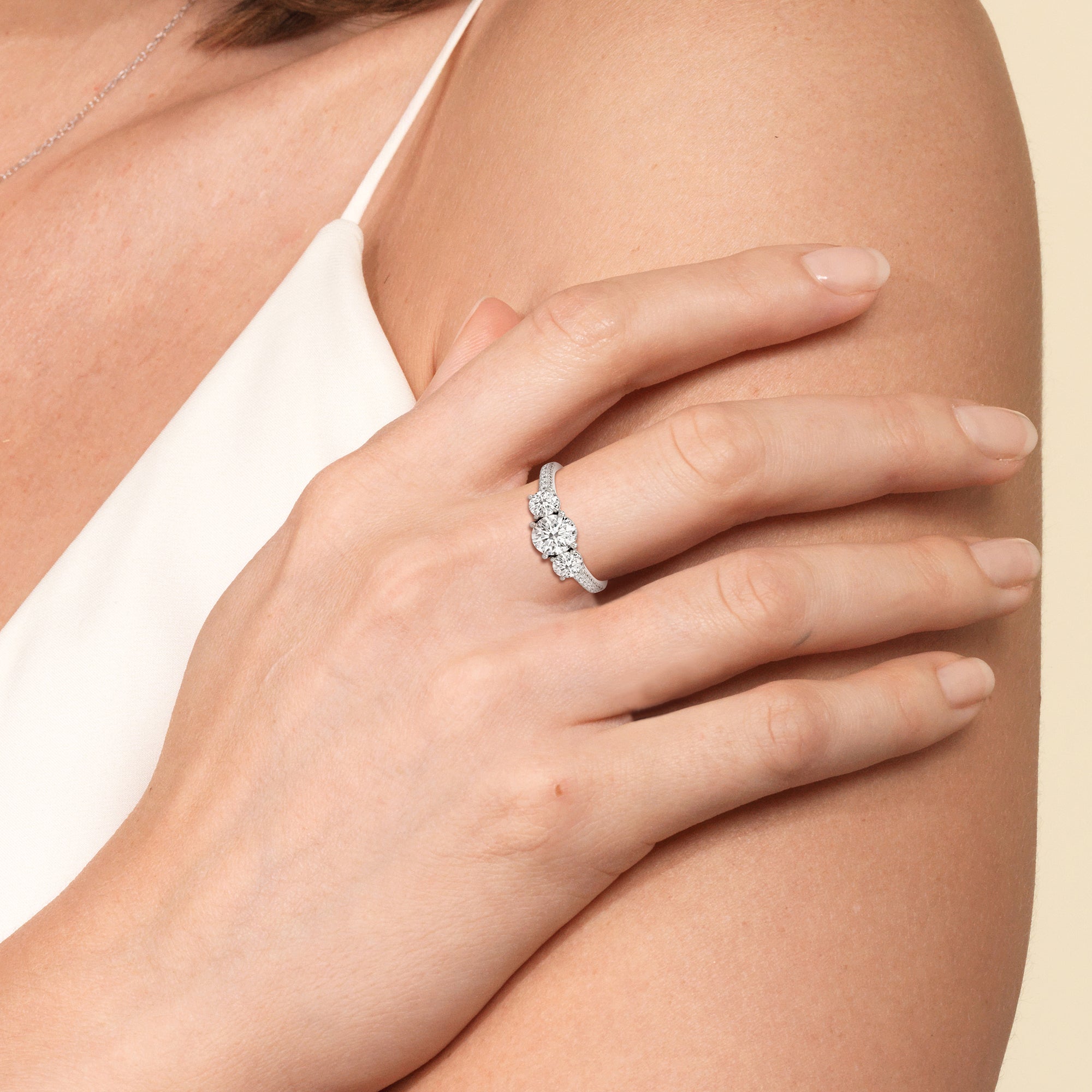Discover a stress-free way to find your dream ring with With Clarity's unique approach: Browse. Try. Buy. With our at Home Preview service, you can explore over 8,000 customization options from the comfort of your own home. Select two rings to try on, customized to your preferences in size, metal, shape, and carat. Whether you're lounging at home or out for drinks, take your time to truly connect with your options. Consult with your partner or friends, snap some selfies, and return within 7 days. When you're ready, simply return to our site to order the perfect ring that reflects your unique style and love story.