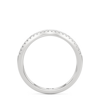 This curved diamond set wedding band is perfectly contoured to complement our the amelia diamond wedding band for a simple and sophisticated look.