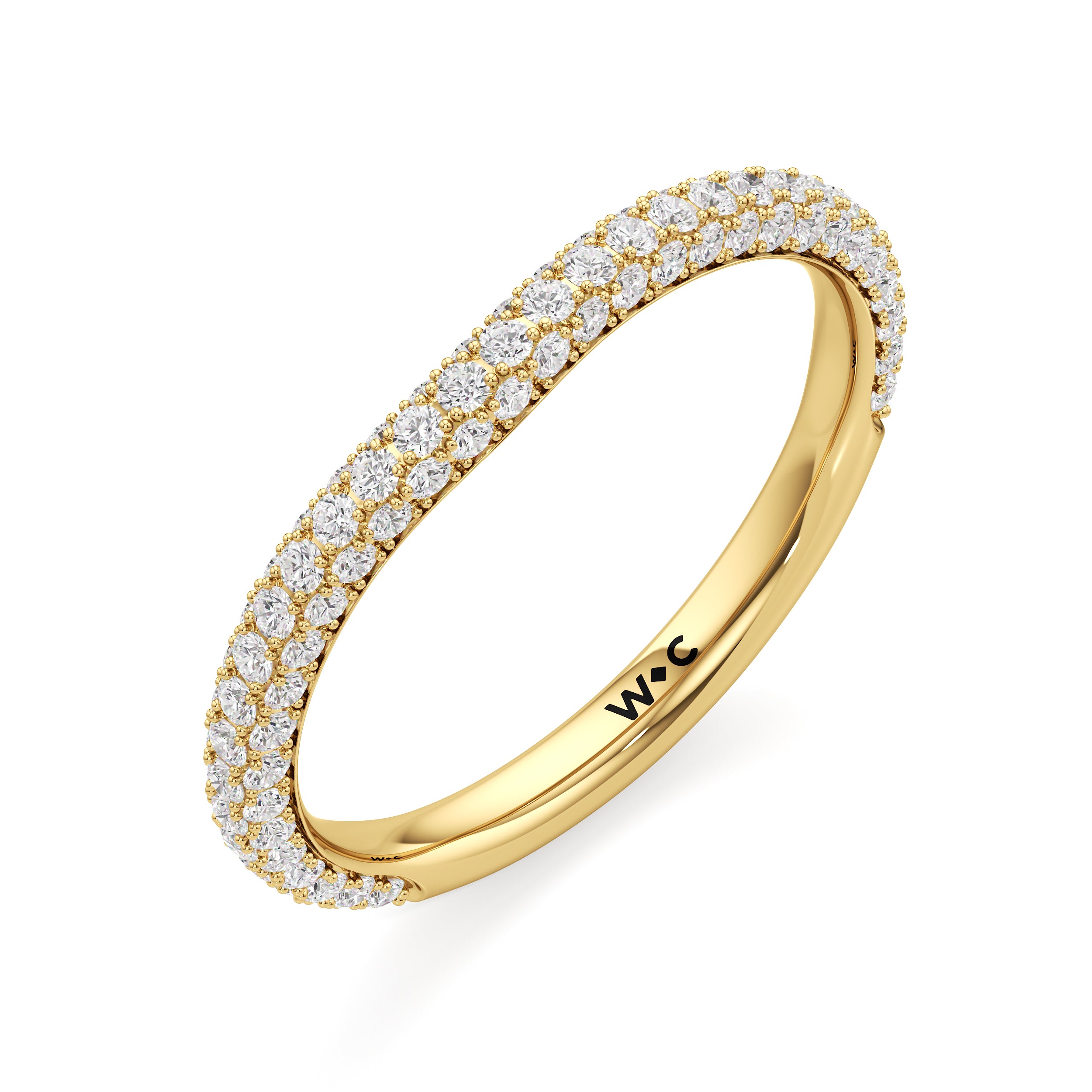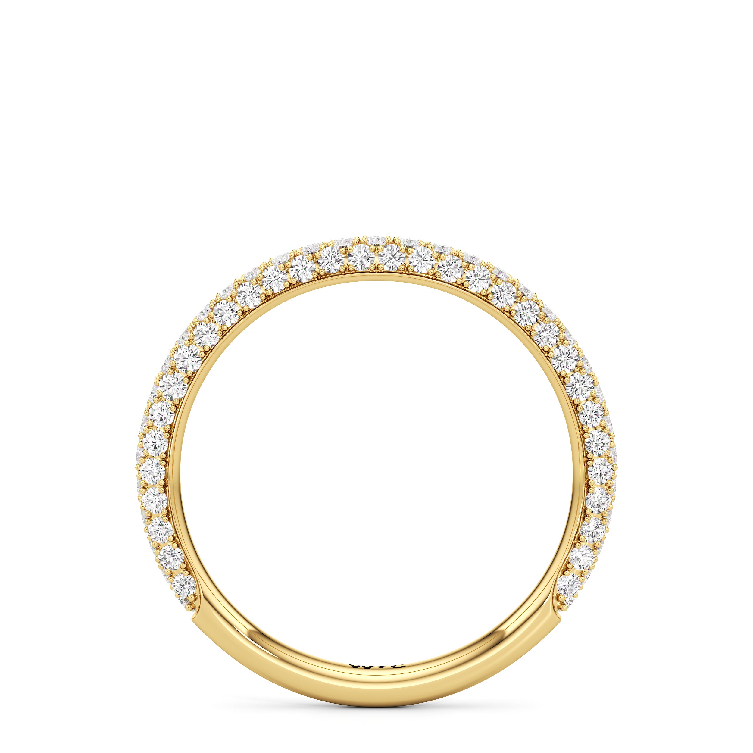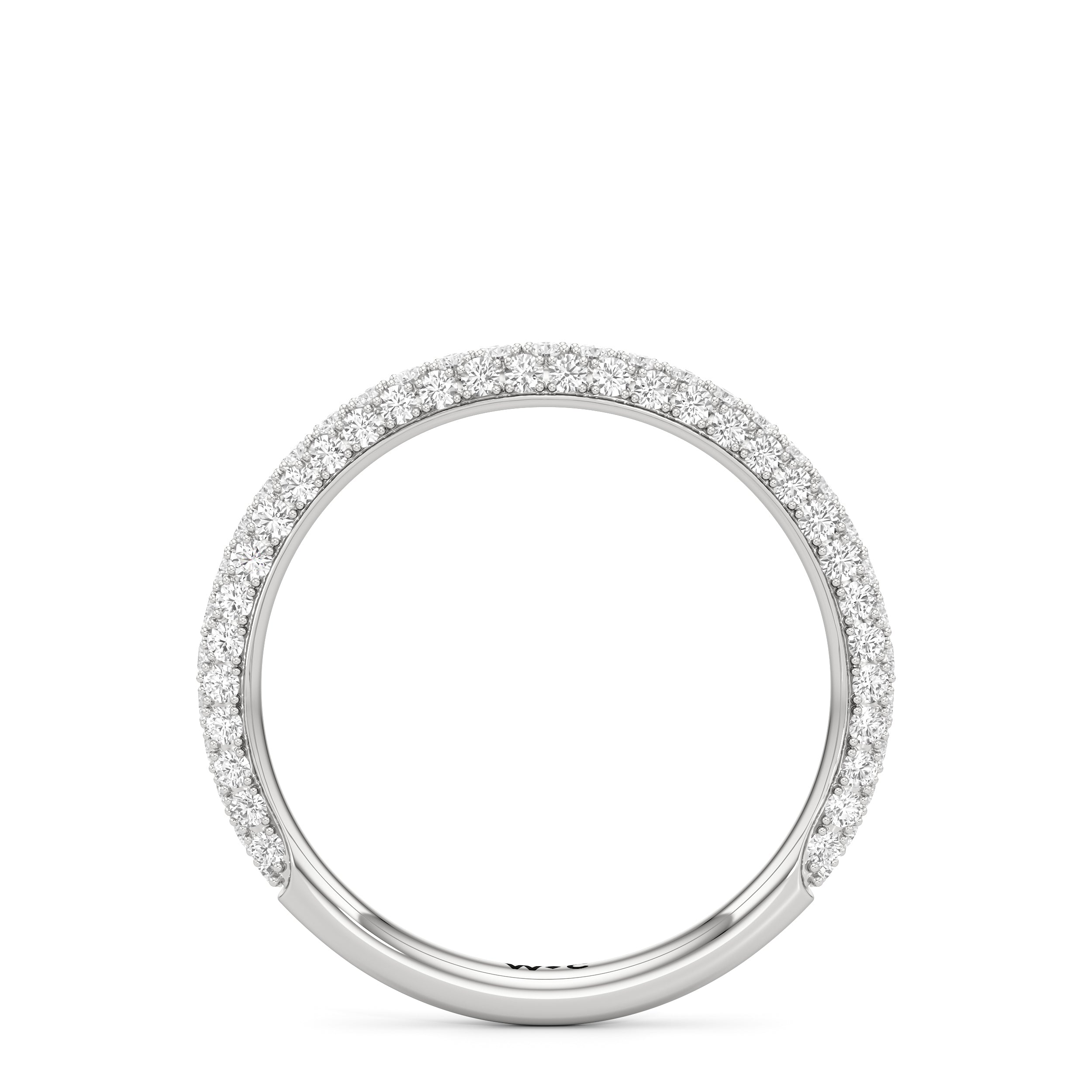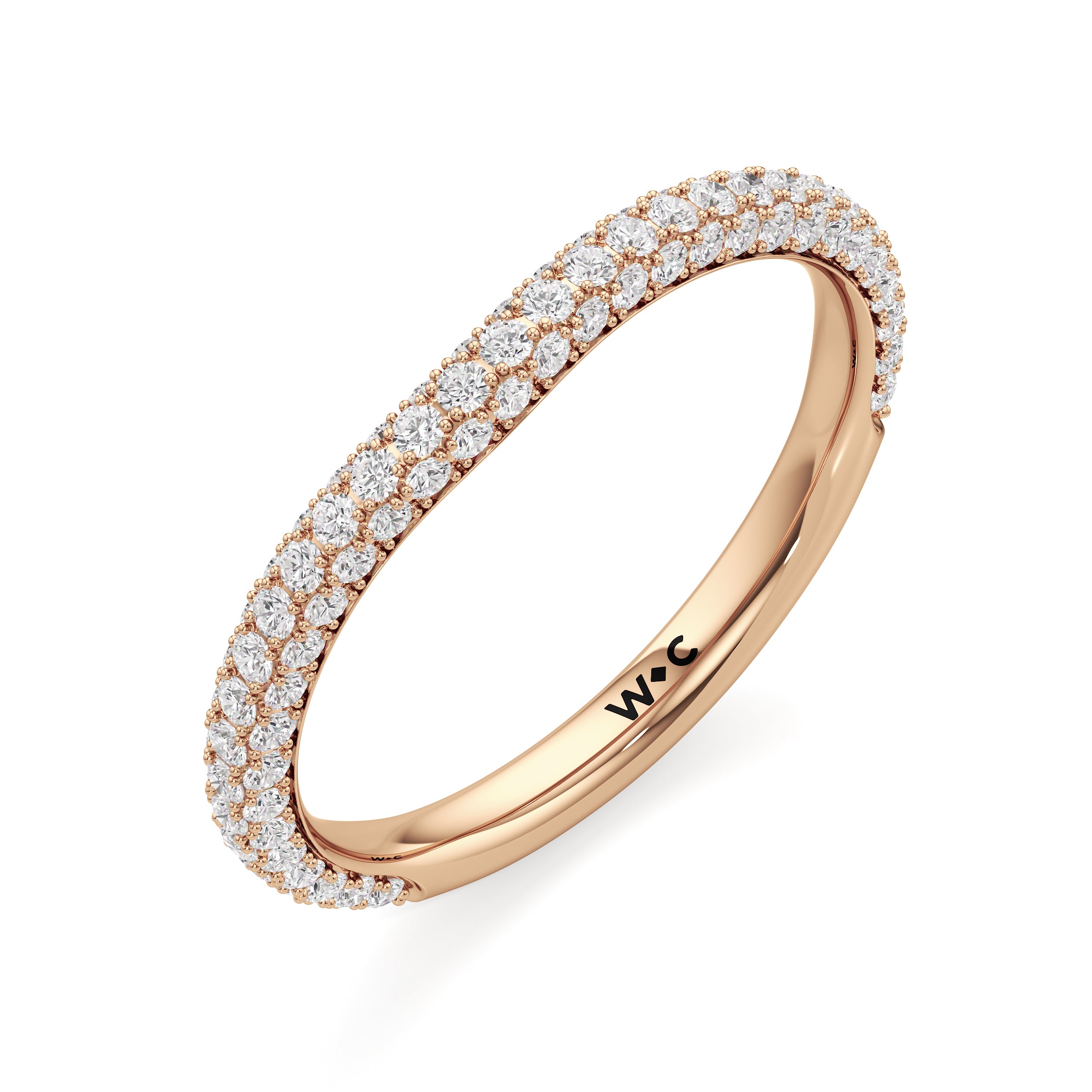 This curved diamond set wedding band is perfectly contoured to complement our the amelia three stone engagement ring for a simple and sophisticated look.