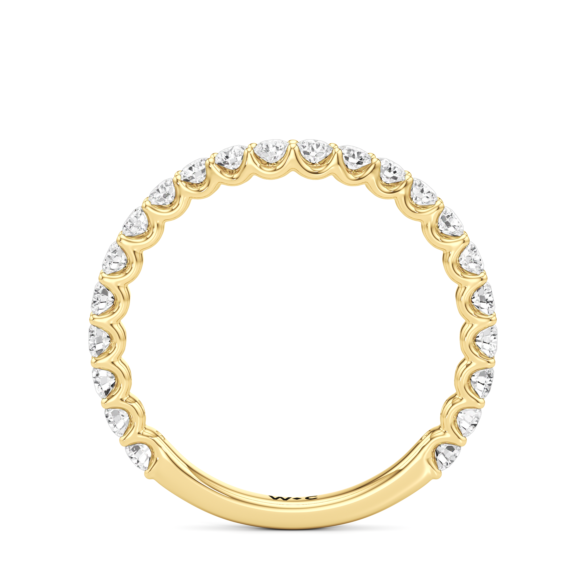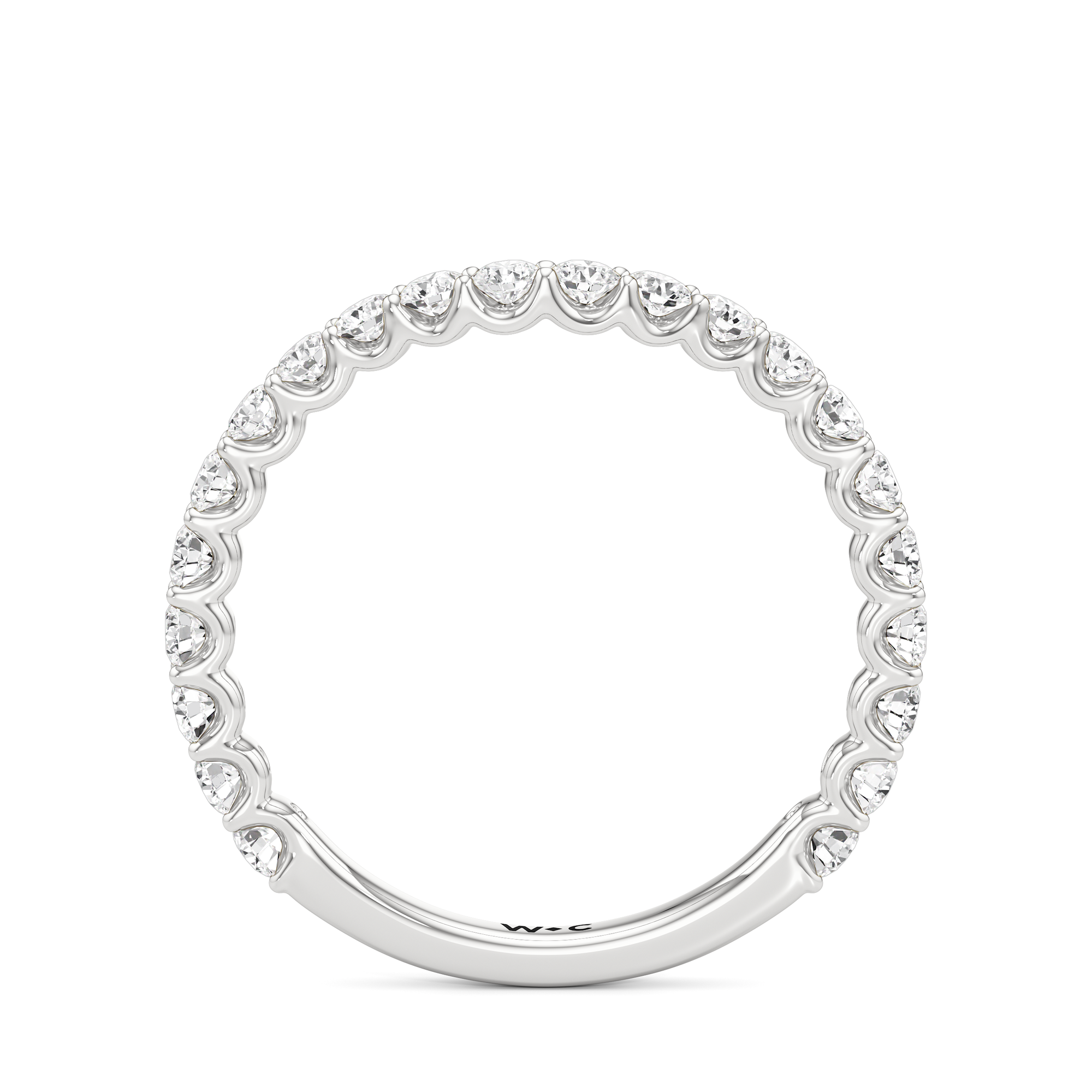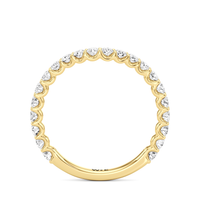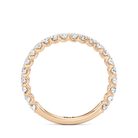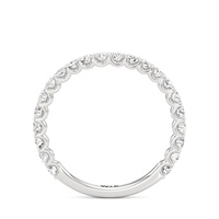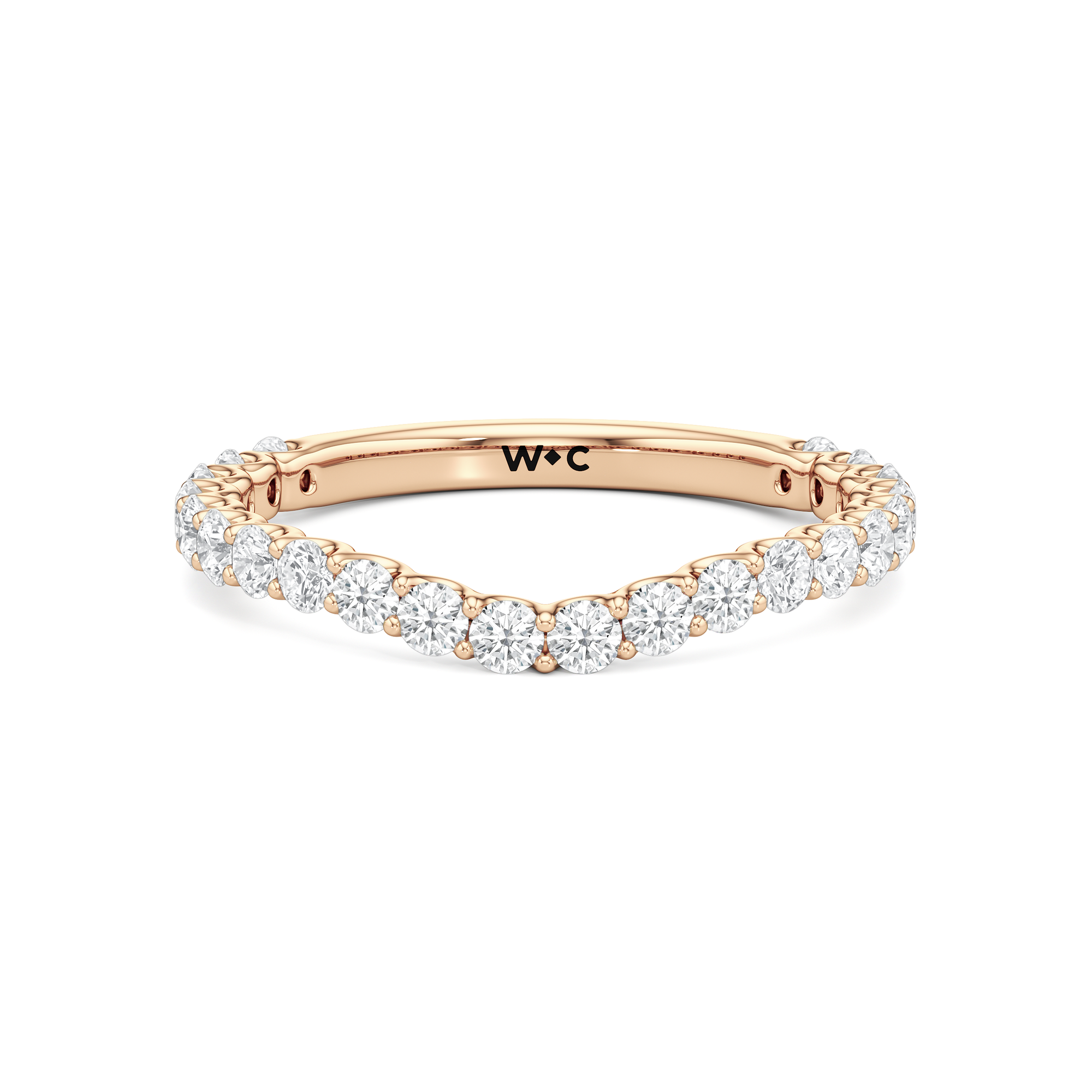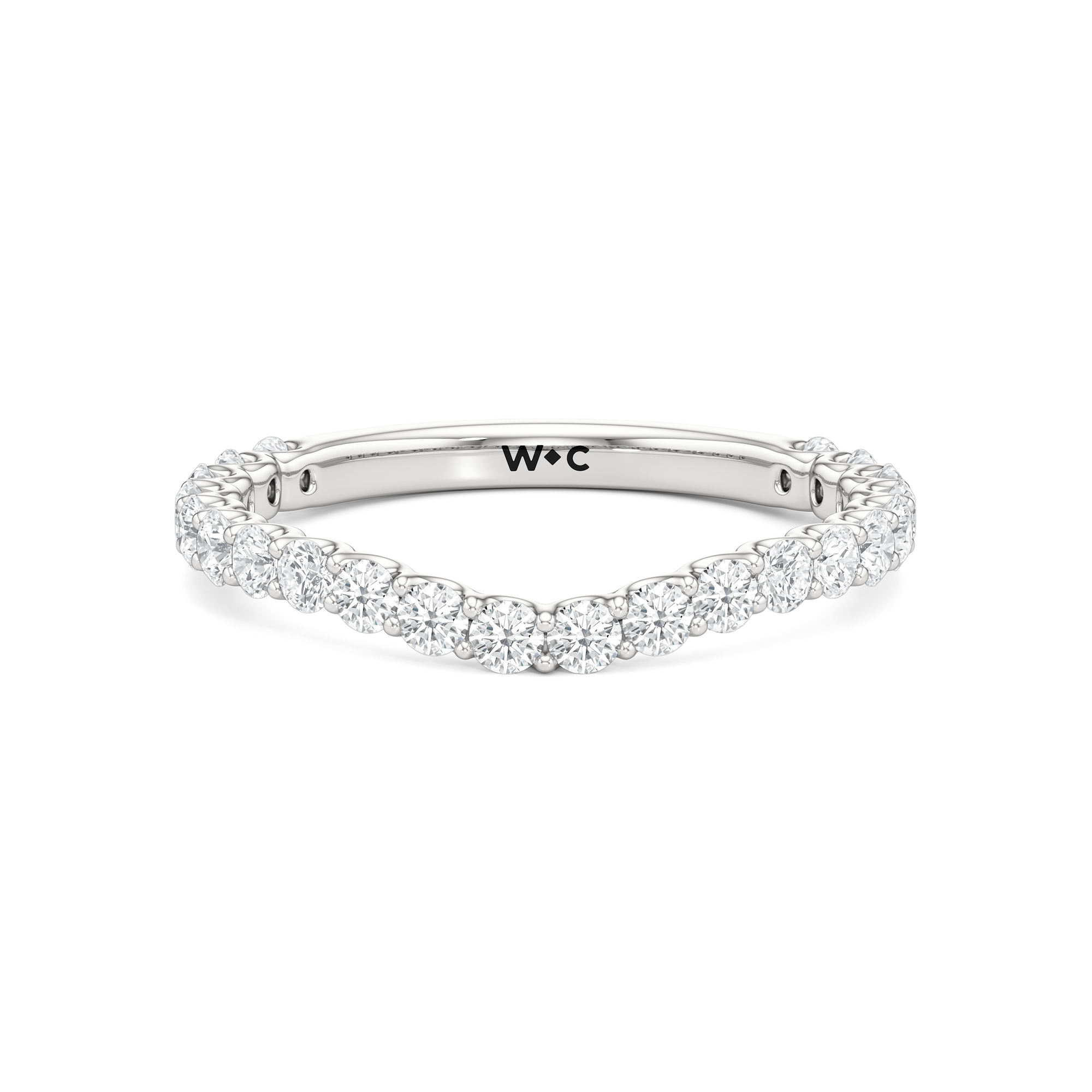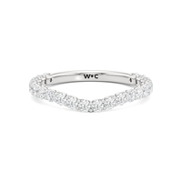 This curved diamond set wedding band is perfectly contoured to complement our the arc icon engagement ring for a simple and sophisticated look.
