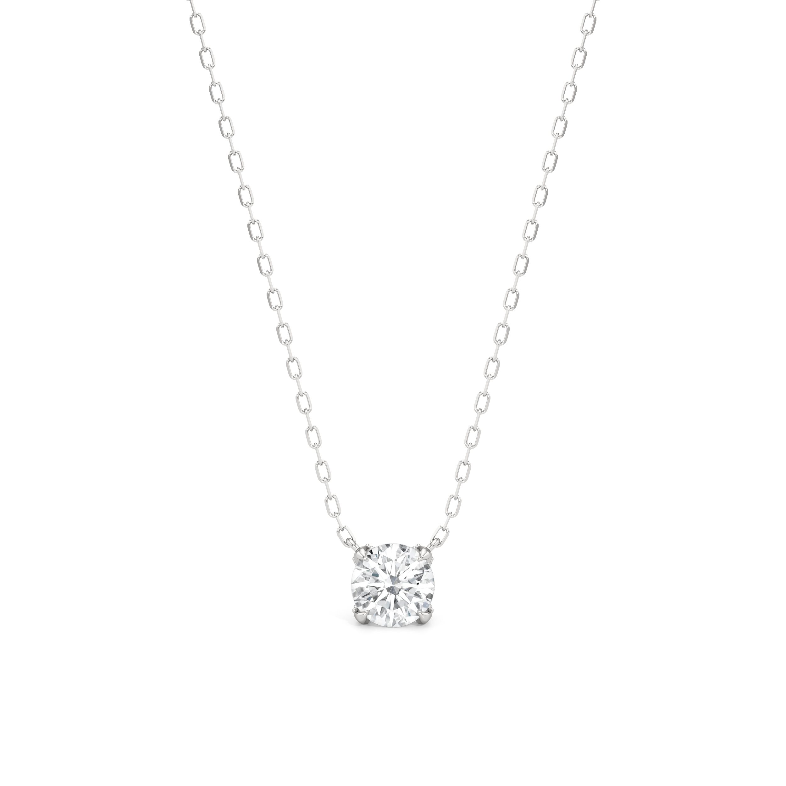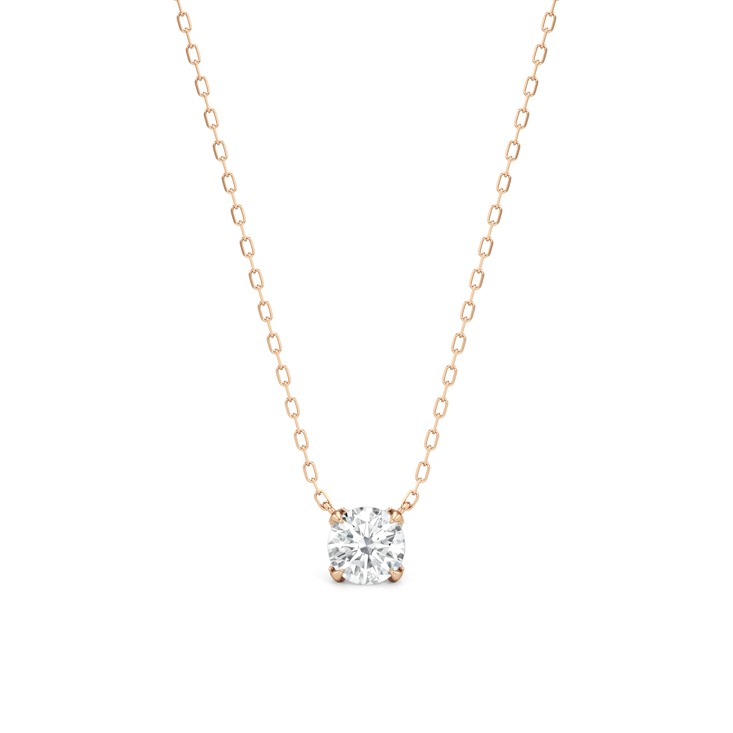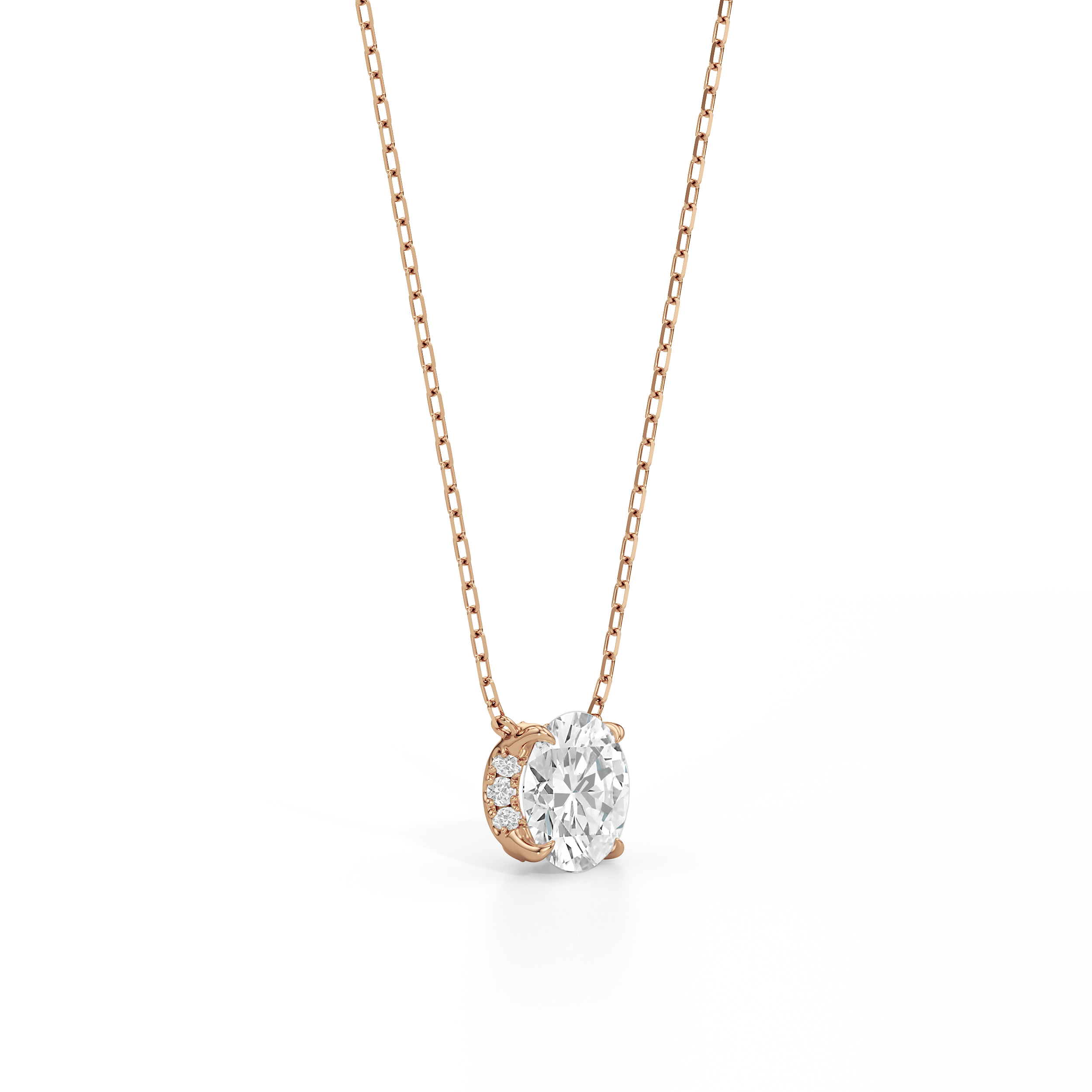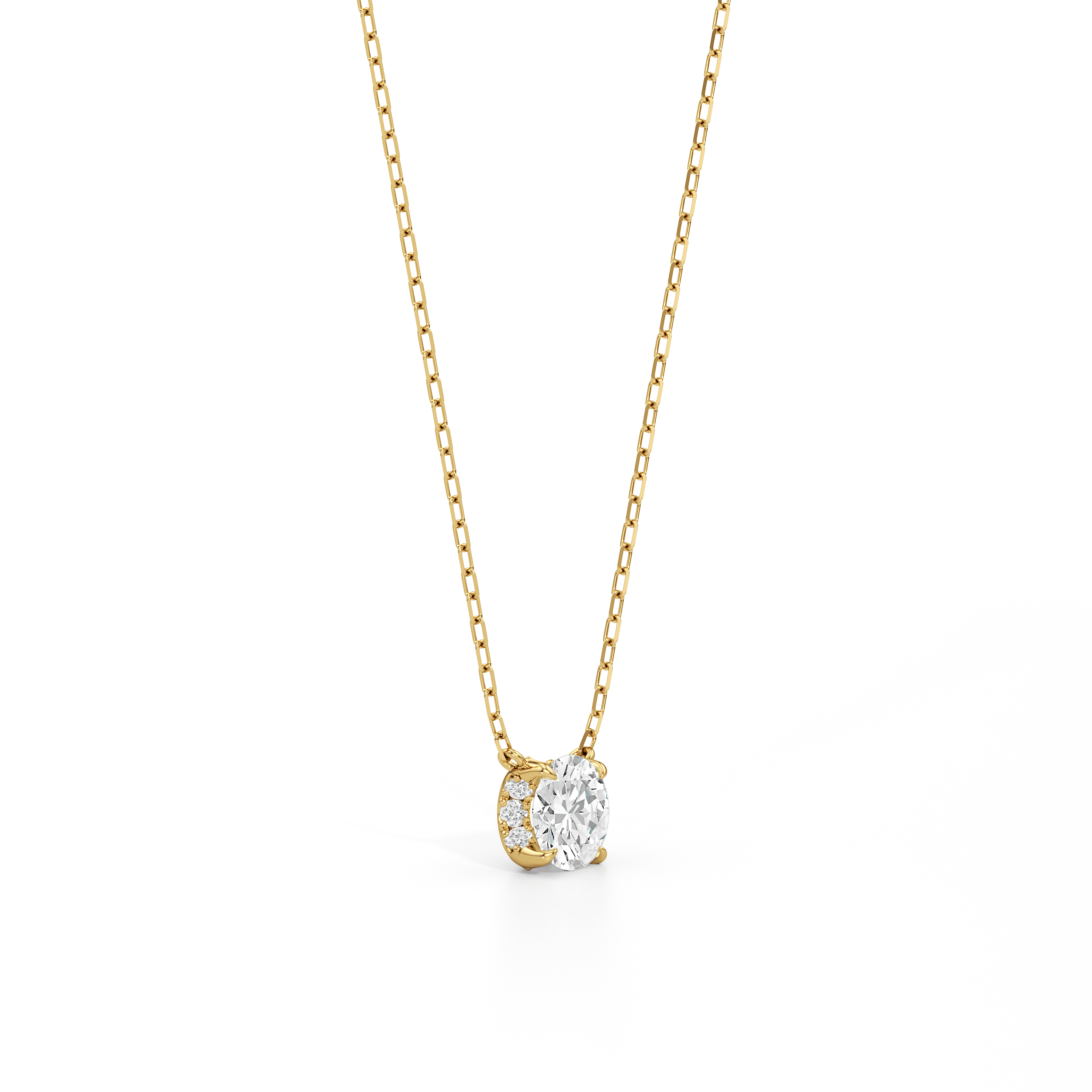 The Atrium Round Solitaire Pendant boasts a diamond-studded U-shaped setting that redefines how a diamond should shine. This necklace holds a diamond solitaire pendant secured by four claw prongs and cradled by a U-shaped frame. Additional diamonds punctuate the curved base of the setting, maximizing brilliance.
