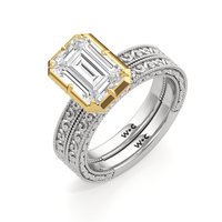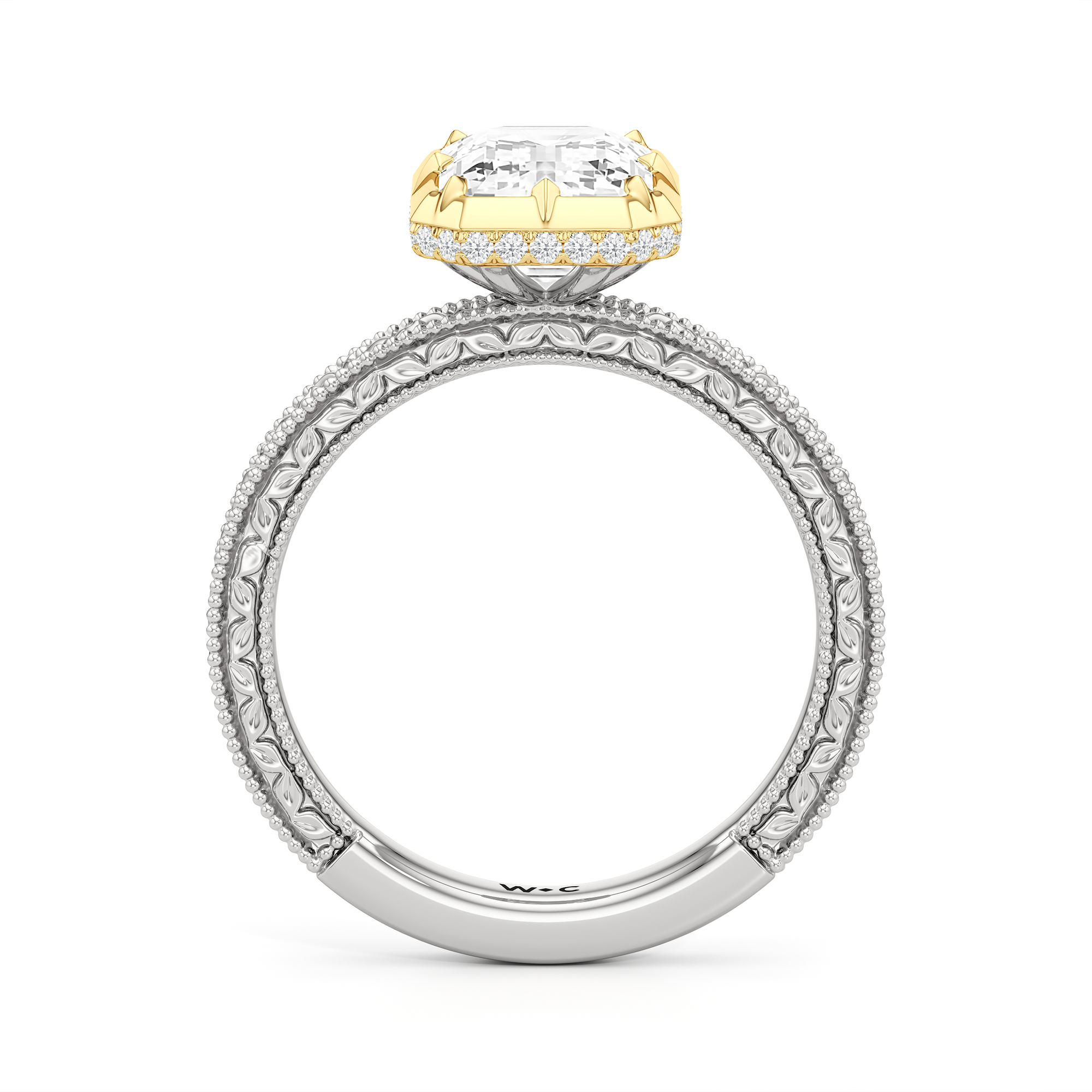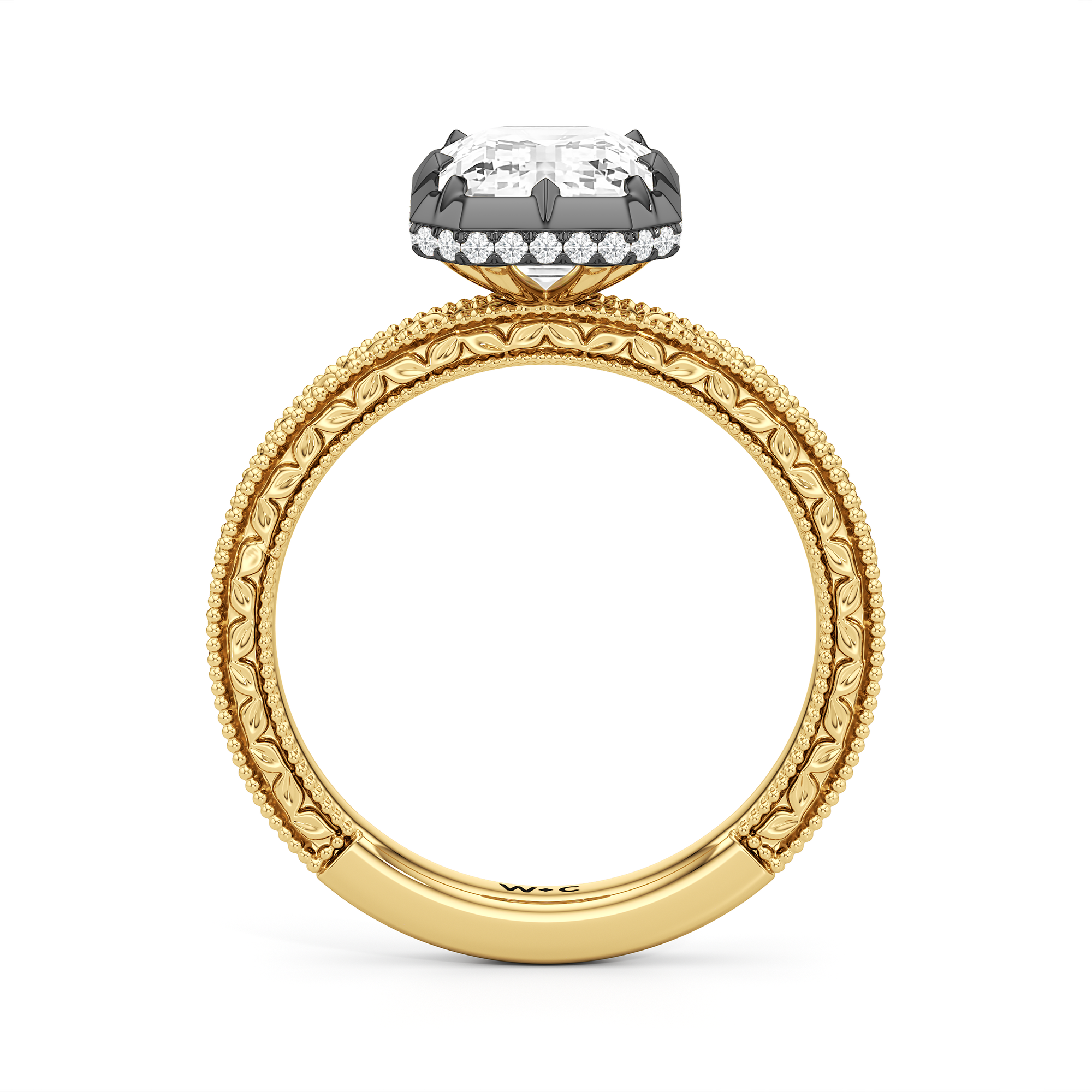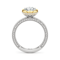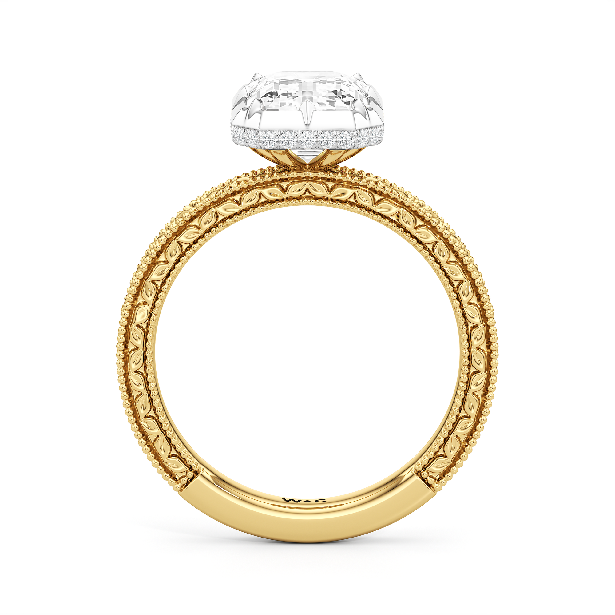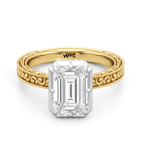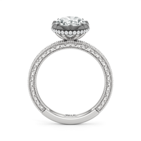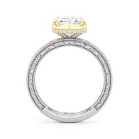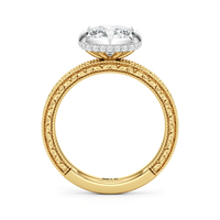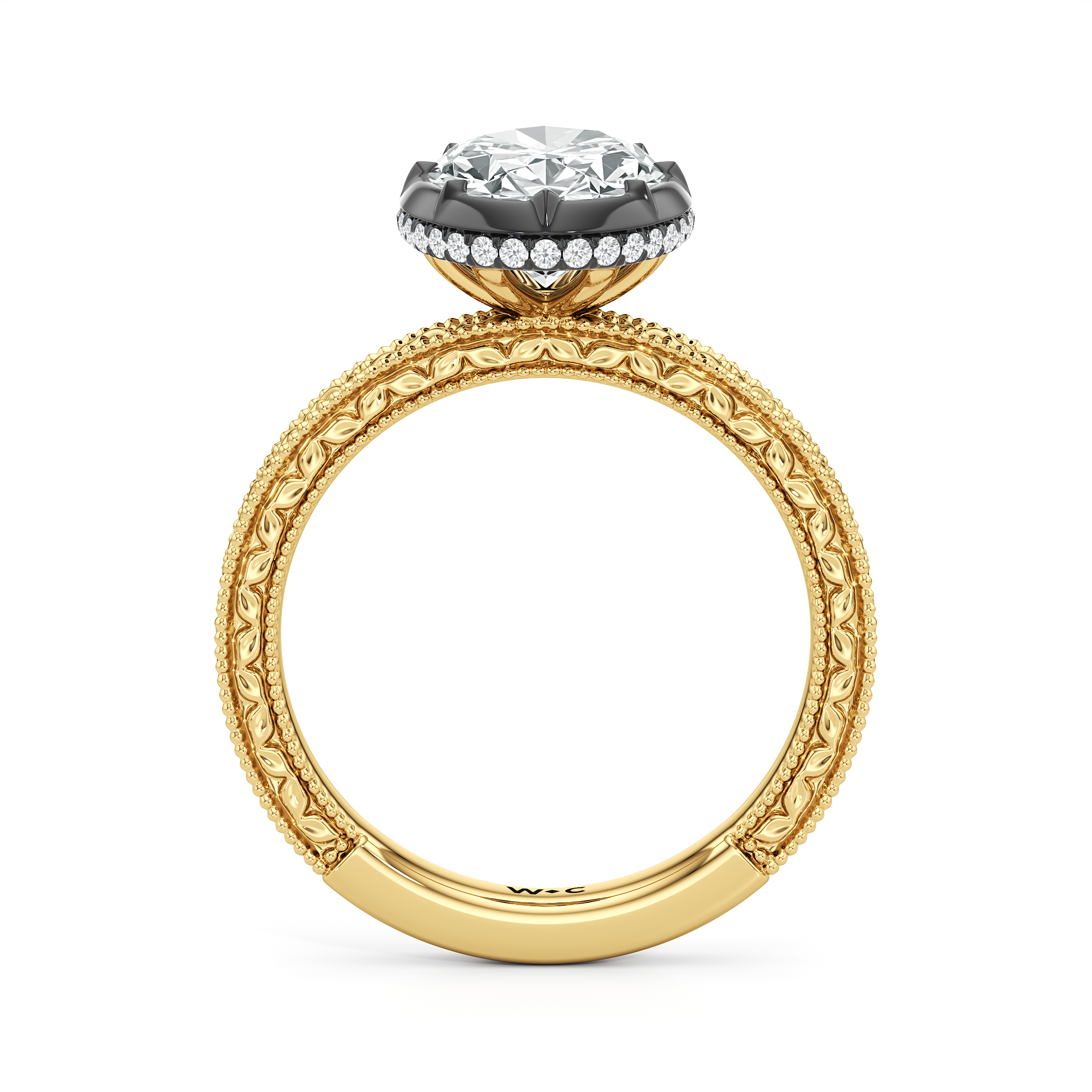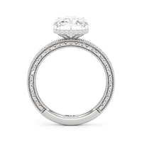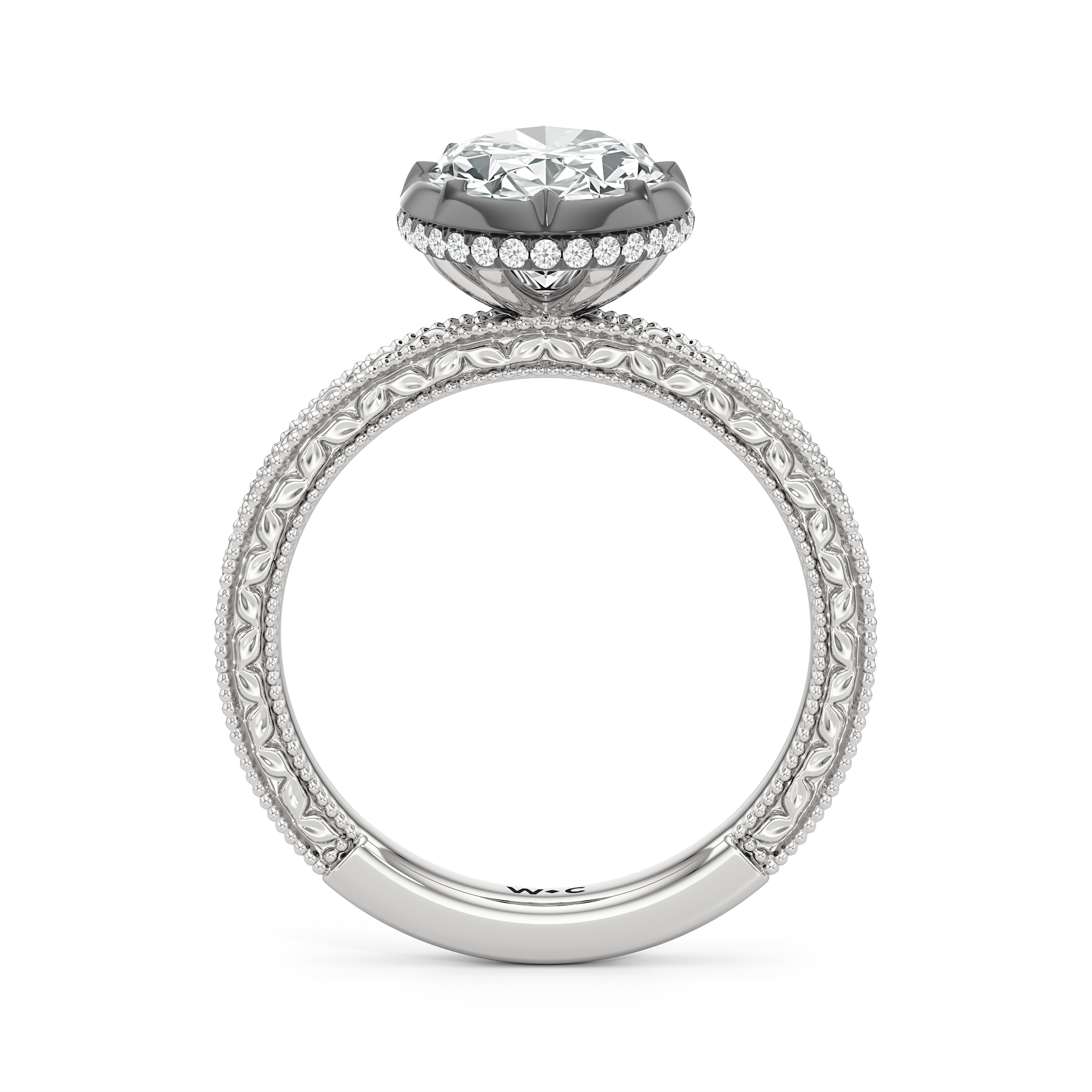 Designed with classic craftsmanship reimagined for today, Aurore captures the glow of something quietly powerful—like the connection between soulmates. Timeless, yet always beginning. The center diamond set in a hybrid serti dressé setting, is lifted with care and precision. Beneath it is a hidden halo that adds a soft brilliance from below, while the band echoes vintage detailing with its miglrained edges.