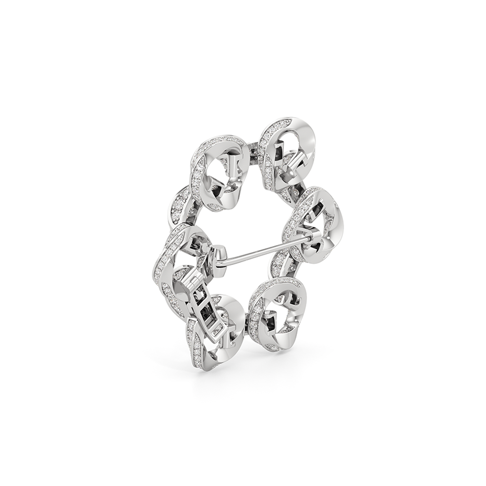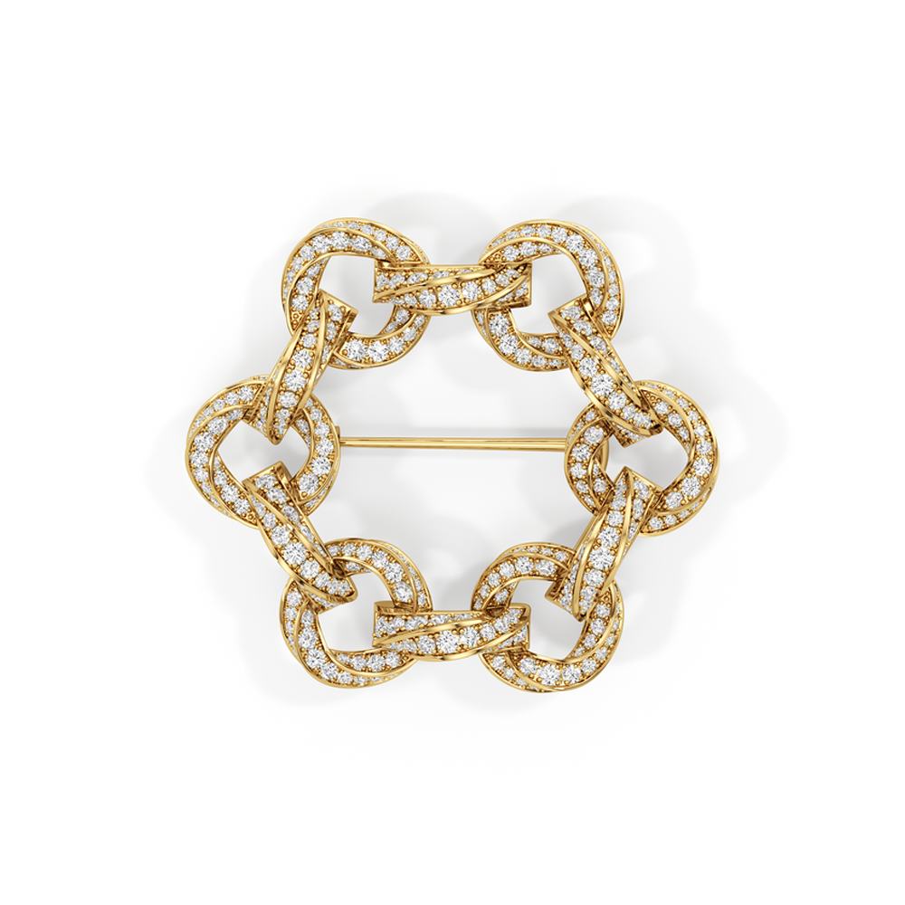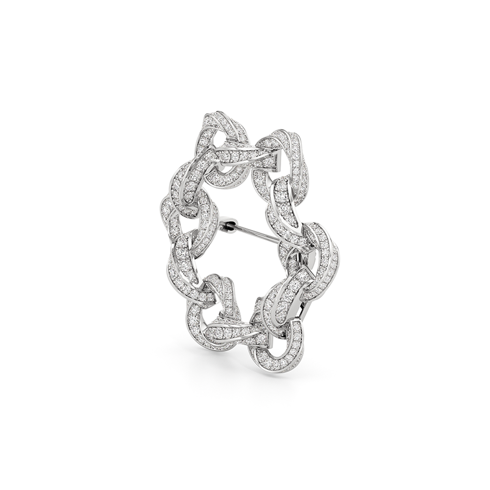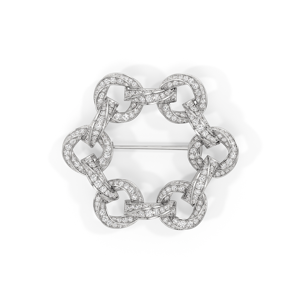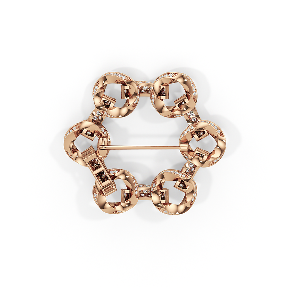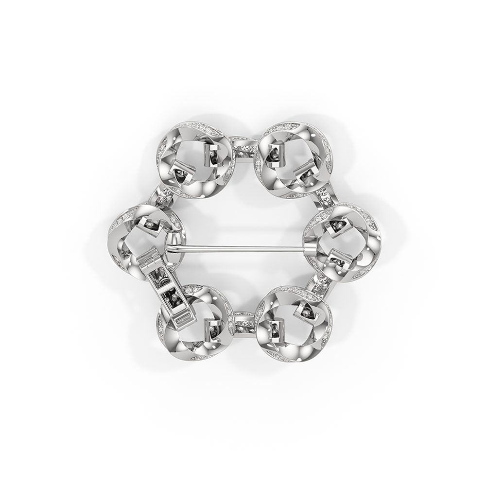 The Bond Circle Brooch is a dynamic expression of connection and versatility, inspired by the three-dimensional form of our With Clarity emblem.The designs reflect modern elegance, marked by intertwined elements, seamless curves, and minimalist yet meaningful forms that echo the timeless nature of love and loyalty. Whether it’s the subtle interlocking bands that represent unity or the delicate curves that speak to a relationship’s natural flow, the Bond Collection brings together sophistication and sentiment in perfect harmony. This brooch is also available as part of a trio, known as The Bond Brooch.