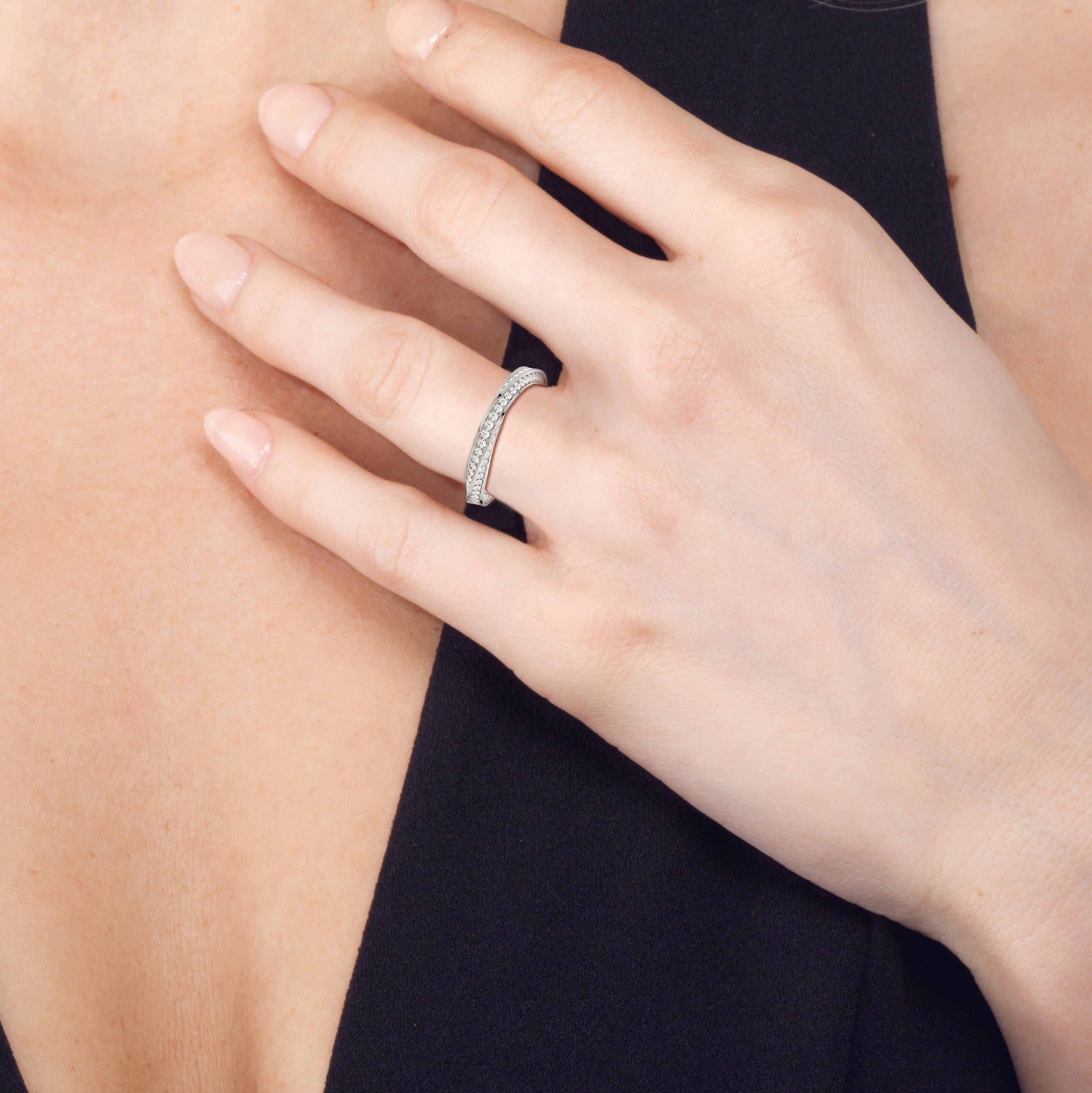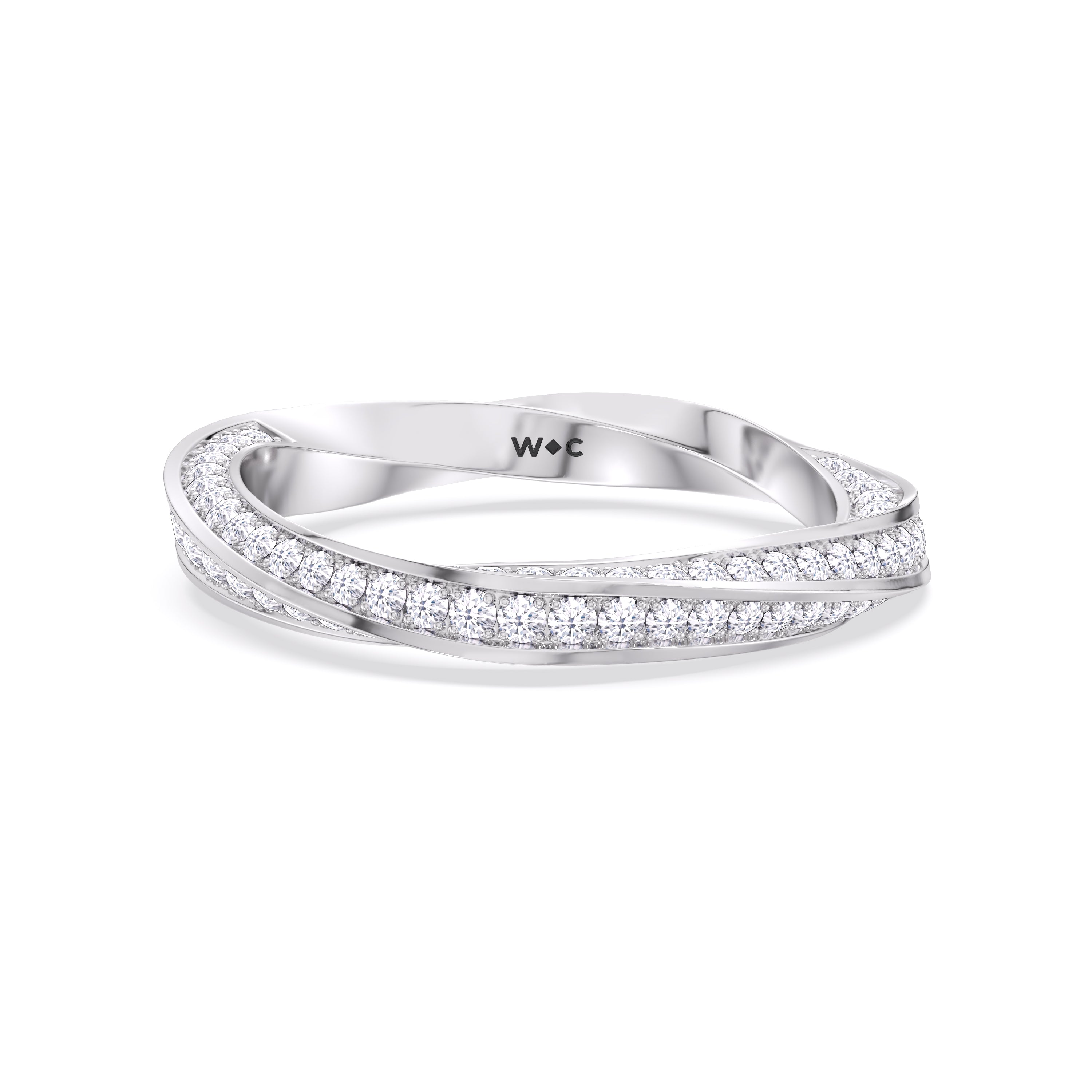 The Bond Wedding Band is a refined symbol of unity, inspired by the distinctive geometry of our With Clarity emblem. Subtly mirroring the engagement ring design, its form echoes the seamless flow of a möbius loop, representing infinite love and connection.