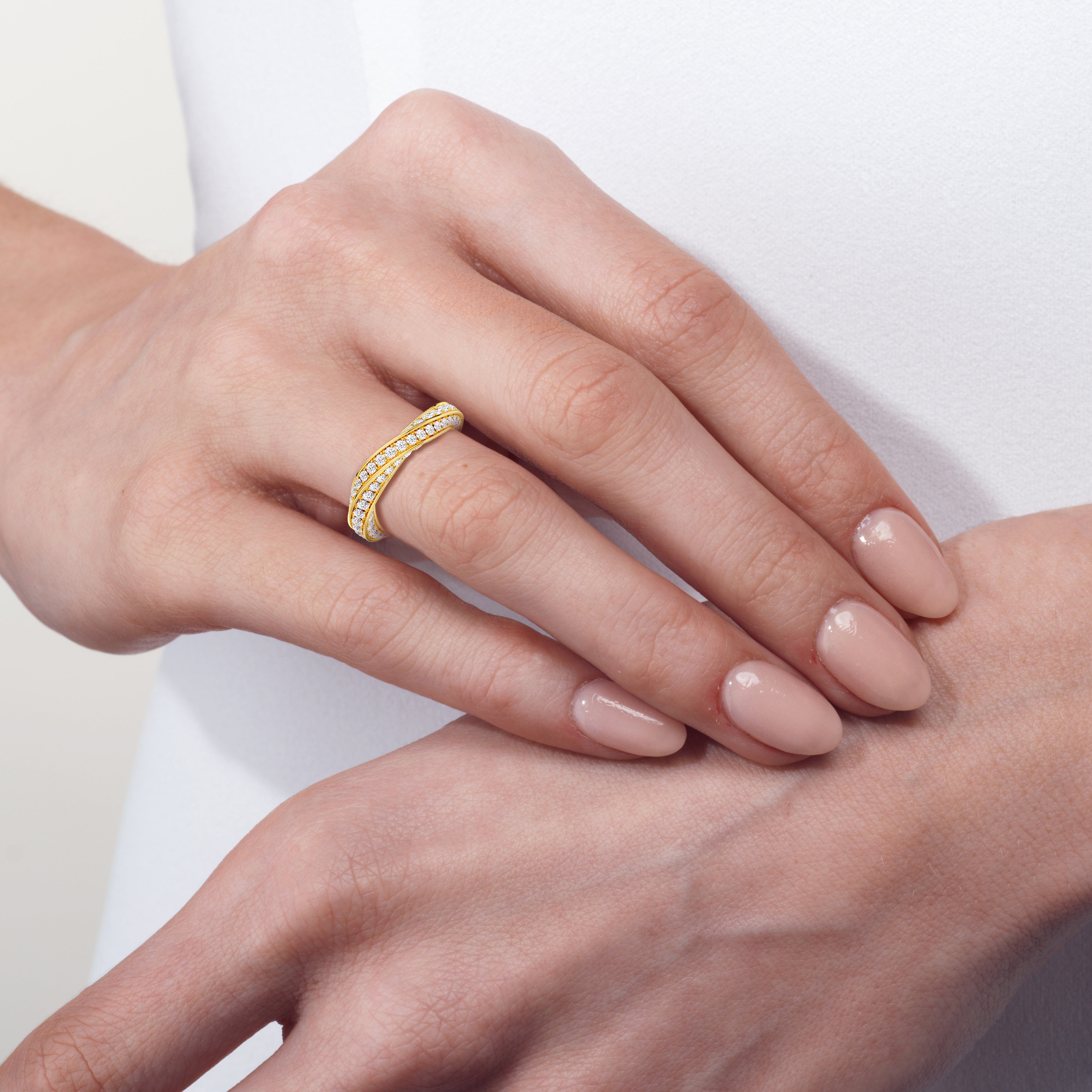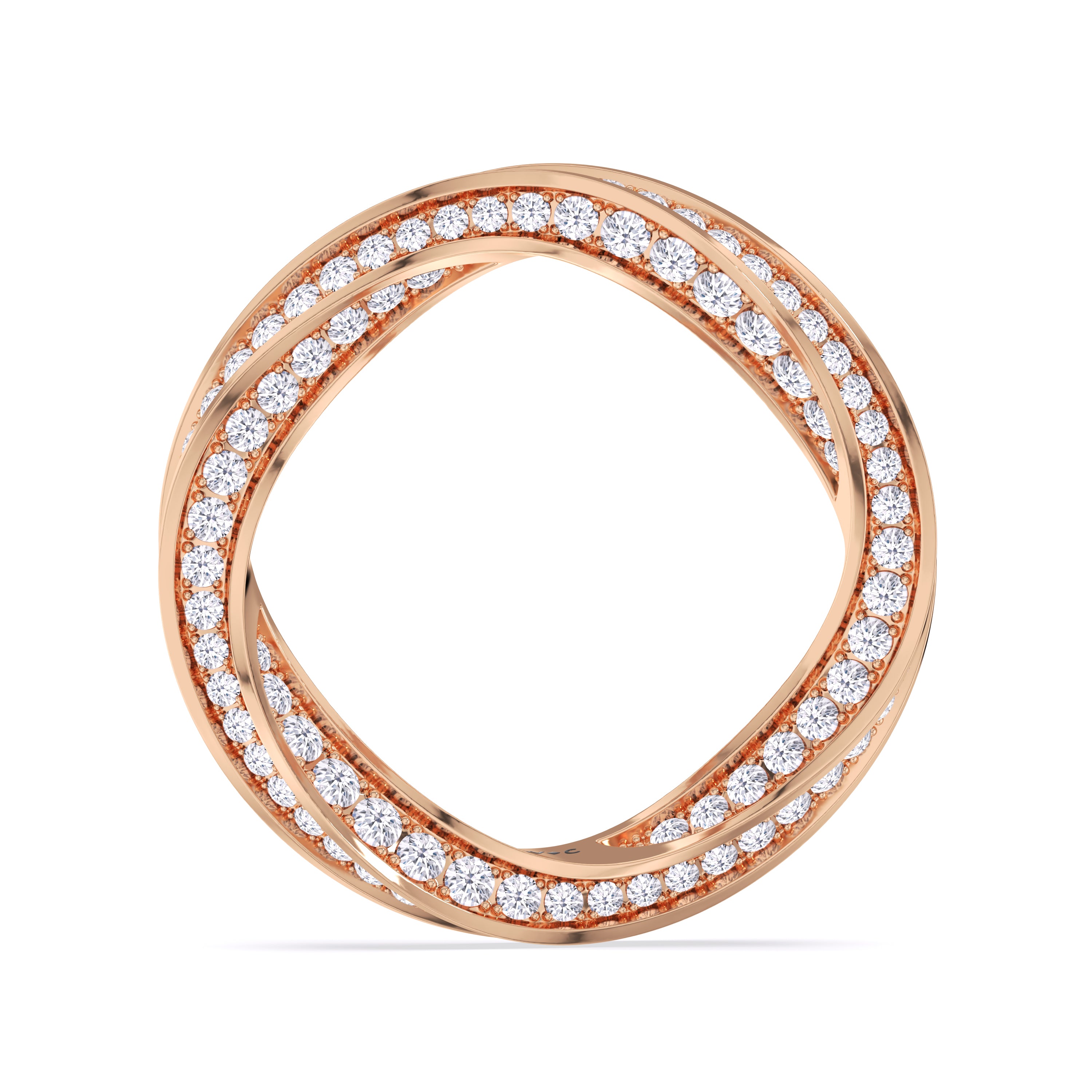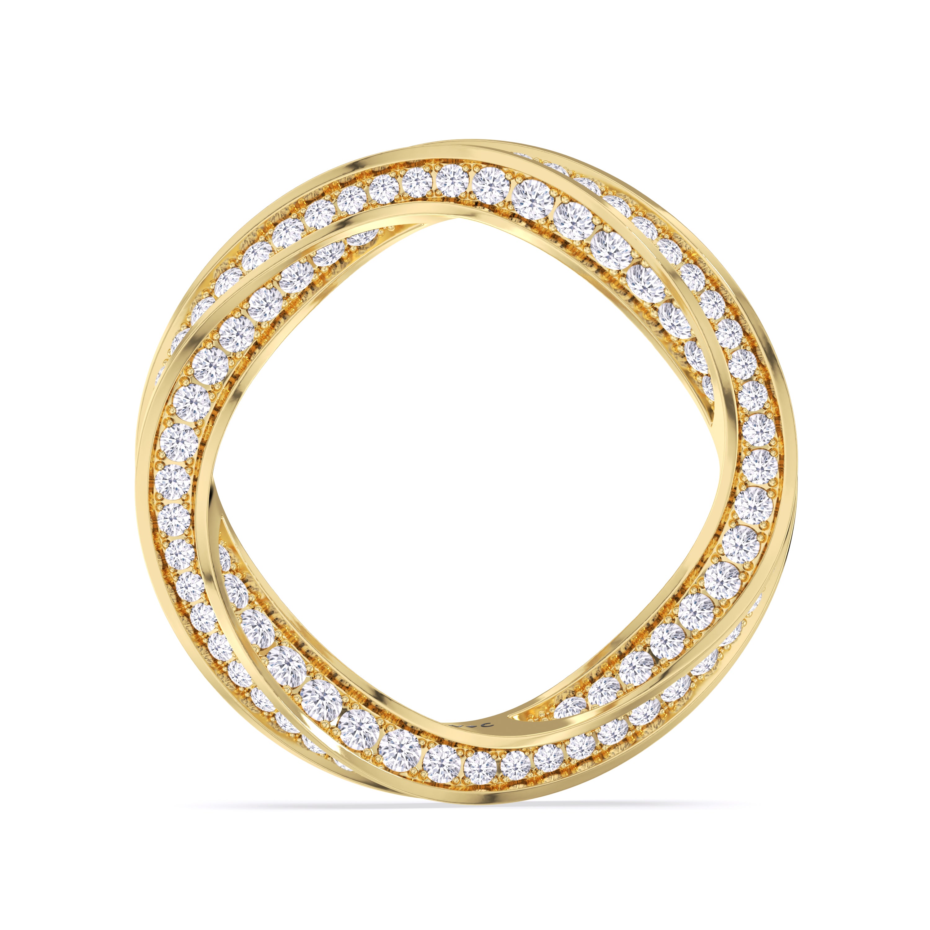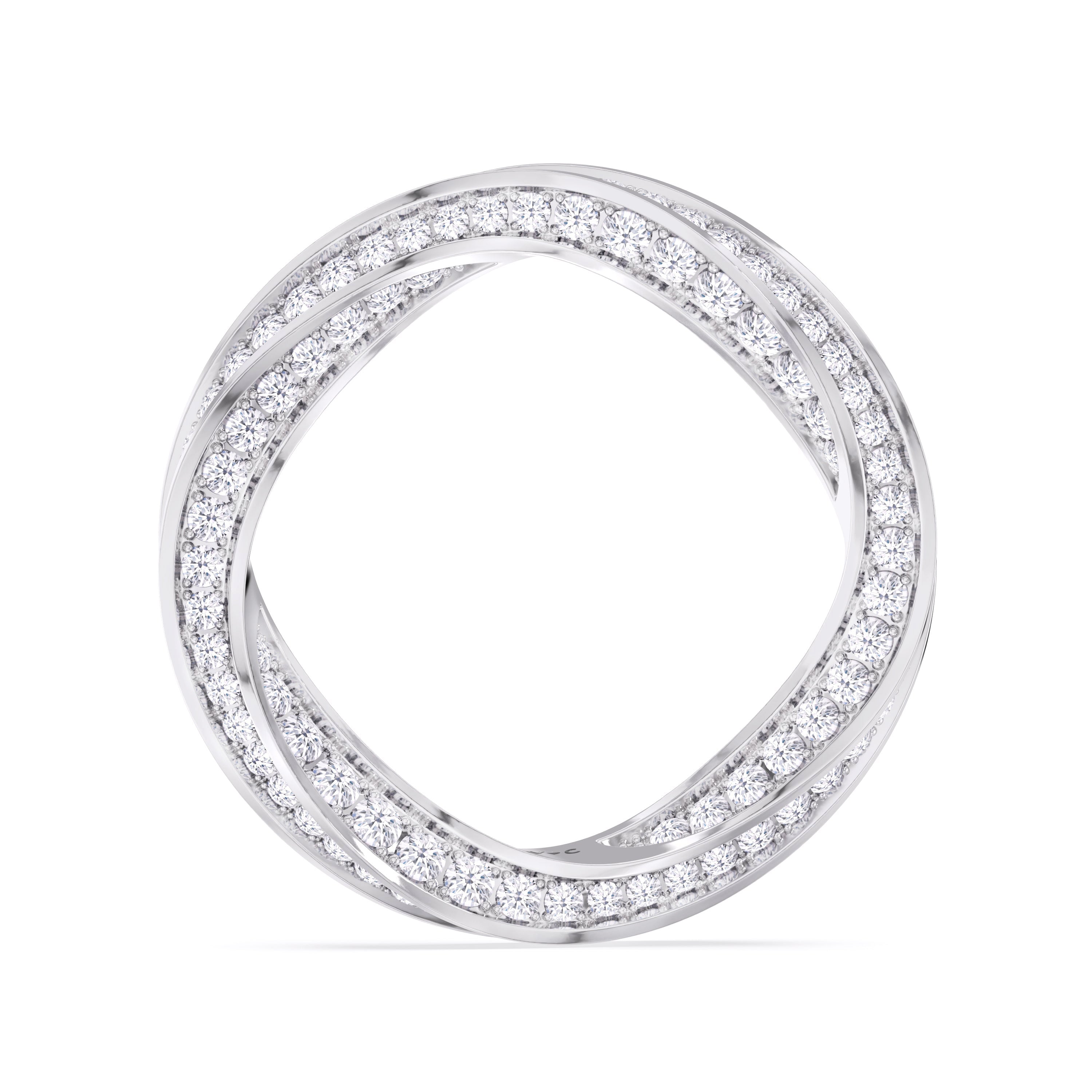 Echoing the fluidity of a möbius loop, the band’s sculptural design creates a seamless, unending flow of brilliance. Micro-pavé diamonds trace its contours, enhancing its luminous elegance from every angle.
