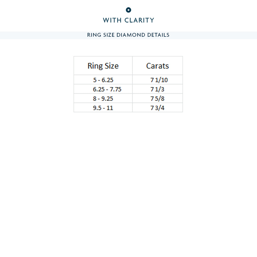 Finding the right size for a ring or band can be simple. Use our easy guide to determine a comfortable fit. Women’s ring sizes typically range from 3 to 9 within the United States. The most common women’s ring sizes are from size 6 to 7. The most popular men’s U.S. ring size is size 9. Refer to our international ring sizing chart or this printable guide to make finding the right size an easy process for your band or ring. You can also speak to our expert gemologists for more on the right finger sizing. At With Clarity, we offer complimentary resizing for engagement rings and wedding bands within 30 days of receipt.