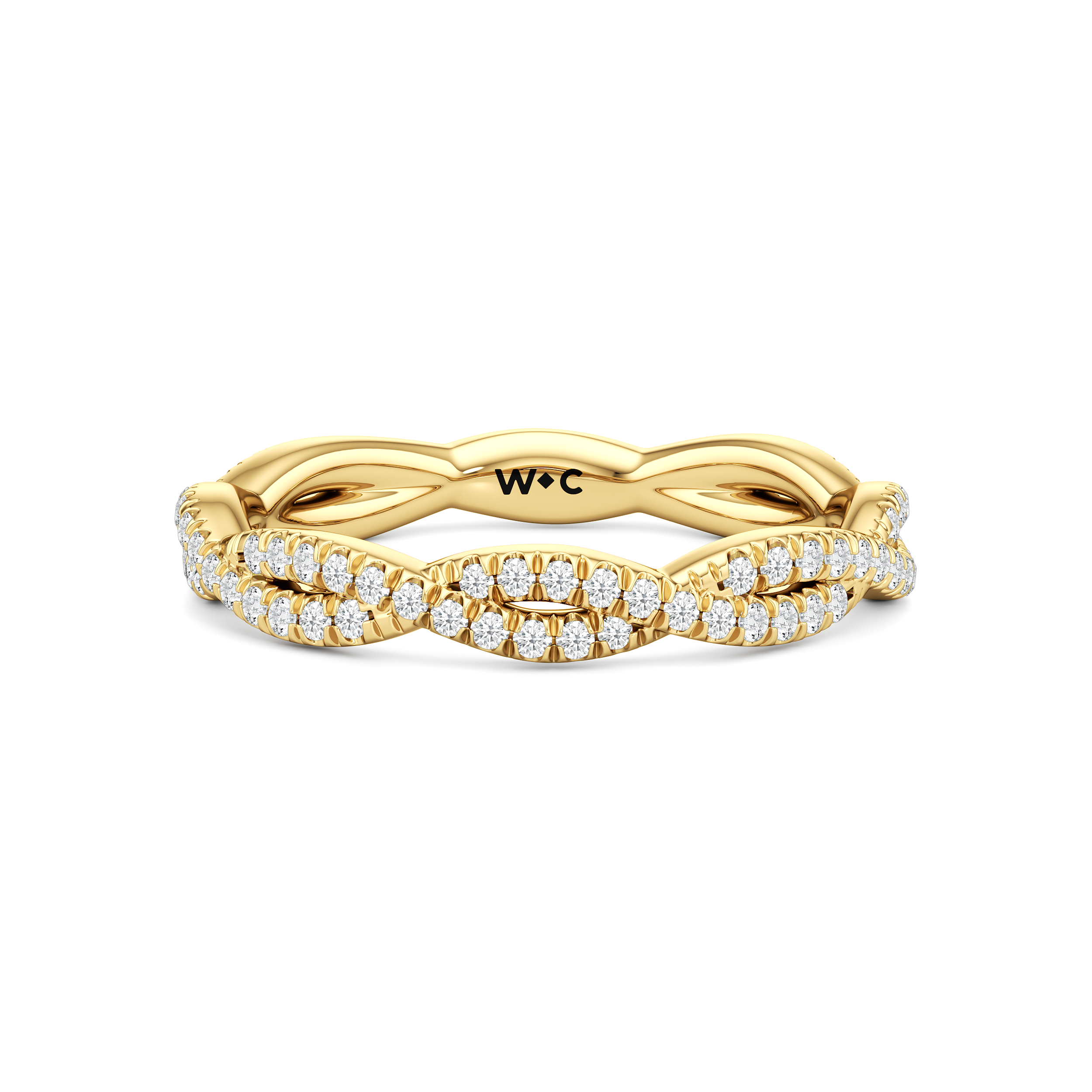Shimmering pave diamonds cascade down this band to create a timeless beauty that will never go out of style. Designed to be paired with our the chrysler apex ring for a simple and sophisticated look.