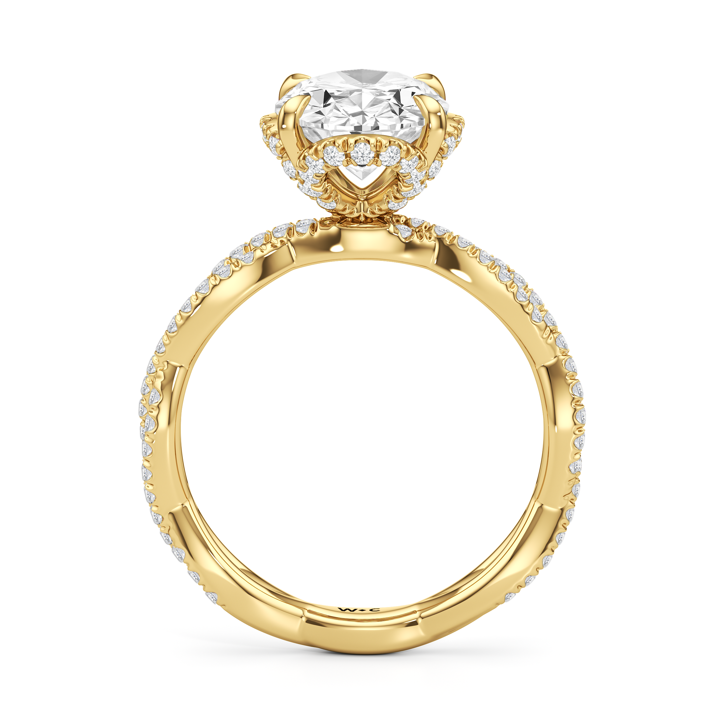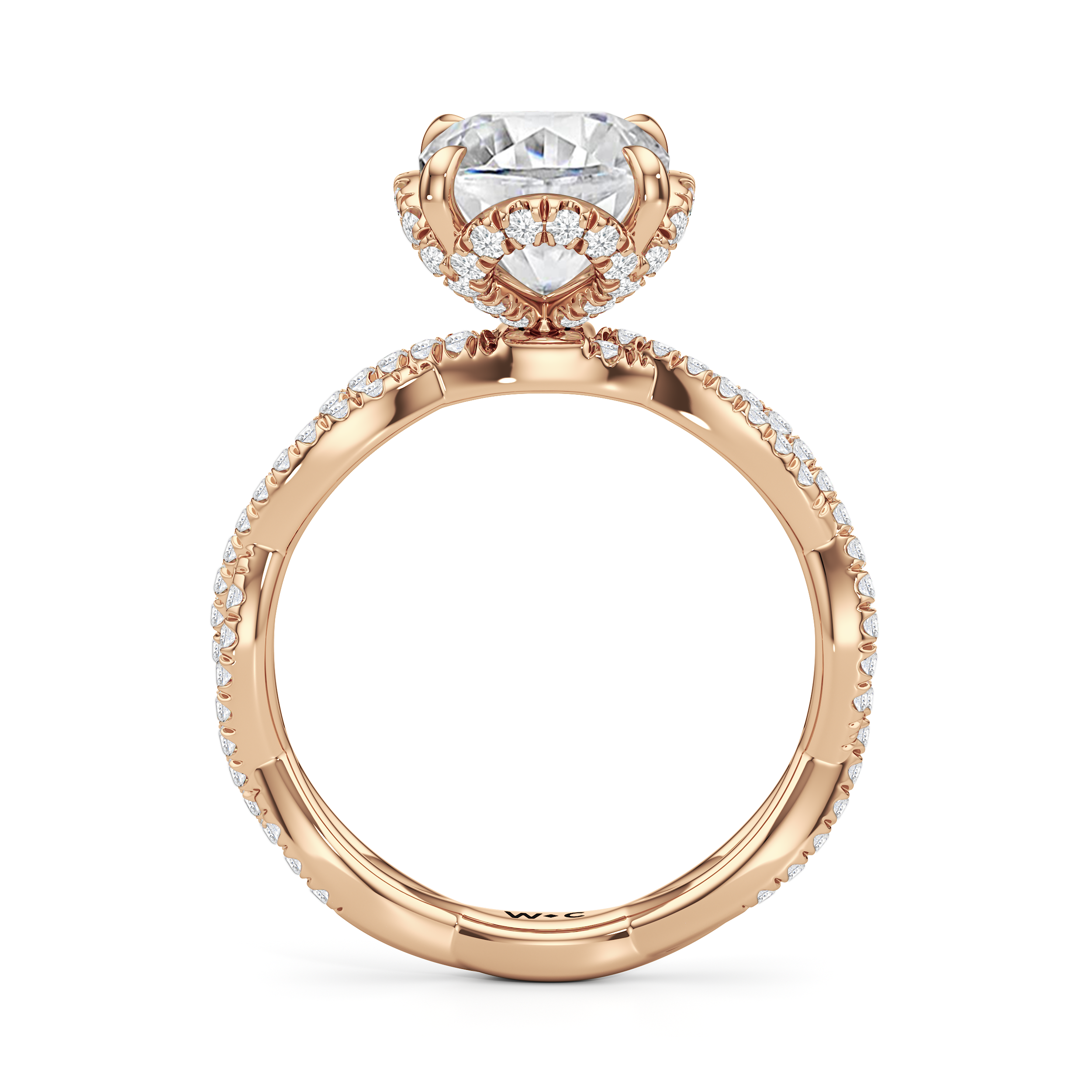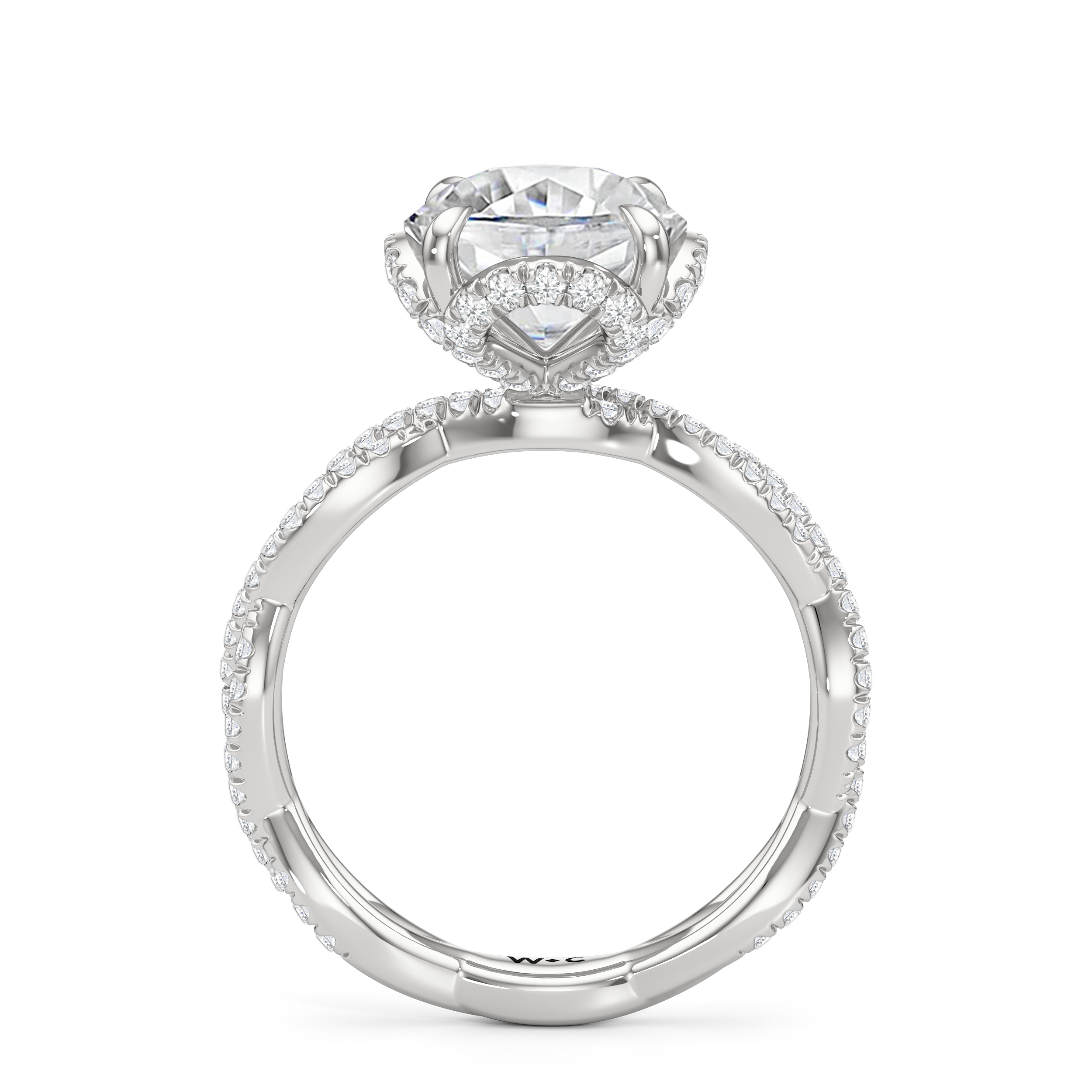 Twisted shoulders studded with diamonds guide your eye to the centerstone, cradled in the Chrysler collection's signature petal basket. The Apex ring is inspired by the bold geometry and enduring elegance of Art Deco, ideal for those ready to stand out and make a statement.