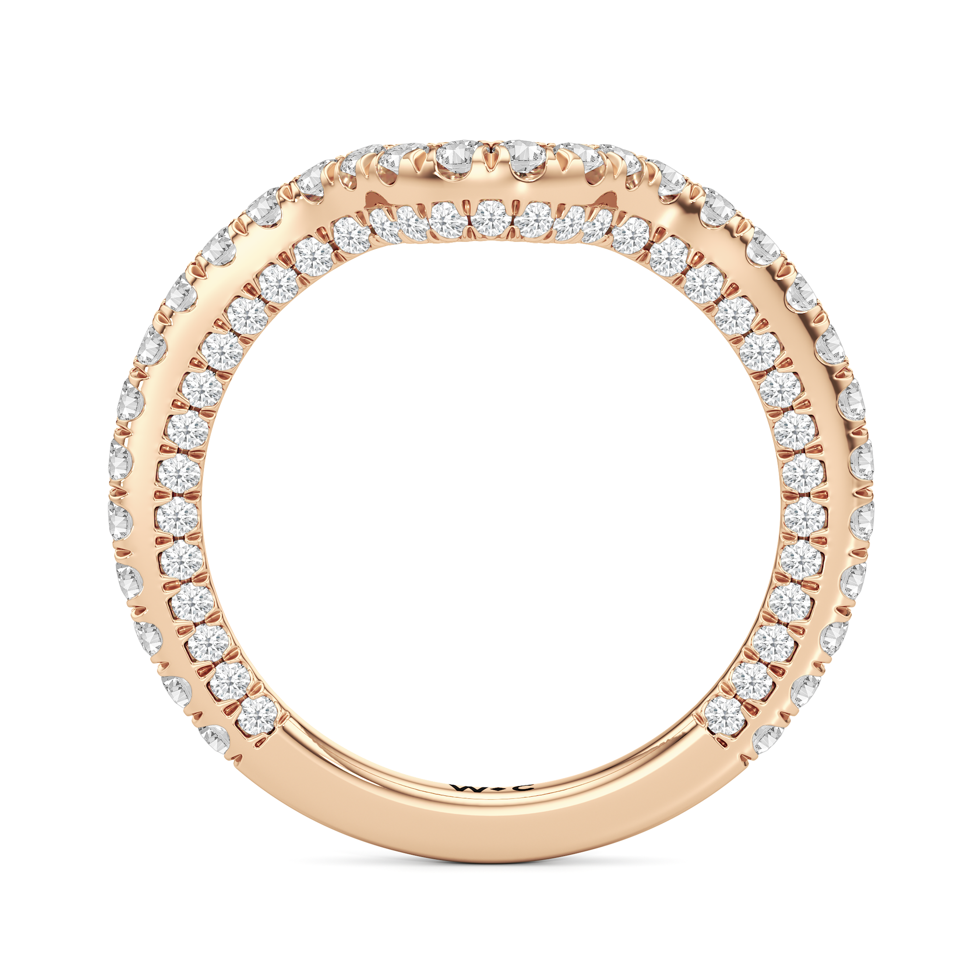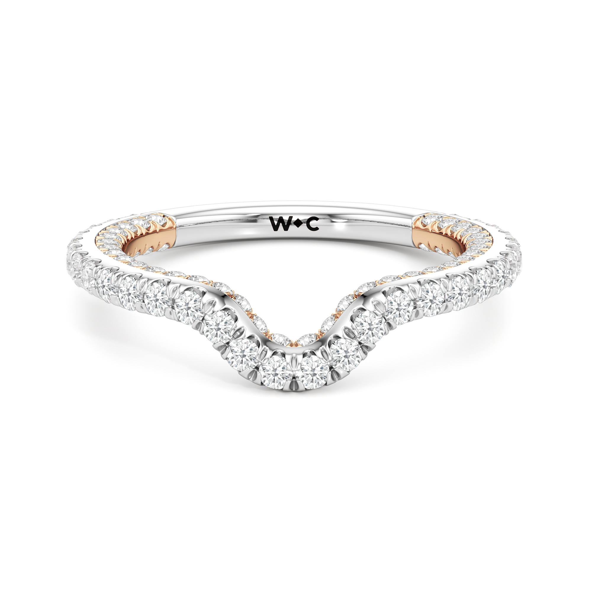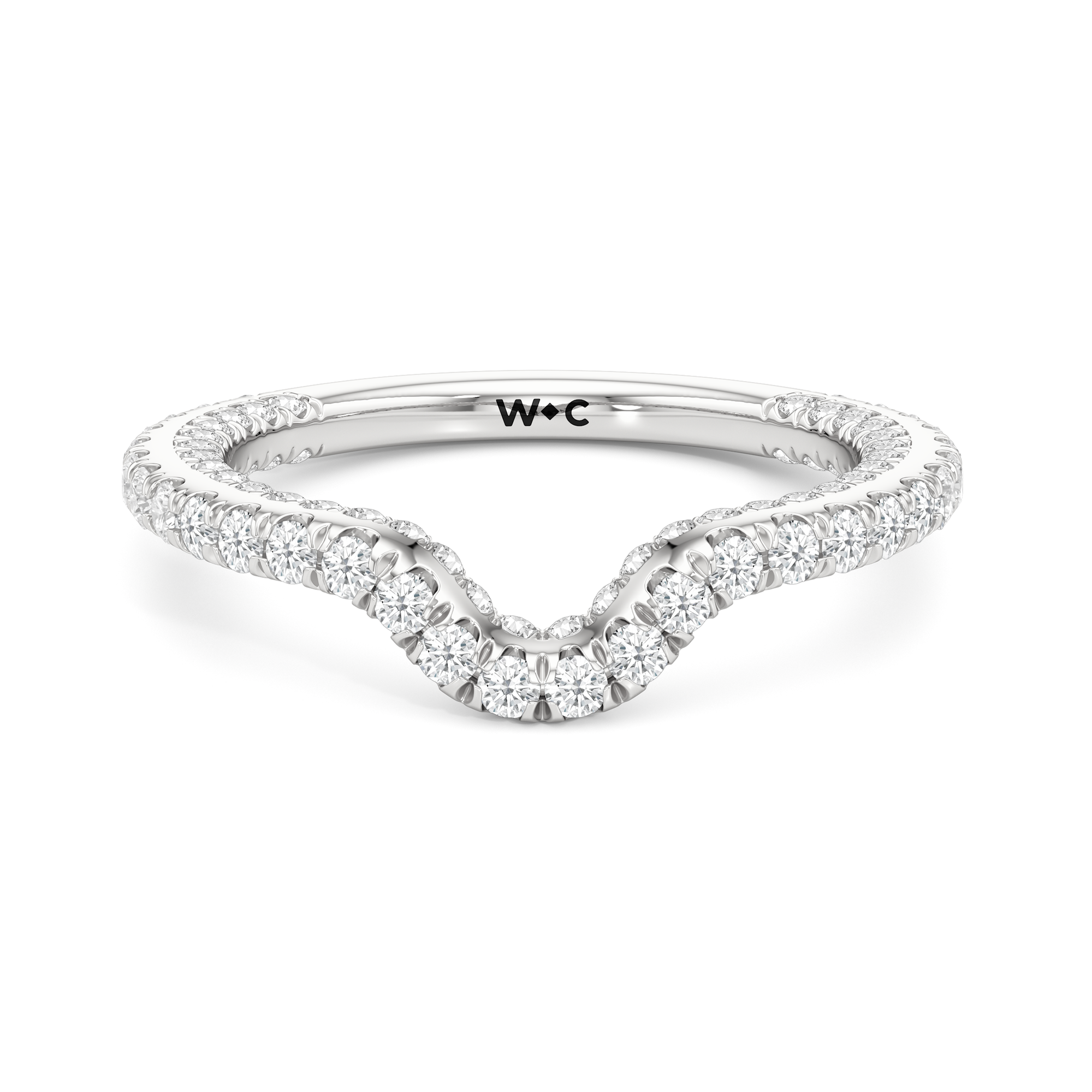This curved diamond set wedding band is perfectly contoured to complement our the chrysler baguette three stone ring for a simple and sophisticated look.