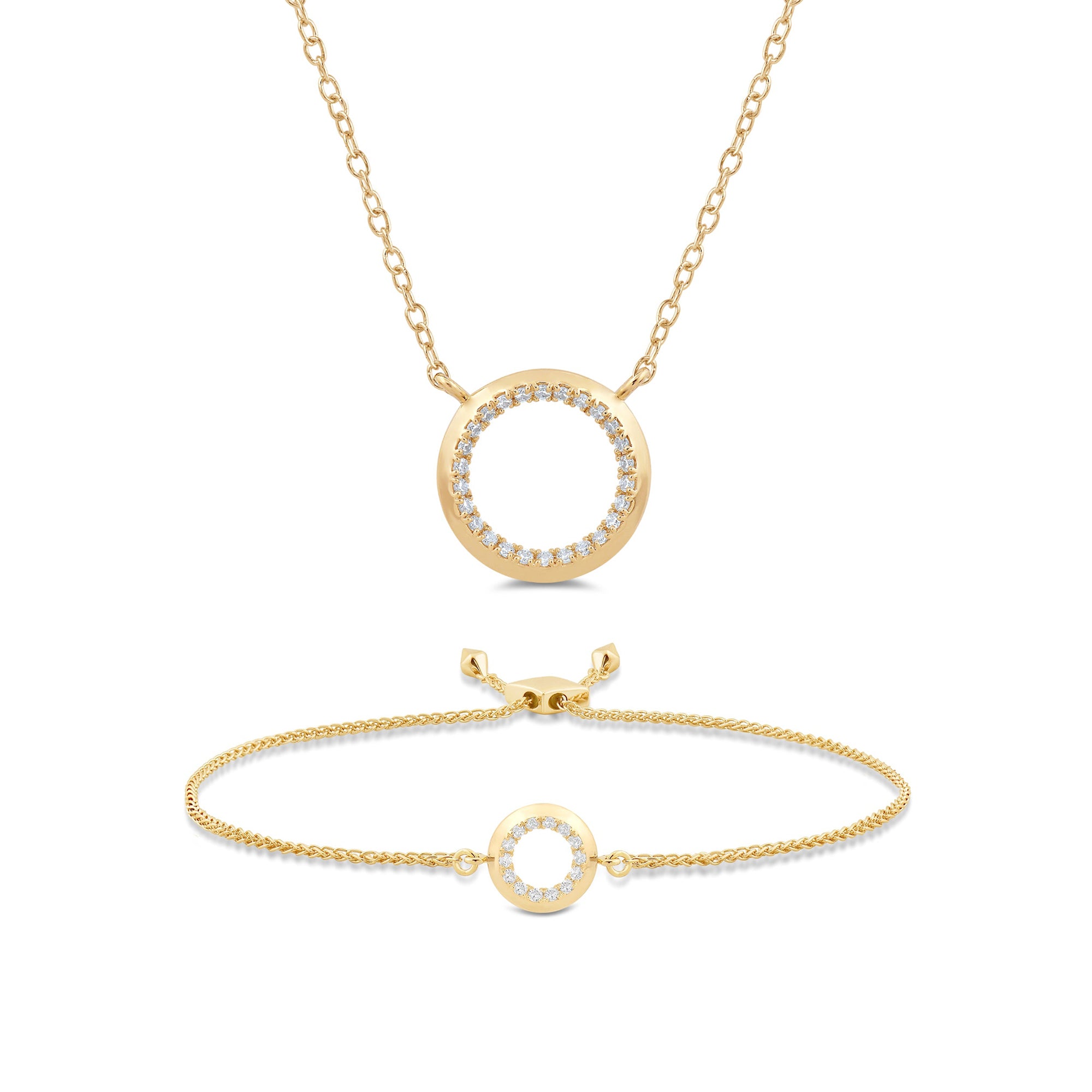 The perfect gift or treat for yourself. The Circle Set is a necklace and adjustable bolo bracelet pairing featuring a circle motif traced by diamonds. With no beginning and end, the sparkling circle motif serves as the perfect mark for a special bond that will never break, an everyday staple for any jewelry collection.