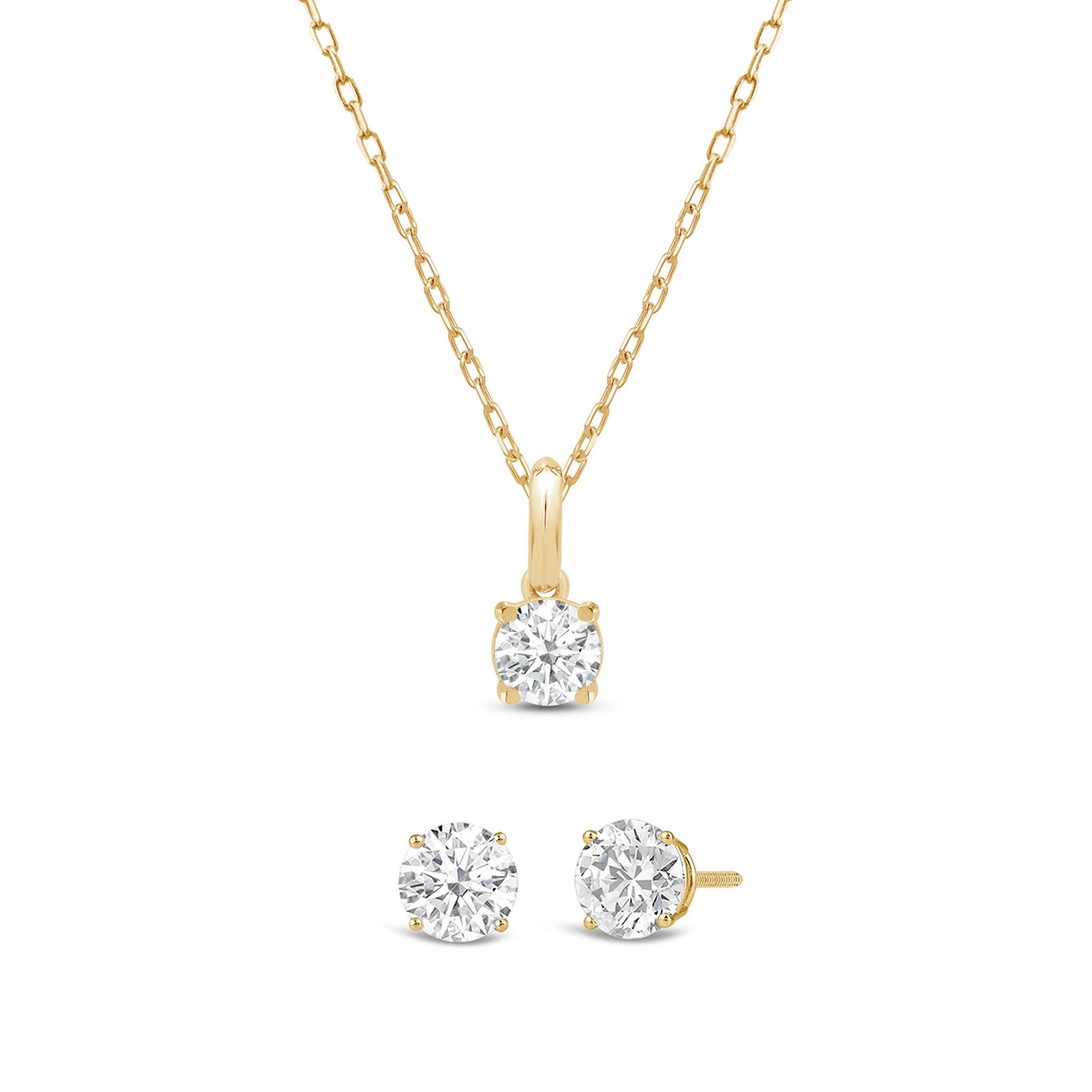 Unsure what to choose, but know they adore jewelry? You can't go wrong with the timeless beauty and subtle elegance of this set. It comes with a pair of round diamond studs, with the precious stone secured in classic, four-prong basket. A matching diamond solitaire necklace is included, ensuring a look that radiates understated brilliance.