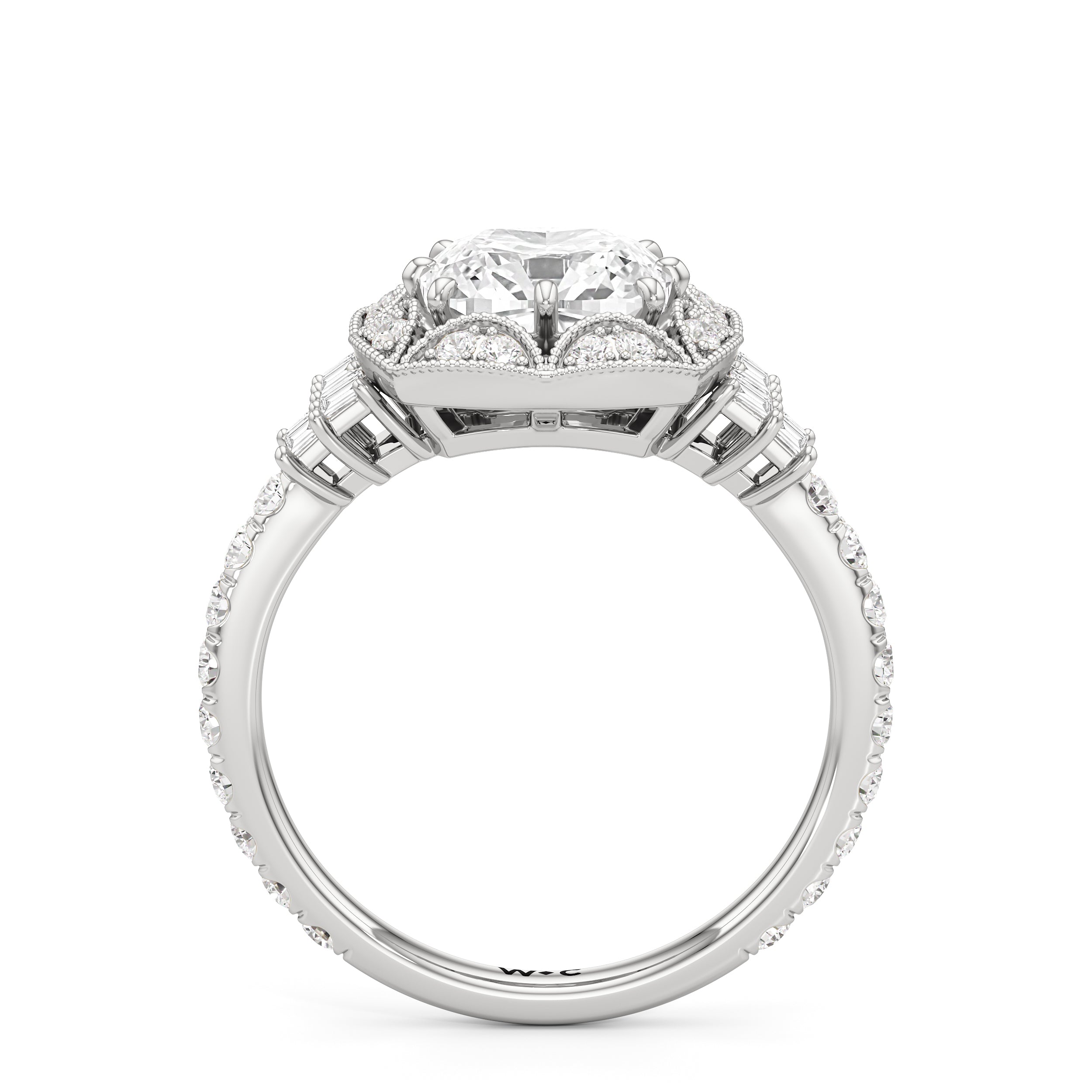 Just as the Art Deco crown of the Chrysler Building stands out boldly above Manhattan’s crowded skyline, the Crown Ring attracts the eye with its distinctive design. It captures the vivid spirit of the building’s iconic arched steelwork, with its striking scalloped pattern surrounding the cushion-cut diamond center stone. With trios of baguette diamonds serving as side stones and round diamonds tracing the band, this bold yet refined ring embodies the timeless glamour of New York and its soaring Art Deco masterpieces.